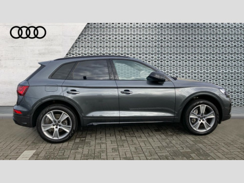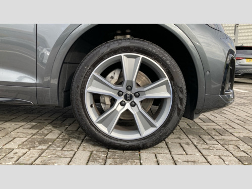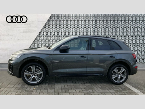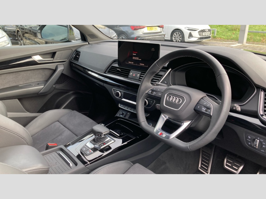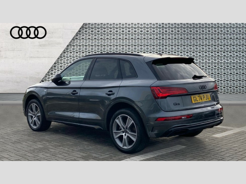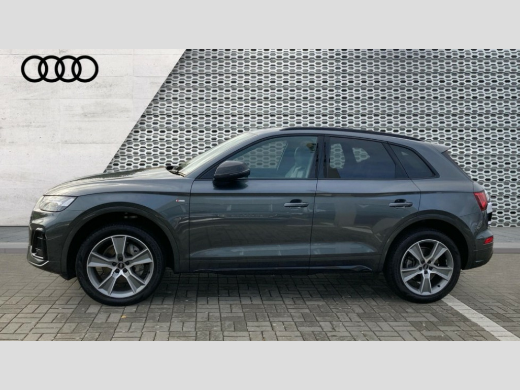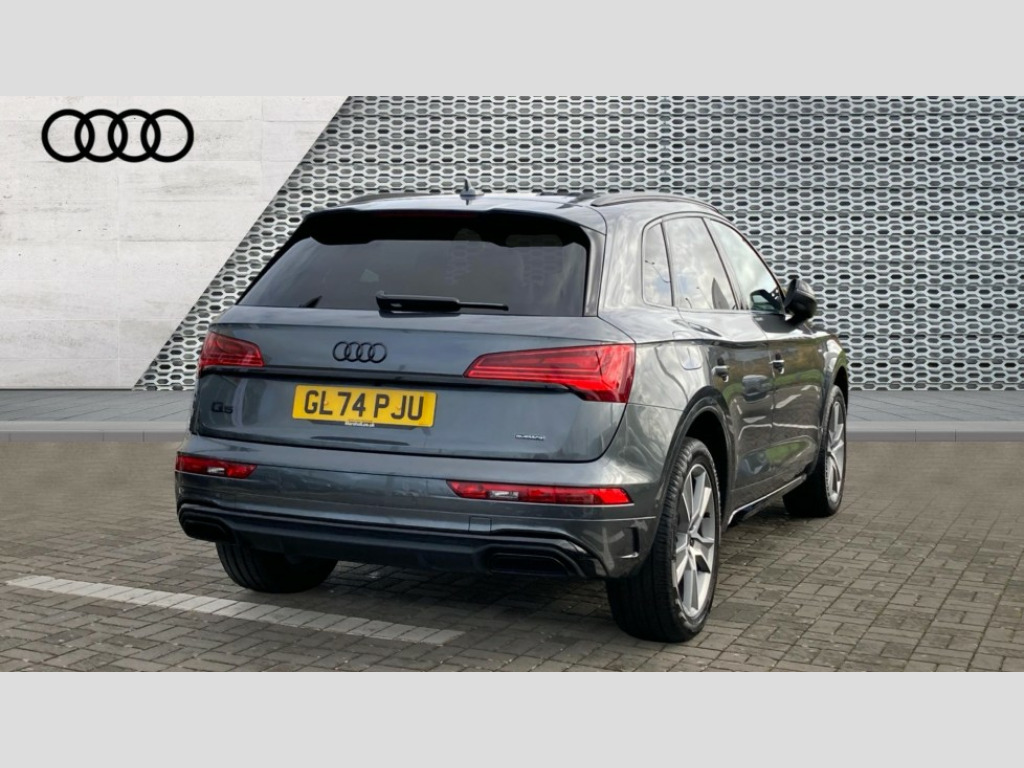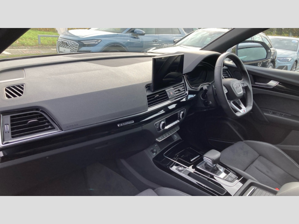 Audi Q5 45 TFSI Quattro Black Edition 5dr S Tronic Acoustic front and rear parking sensor, Audi connect safety and service (e-call), Audi drive select, Audi virtual cockpit plus with 12.3" screen and three different layout designs, Audi wireless smartphone interface, Automatic start-stop system with coasting functionality and efficiency programme, Bluetooth interface, Camera based traffic sign recognition, Electro - mechanical power assisted steering, Lane departure warning, MMI navigation plus with 10.1" touch screen, Power tailgate, Reversing camera, Service interval indicator, Voice control system with Audi hotword activation "Hey Audi", Quattro on demand, S line sports suspension, 2 x USB charging port with aux input socket, DAB Digital radio, Acoustic windscreen, Auto dimming door mirrors, Auto dimming frameless rear view mirror, Automatic headlight adjustment, Automatic headlights and windscreen wipers, Black roof rails, Black styling with black rings, Body colour bumpers, Body colour rear diffuser with matt aluminium silver surrounds, Body colour underbody protection, Chrome plated exhaust trims, Daytime running lights, Door sills in Selenite silver, Electric adjustable/heated/folding door mirrors, Front air inlet surrounds in aluminium, Front and rear electric windows, Front radiator grille in honeycomb design, LED 3rd brake light, LED rear lights, Loading edge protection in stainless steel, Lower bumpers painted in contrast Manhattan grey, Rear chrome trim strip below lights, Rear privacy glass and rear side windows, Rear side wing doors, Rear wiper, Roof bars, S Line badges on the front wing panels, S Line front and rear bumpers, S Line rear spoiler, S Line side skirts, 3 rear headrests, Black cloth headlining, Comfort front centre armrest, Contrast stitching on seats, steering wheel and gear lever gaiter, Deluxe 3 zone electronic climate control, Front head restraints, Front sport seats with S embossed logo, Front/rear floor mats, Gear lever in black leather, Heated front seats, Height/reach adjustable steering column, Illuminated door sill trims with S logo, Luggage compartment cover, Manual seat adjustment with 4-way electric lumbar support, Single front passenger seat, Stainless steel pedals, Sunvisors with vanity mirrors, Top surface of the rear centre armrest in artificial leather, High gloss pack - Q5, Technology pack - Q5 SUV/Sportback, 3 point seatbelts on all seats, 6 airbags - Driver, front passenger, curtain and side airbags, Attention and drowsiness assist, Electrically operated child locks on rear doors, Electromechanical parking brake, Electronic stabilisation control including ABS, ASR and EDL, First aid kit with warning triangle and vests, Front passenger airbag deactivation, Hill descent control, Hill hold assist, ISOFIX child seat mounting for front passenger seat and ISOFIX child seat mounting with Top Tether for outer rear seats, Multi collision brake assist, Pop-up bonnet for pedestrian protection, Pre sense city, Seatbelt monitoring, Tyre pressure warning, Anti theft alarm, Anti-theft wheel bolts, Remote central locking, Remote control key with SAFELOCK and keyless go, Air vents inserts and centre console in gloss black, Tool kit, Tyre repair kit