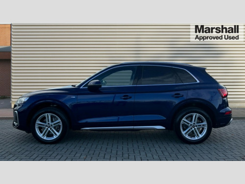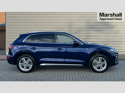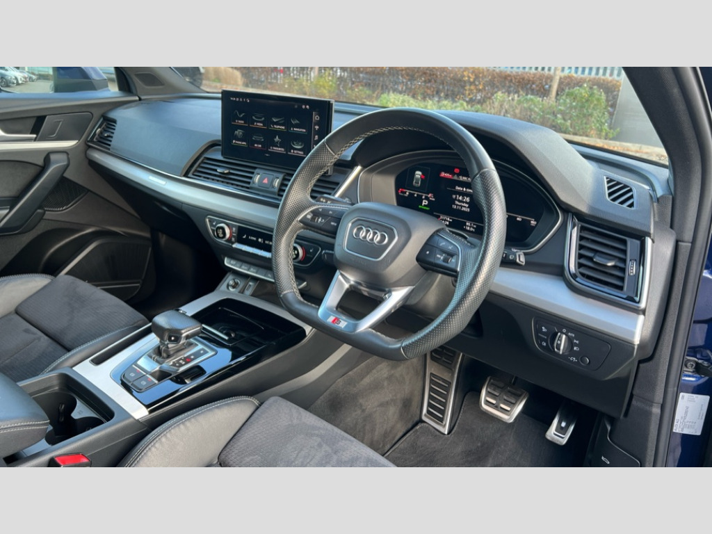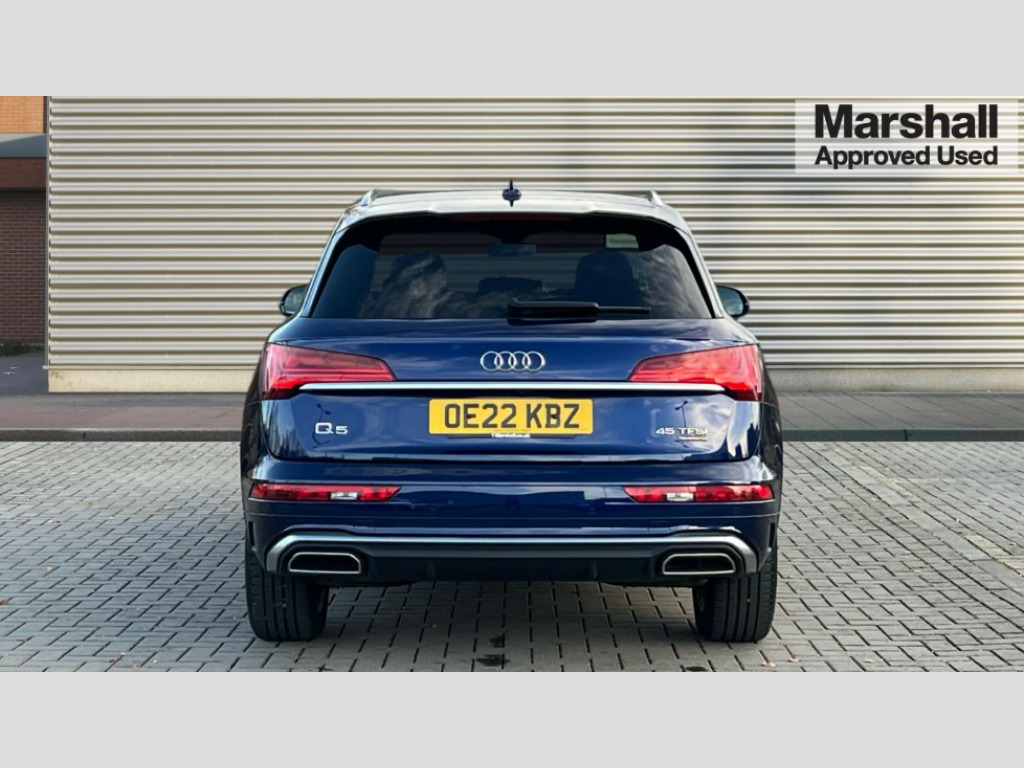 Audi Q5 45 TFSI Quattro S Line 5dr S Tronic Audi connect safety and service (e-call), Audi connect with Amazon Alexa Integration, Audi drive select, Audi virtual cockpit plus with 12.3" screen and three different layout designs, Audi wireless smartphone interface, Automatic start-stop system with coasting functionality and efficiency programme, Bluetooth interface, Electro - mechanical power assisted steering, MMI navigation plus with 10.1" touch screen, Power tailgate, Reversing camera, Service interval indicator, Voice control system with Audi hotword activation "Hey Audi", Quattro on demand, S line sports suspension, 2 x USB charging port with aux input socket, DAB Digital radio, 3rd brake light, Acoustic windscreen, Aluminium roof rails, Audi matrix LED headlights with dynamic front and rear indicators, Auto dimming door mirrors, Auto dimming rear view mirror, Automatic headlights and windscreen wipers, Body colour bumpers, Body colour door mirrors, Body colour rear diffuser with matt aluminium silver surrounds, Body colour underbody protection, Chrome plated exhaust trims, Daytime running lights, Door sills in Selenite silver, Electric adjustable/heated/folding door mirrors, Front air inlet surrounds in aluminium, Front and rear electric windows, Front radiator grille in honeycomb design, Headlight washers, Lower bumpers painted in contrast Manhattan grey, Rear chrome trim strip below lights, Rear privacy glass and rear side windows, Rear side wing doors, Rear wiper, Roof bars, S Line badges on the front wings, S Line front and rear bumpers, S Line rear spoiler, S Line side skirts, 3 rear headrests, 40:20:40 split folding 3 rear bench seat in 2nd row with rear centre armrest, Black cloth headlining, Comfort front centre armrest, Contrast stitching on seats, steering wheel and gear lever gaiter, Deluxe 3 zone electronic climate control, Front/rear floor mats, Gear lever in black leather, Heated front seats, Height adjustable front head restraints, Height/reach adjustable steering column, Illuminated door sill trims with S logo, ISOFIX child seat mounting and top tether, Manual seat adjustment with 4-way electric lumbar support, Removable luggage compartment floor, Single front passenger seat, Stainless steel pedals, Sunvisors with vanity mirrors, High gloss pack - Q5, LED interior light pack - Q5, 3 point seatbelts on all seats, 6 airbags - Driver, front passenger, curtain and side airbags, Electrically operated child locks on rear doors, Electromechanical parking brake, Electronic stabilisation control including ABS, ASR and EDL, Front passenger airbag deactivation, Hill descent control, Hill hold assist, Multi collision brake assist, Pop-up bonnet for pedestrian protection, Pre sense city, Seat belt force limiter, Seatbelt monitoring, Tyre pressure warning, Warning triangle and first aid kit, Anti theft alarm, Anti-theft wheel bolts, Keyless Go access/ignition system, Remote central locking, Matt brushed aluminium inlays