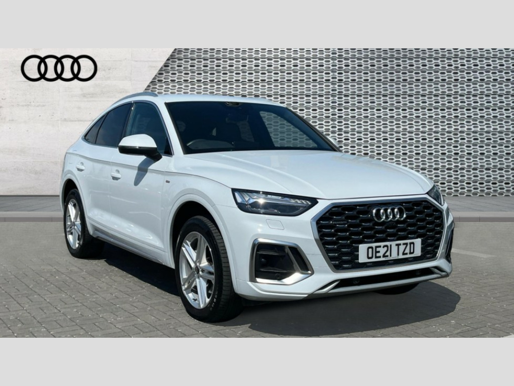 Audi Q5 45 TFSI Quattro S Line 5dr S Tronic Advanced key with electric hands free boot opening system, Audi connect safety and service (e-call), Audi connect with Amazon Alexa Integration, Audi drive select, Audi virtual cockpit plus with 12.3" screen and three different layout designs, Audi wireless smartphone interface, Automatic start-stop system with coasting functionality and efficiency programme, Bluetooth interface, Electro - mechanical power assisted steering, MMI navigation plus with 10.1" touch screen, Power tailgate, Reversing camera, Service interval indicator, Voice control system with Audi hotword activation "Hey Audi", 70 litre fuel tank, Quattro on demand, S line sports suspension, 2 x USB charging port with aux input socket, Bang + Olufsen sound system, DAB Digital radio, Acoustic windscreen, Aluminium roof rails, Audi matrix LED headlights with dynamic front and rear indicators, Auto dimming rear view mirror, Automatic headlights and windscreen wipers, Body colour door mirrors, Body colour rear diffuser with matt aluminium silver surrounds, Body colour underbody protection, Chrome plated exhaust trims, Door sills in Selenite silver, Electric adjustable/heated/folding door mirrors, Front air inlet surrounds in aluminium, Front and rear electric windows, Front radiator grille in honeycomb design, Headlight washers, Lower bumpers painted in contrast Manhattan grey, Rear chrome trim strip below lights, Rear privacy glass and rear side windows, Rear spoiler, Rear wiper, Roof bars, S Line badges on the front wings, S Line front and rear bumpers, S Line side skirts, 3 rear headrests, 40:20:40 split folding rear seat with rear centre armrest, Black cloth headlining, Comfort front centre armrest, Contrast stitching on seats, steering wheel and gear lever gaiter, Deluxe 3 zone electronic climate control, Front head restraints, Front/rear floor mats, Gear lever in black leather, Heated front seats, Height/reach adjustable steering column, Illuminated door sill trims with S logo, ISOFIX child seat mounting and top tether, Manual seat adjustment with 4-way electric lumbar support, Removable luggage compartment floor, Stainless steel pedals, Sunvisors with vanity mirrors, Trunk roller cover, Extended LED Interior multi coloured Lighting Pack - Q5, High gloss pack - Q5, 3 point seatbelts on all seats, 6 airbags - Driver, front passenger, curtain and side airbags, Electrically operated child locks on rear doors, Electromechanical parking brake, Electronic stabilisation control including ABS, ASR and EDL, Front passenger airbag deactivation, Hill descent control, Hill hold assist, Multi collision brake assist, Pop-up bonnet for pedestrian protection, Pre sense city, Seat belt force limiter, Seatbelt monitoring, Tyre pressure warning, Warning triangle and first aid kit, Anti theft alarm, Anti-theft wheel bolts, Keyless Go access/ignition system, Matt brushed aluminium inlays