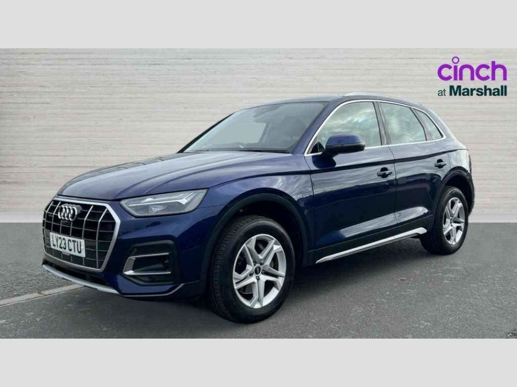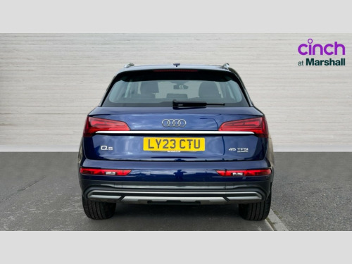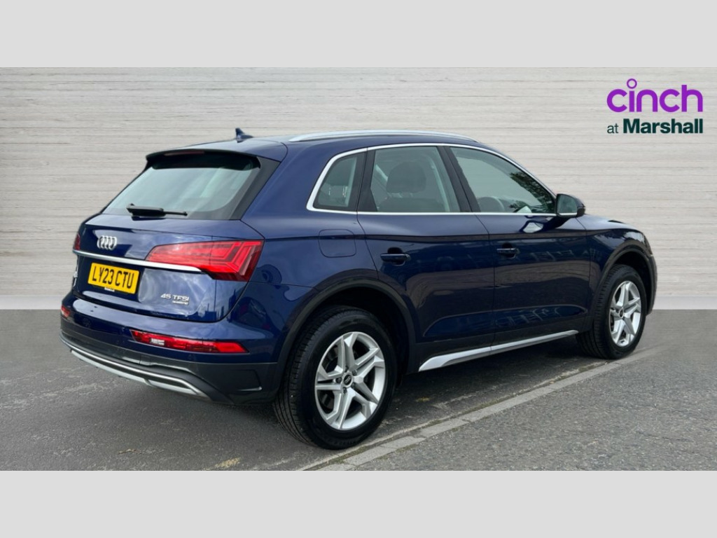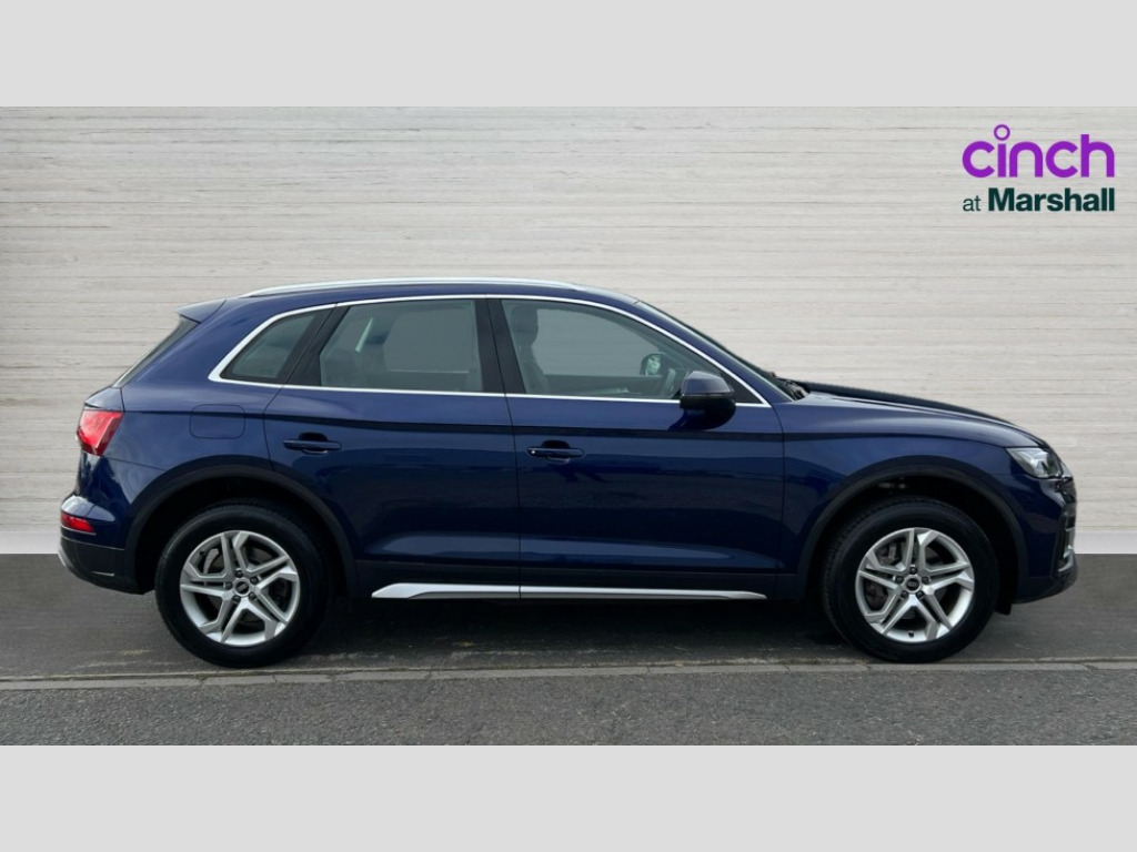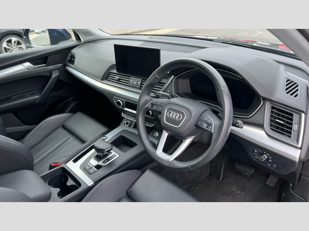 Audi Q5 45 TFSI Quattro Sport 5dr S Tronic Acoustic front and rear parking sensor, Audi connect safety and service (e-call), Audi drive select, Audi virtual cockpit plus with 12.3" screen and three different layout designs, Audi wireless smartphone interface, Automatic start-stop system with coasting functionality and efficiency programme, Bluetooth interface, Camera based traffic sign recognition, Electro - mechanical power assisted steering, Lane departure warning, MMI navigation plus with 10.1" touch screen, Power tailgate, Reversing camera, Service interval indicator, Voice control system with Audi hotword activation "Hey Audi", Dynamic suspension, Quattro on demand, 2 x USB charging port with aux input socket, 8 loudspeakers, DAB Digital radio, 3rd brake light, Acoustic windscreen, Air inlets in matt anthracite black with blades in matt aluminium silver, Aluminium roof rails, Auto dimming door mirrors, Auto dimming frameless rear view mirror, Automatic headlight adjustment, Automatic headlights and windscreen wipers, Body colour bumpers, Body colour door mirrors, Chrome plated exhaust trims, Daytime running lights, Door sills in Selenite silver, Electric adjustable/heated/folding door mirrors, Front and rear electric windows, LED headlights and LED tail lights, Loading edge protection in stainless steel, Lower bumpers painted in contrast Manhattan grey, Matt selenite silver underbody protection, Matt twilight grey radiator grille with chrome vertical struts, Rear chrome trim strip below lights, Rear diffuser strip in selenite silver, Rear side wing doors, Rear spoiler, Rear wiper, Roof bars, 3 rear headrests, 3 spoke multifunction leather steering wheel with shift paddles, Comfort front centre armrest, Deluxe 3 zone electronic climate control, Door sills trims with aluminium inlays, Front head restraints, Front sport seats, Front/rear floor mats, Heated front seats, Height/reach adjustable steering column, Luggage compartment cover, Manual seat adjustment with 4-way electric lumbar support, Single front passenger seat, Split folding 3 seater rear seat bench in 3 parts (40/20/40), Sunvisors with vanity mirrors, Twin leather upholstery, High gloss pack - Q5, LED interior light pack - Q5, 3 point seatbelts on all seats, 6 airbags - Driver, front passenger, curtain and side airbags, Attention and drowsiness assist, Electrically operated child locks on rear doors, Electromechanical parking brake, Electronic stabilisation control including ABS, ASR and EDL, First aid kit with warning triangle and vests, Front passenger airbag deactivation, Hill descent control, Hill hold assist, ISOFIX child seat mounting for front passenger seat and ISOFIX child seat mounting with Top Tether for outer rear seats, Multi collision brake assist, Pop-up bonnet for pedestrian protection, Pre sense city, Seatbelt monitoring, Tyre pressure warning, Anti theft alarm, Anti-theft wheel bolts, Remote central locking, Remote control key with SAFELOCK and keyless go, Air vents inserts and centre console in matte black, Aluminium rhombus inlay, Tool kit, Tyre repair kit