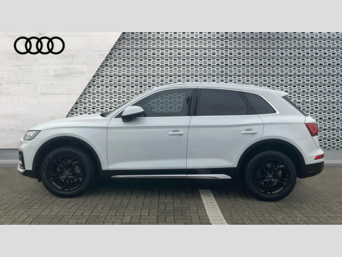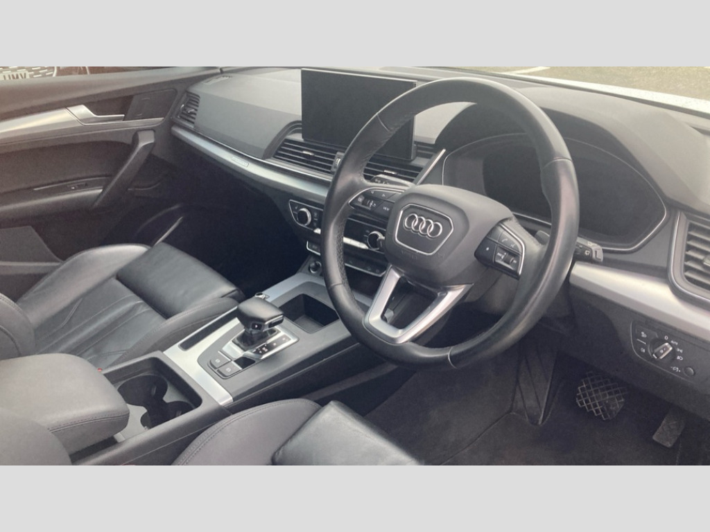 Audi Q5 45 TFSI Quattro Sport 5dr S Tronic Audi connect safety and service (e-call), Audi connect with Amazon Alexa Integration, Audi drive select, Audi virtual cockpit plus with 12.3" screen and three different layout designs, Audi wireless smartphone interface, Automatic start-stop system with coasting functionality and efficiency programme, Bluetooth interface, Cruise control + speed limiter, Electro - mechanical power assisted steering, MMI navigation plus with 10.1" touch screen, Power tailgate, Reversing camera, Service interval indicator, Voice control system with Audi hotword activation "Hey Audi", Dynamic suspension, Quattro on demand, 2 x USB charging port with aux input socket, DAB Digital radio, Acoustic windscreen, Air inlets in matt titanium black with blades in matt aluminium silver, Aluminium roof rails, Auto dimming rear view mirror, Automatic headlights and windscreen wipers, Body colour bumpers, Body colour door mirrors, Chrome plated exhaust trims, Door sills in Selenite silver, Electric adjustable/heated/folding door mirrors, Front and rear electric windows, LED headlights and LED tail lights, Lower bumpers painted in contrast Manhattan grey, Matt selenite silver underbody protection, Matt twilight grey radiator grille with chrome vertical struts, Rear chrome trim strip below lights, Rear diffuser strip in selenite silver, Rear spoiler, Rear wiper, Roof bars, 3 rear headrests, 3 spoke multifunction leather steering wheel with shift paddles, 40:20:40 split folding rear seat with rear centre armrest, Comfort front centre armrest, Deluxe 3 zone electronic climate control, Door sills trims with aluminium inlays, Front/rear floor mats, Heated front seats, Height adjustable front head restraints, Height/reach adjustable steering column, ISOFIX child seat mounting and top tether, Luggage compartment cover, Manual seat adjustment with 4-way electric lumbar support, Removable luggage compartment floor, Silver cloth headlining, Sunvisors with vanity mirrors, Twin leather upholstery + front sports seats, High gloss pack - Q5, LED interior light pack - Q5, 3 point seatbelts on all seats, 6 airbags - Driver, front passenger, curtain and side airbags, Electrically operated child locks on rear doors, Electromechanical parking brake, Electronic stabilisation control including ABS, ASR and EDL, Front passenger airbag deactivation, Hill descent control, Hill hold assist, Multi collision brake assist, Pop-up bonnet for pedestrian protection, Pre sense city, Seat belt force limiter, Seatbelt monitoring, Tyre pressure warning, Warning triangle and first aid kit, Anti theft alarm, Anti-theft wheel bolts, Keyless Go access/ignition system, Aluminium rhombus inlay