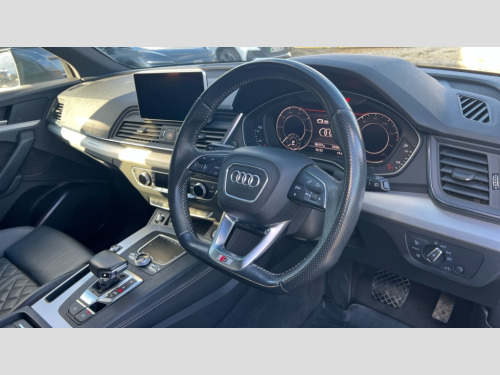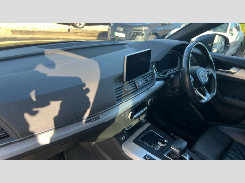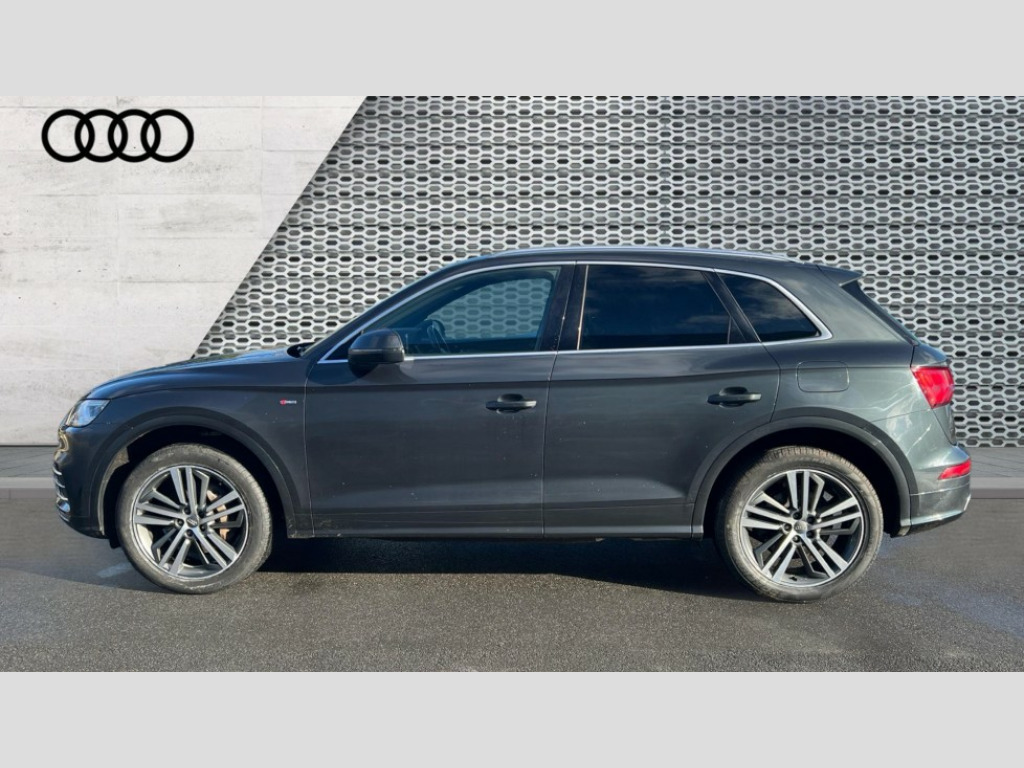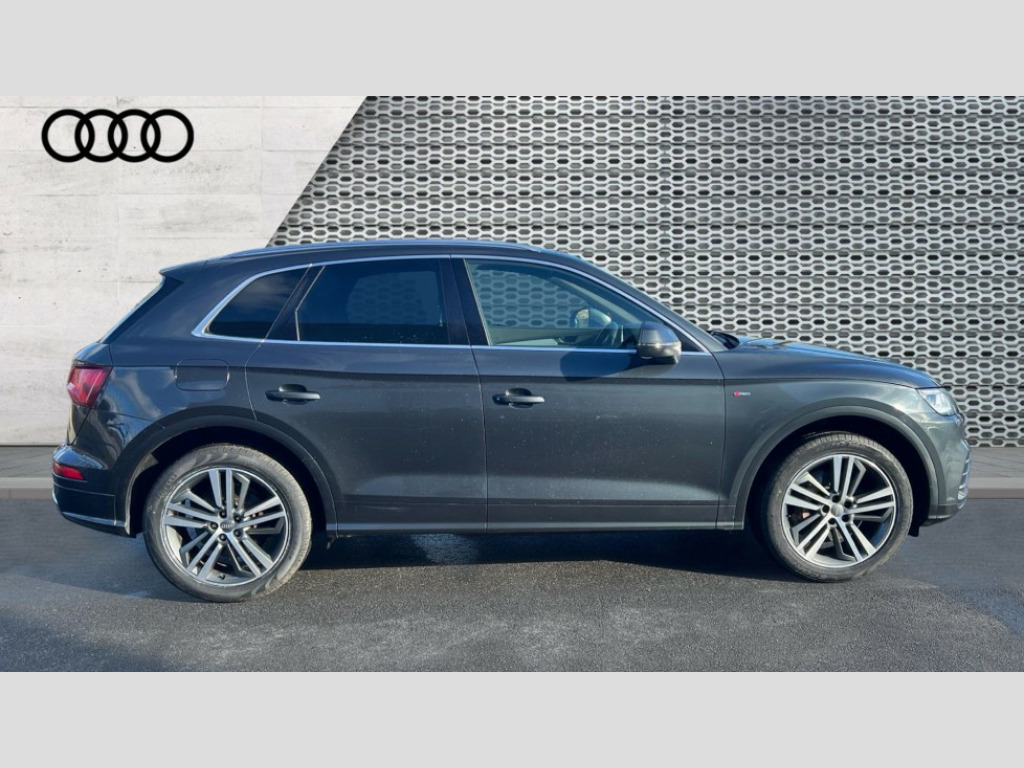 Audi Q5 55 TFSI e Quattro S Line Competition 5dr S Tronic Audi connect safety and service (e-call), Audi drive select, Audi phone box with wireless charging, Audi smartphone interface, Audi virtual cockpit - 12.3" high resolution LCD digital instrument cluster display, Automatic start-stop system with coasting functionality and efficiency programme, Electro - mechanical power assisted steering, MMI navigation plus with 8.3" colour MMI screen and MMI touch, Mobile telephone preparation - bluetooth interface, Power tailgate, Service interval indicator, Voice control system, Dynamic suspension, Quattro on demand, 2 x USB charging port with aux input socket, 2x SD card slot, Audi sound system, CD player, DAB Digital radio, MMI radio plus with 7" colour MMI screen and MMI controller, Acoustic windscreen, Aluminium roof rails, Audi Beam uses LEDs to project the Audi Sport logo, Auto dimming rear view mirror, Automatic headlight levelling, Body colour bumpers, Body colour door mirrors, Body colour S Line side skirts, Body colour S specific rear diffuser, Body colour underbody protection, Chrome exhaust tailpipe, Electric adjustable/heated/folding door mirrors, Front and rear electric windows, High beam assistant, LED headlights with LED rear lights + dynamic rear indicators, Light and rain sensor for auto activation of lights and windscreen wipers, Loading sill protector in stainless steel, Privacy glass with front acoustic glazing, Rear wiper, S air inlet in titanium black, S front and rear bumpers, S Line badges on the front wings, S Line rear spoiler, Twilight grey matt radiator grille with matt aluminium horizontal chrome struts, 3 rear headrests, 3 spoke flat bottom high multi-function leather steering wheel, 4 way electric lumbar support for driver and front passenger, 40:20:40 split folding rear seat with rear centre armrest, Black cloth headlining, Contrast stitching on seats, steering wheel and gear lever gaiter, Deluxe 3 zone electronic climate control, Fine Nappa leather upholstery with diamond stitching, Front centre armrest, Front sport seats with S embossed logo, Front/rear floor mats, Fully electrically adjustable driver's seat, Fully electrically adjustable front passenger seat, Heated front seats, Height adjustable front head restraints, Height/reach adjustable steering column, Illuminated door sill trims with S logo, ISOFIX child seat mounting and top tether, Luggage compartment carpet, Massage function for front seats, Perforated leather gearknob, Rear seat bench plus, Removable luggage compartment floor, Sunvisors with vanity mirrors, Trunk roller cover, Extended leather pack - Q5, Extended LED Interior Lighting Pack - Q5, High gloss pack - Q5, Non Smokers pack, 3 point seatbelts on all seats, 6 airbags - Driver, front passenger, curtain and side airbags, Electromechanical parking brake, Electronic stabilisation control including ABS, ASR and EDL, Front passenger airbag deactivation, Hill descent control, Hill hold assist, Multi collision brake assist, Pop-up bonnet for pedestrian protection, Pre sense city, Seat belt force limiter, Seatbelt monitoring, Tyre pressure warning, Warning triangle and first aid kit, Anti theft alarm, Anti-theft wheel bolts, Keyless Go access/ignition system, Remote central locking, Matt brushed aluminium inlays, Tool kit, Tyre repair kit