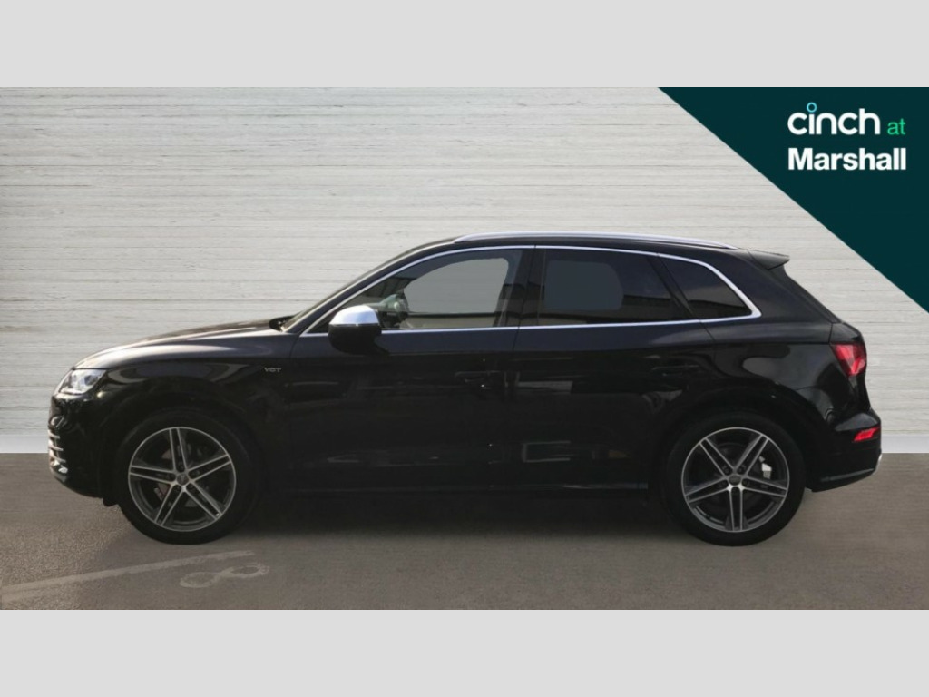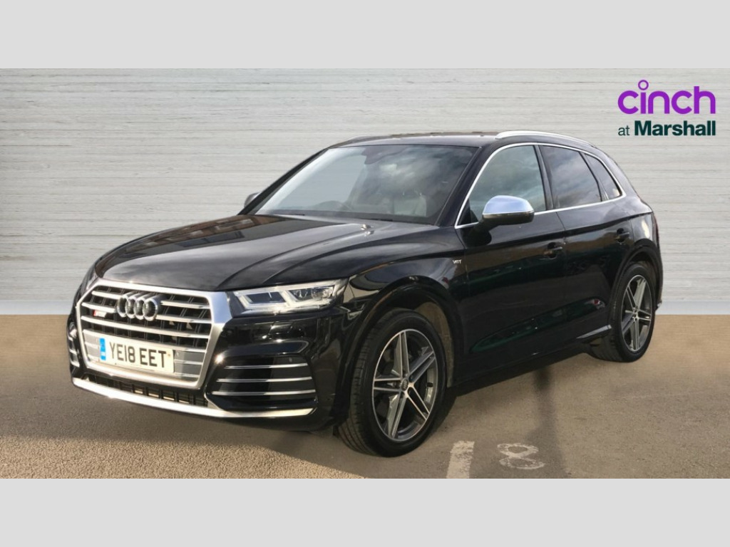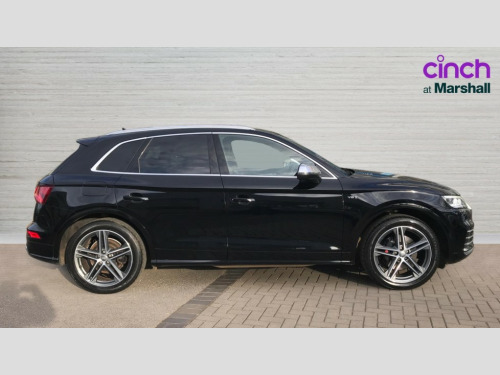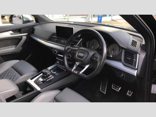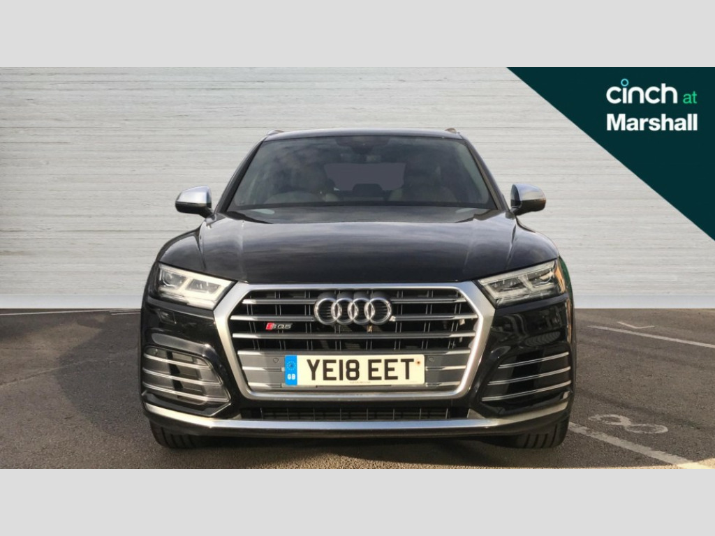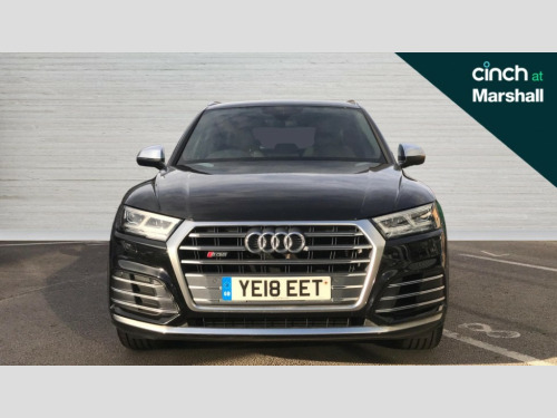 Audi Q5 SQ5 Quattro 5dr Tip Auto Audi connect, Audi drive select, Audi smartphone interface, Driver information centre with colour display in instrument panel, MMI Navigation plus, Power tailgate, Remote electric boot opening/closing, Service interval indicator, Voice control system, 2 USB ports, 2x SD card slot, Audi sound system, Auxiliary input socket, CD player, DAB Digital radio, MMI radio plus with 7" colour MMI screen and MMI controller, Acoustic windscreen, Aluminium roof rails, Aluminium sill plates, Auto dimming rear view mirror, Black high gloss front air inlet in matt aluminium effect, Body colour bumpers, Body colour door mirrors, Body colour rear diffuser insert, Chrome exhaust tailpipe, Electric headlight adjustment, Electrically adjustable and heated door mirrors, Front and rear electric windows, Front fog lights, Headlight range control, Headlight washers, High beam assistant, Honeycomb side air inlet in titan black, Light and rain sensor for auto activation of lights and windscreen wipers, Loading sill protector in stainless steel, Privacy glass with front acoustic glazing, Rear diffuser strip in matt aluminium silver, Rear spoiler, Rear wiper, S Line side skirts, Selenite silver underbody guard, Twilight grey matt radiator grille with matt aluminium horizontal chrome struts, 3 rear headrests, 3 zone climate control, 4 way electric lumbar support for driver and front passenger, 40:20:40 split folding rear bench seat, Black cloth headlining, Fine Nappa leather upholstery, Front centre armrest with 12v socket, Front sports seats, Front/rear floor mats, Height adjustable driver's seat, Height adjustable front head restraints, Illuminated door sills, Isofix front passenger and rear seat preparation, Jack and tool kit, Load compartment cover, Luggage compartment carpet, Matt selenite silver door inserts, Perforated leather gearknob, Reach + rake adjustable steering column, Rear seat bench plus with through load+rear centre armrest+cupholders, Removable luggage compartment floor, Removable net partition, Roller blind loadspace cover, Stainless steel pedals, Sunvisors with vanity mirrors, Extended interior upholstery pack - Q5, Non Smokers pack, 3 point seatbelts on all seats, ABS, Curtain airbags, Driver and passenger airbags, Driver and passenger side airbags, Electromechanical parking brake, ESC with ASR, ESP, First aid kit, Front passenger airbag deactivation, Hill descent control, Seat belt force limiter, Seatbelt warning lamp, Traction control, Tyre pressure monitor, Warning triangle, Keyless Go access/ignition system, Locking wheel bolts, Remote central locking, Thatcham category 1 alarm + immobiliser, Fine Nappa leather with diamond pattern stitching