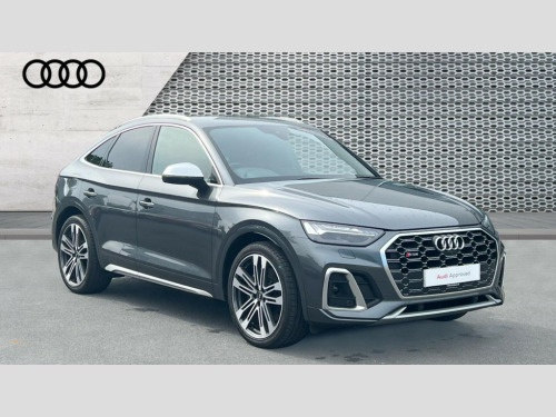 Audi Q5 SQ5 TDI Quattro 5dr Tiptronic Advanced key with electric hands free boot opening system, Audi connect safety and service (e-call), Audi connect with Amazon Alexa Integration, Audi drive select, Audi virtual cockpit plus with 12.3" screen and three different layout designs, Audi wireless smartphone interface, Automatic start-stop system with coasting functionality and efficiency programme, Bluetooth interface, Electro - mechanical power assisted steering, MMI navigation plus with 10.1" touch screen, Power tailgate, Reversing camera, Service interval indicator, Voice control system with Audi hotword activation "Hey Audi", 70 litre fuel tank and 24 litre AdBlue tank, Diesel particulate filter, Quattro on demand, S sport suspension, 2 x USB charging port with aux input socket, Bang + Olufsen sound system, DAB Digital radio, Acoustic windscreen, Aluminium door mirror housings, Aluminium roof rails, Audi beam, Auto dimming door mirrors, Auto dimming rear view mirror, Automatic headlight adjustment, Automatic headlights and windscreen wipers, Body colour underbody protection, Chrome plated exhaust trims, Daytime running lights, Door sills in Selenite silver, Electric adjustable/heated/folding door mirrors, Front and rear electric windows, Front radiator grille in honeycomb design, Headlight washers, High level LED brake light, Lower bumpers painted in contrast Manhattan grey, Rear chrome trim strip below lights, Rear privacy glass and rear side windows, Rear side wing doors, Rear spoiler, Rear wiper, Roof bars, S air inlet in titanium black, S front and rear bumpers, S Line side skirts, S rear diffuser in body colour, 3 rear headrests, 4 way electric lumbar support for driver and front passenger, 40:20:40 split folding 3 rear bench seat in 2nd row with rear centre armrest, Black cloth headlining, Comfort front centre armrest, Contrast stitching on seats, steering wheel and gear lever gaiter, Deluxe 3 zone electronic climate control, Fine Nappa leather upholstery with diamond pattern contrast stitching + front sport seats with S embossed logo, Front head restraints, Front/rear floor mats, Fully electrically adjustable seats, Gear lever in black leather, Heated front seats, Height/reach adjustable steering column, Illuminated door sill trims with S logo, ISOFIX child seat mounting and top tether, Massage function for front seats, Rear seat bench plus, Removable luggage compartment floor, Single front passenger seat, Stainless steel pedals, Sunvisors with vanity mirrors, Trunk roller cover, Artificial leather pack - Q5, Extended LED Interior multi coloured Lighting Pack - Q5, High gloss pack - Q5, 3 point seatbelts on all seats, 6 airbags - Driver, front passenger, curtain and side airbags, Electrically operated child locks on rear doors, Electromechanical parking brake, Electronic stabilisation control including ABS, ASR and EDL, Front passenger airbag deactivation, Hill descent control, Hill hold assist, Multi collision brake assist, Pop-up bonnet for pedestrian protection, Pre sense city, Seat belt force limiter, Seatbelt monitoring, Tyre pressure warning, Warning triangle and first aid kit, Anti theft alarm, Anti-theft wheel bolts, Keyless Go access/ignition system, Remote central locking