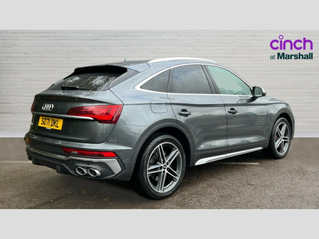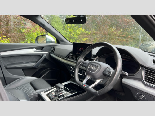 Audi Q5 SQ5 TDI Quattro 5dr Tiptronic Advanced key with electric hands free boot opening system, Audi connect safety and service (e-call), Audi connect with Amazon Alexa Integration, Audi drive select, Audi virtual cockpit plus with 12.3" screen and three different layout designs, Audi wireless smartphone interface, Automatic start-stop system with coasting functionality and efficiency programme, Bluetooth interface, Electro - mechanical power assisted steering, MMI navigation plus with 10.1" touch screen, Power tailgate, Reversing camera, Service interval indicator, Voice control system with Audi hotword activation "Hey Audi", 70 litre fuel tank and 24 litre AdBlue tank, Diesel particulate filter, Quattro on demand, S sport suspension, 2 x USB charging port with aux input socket, Bang + Olufsen sound system, DAB Digital radio, Acoustic windscreen, Aluminium door mirror housings, Aluminium roof rails, Audi beam, Auto dimming door mirrors, Auto dimming rear view mirror, Automatic headlights and windscreen wipers, Body colour underbody protection, Chrome plated exhaust trims, Daytime running lights, Door sills in Selenite silver, Electric adjustable/heated/folding door mirrors, Front and rear electric windows, Front radiator grille in honeycomb design, Headlight washers, High level LED brake light, Lower bumpers painted in contrast Manhattan grey, Rear chrome trim strip below lights, Rear privacy glass and rear side windows, Rear side wing doors, Rear spoiler, Rear wiper, Roof bars, S air inlet in titanium black, S front and rear bumpers, S Line side skirts, S rear diffuser in body colour, 3 rear headrests, 4 way electric lumbar support for driver and front passenger, 40:20:40 split folding 3 rear bench seat in 2nd row with rear centre armrest, Black cloth headlining, Comfort front centre armrest, Contrast stitching on seats, steering wheel and gear lever gaiter, Deluxe 3 zone electronic climate control, Fine Nappa leather upholstery with diamond pattern contrast stitching + front sport seats with S embossed logo, Front head restraints, Front/rear floor mats, Fully electrically adjustable seats, Gear lever in black leather, Heated front seats, Height/reach adjustable steering column, Illuminated door sill trims with S logo, ISOFIX child seat mounting and top tether, Massage function for front seats, Rear seat bench plus, Removable luggage compartment floor, Single front passenger seat, Stainless steel pedals, Sunvisors with vanity mirrors, Trunk roller cover, Artificial leather pack - Q5, Extended LED Interior multi coloured Lighting Pack - Q5, High gloss pack - Q5, 3 point seatbelts on all seats, 6 airbags - Driver, front passenger, curtain and side airbags, Electrically operated child locks on rear doors, Electromechanical parking brake, Electronic stabilisation control including ABS, ASR and EDL, Front passenger airbag deactivation, Hill descent control, Hill hold assist, Multi collision brake assist, Pop-up bonnet for pedestrian protection, Pre sense city, Seat belt force limiter, Seatbelt monitoring, Tyre pressure warning, Warning triangle and first aid kit, Anti theft alarm, Anti-theft wheel bolts, Keyless Go access/ignition system, Remote central locking