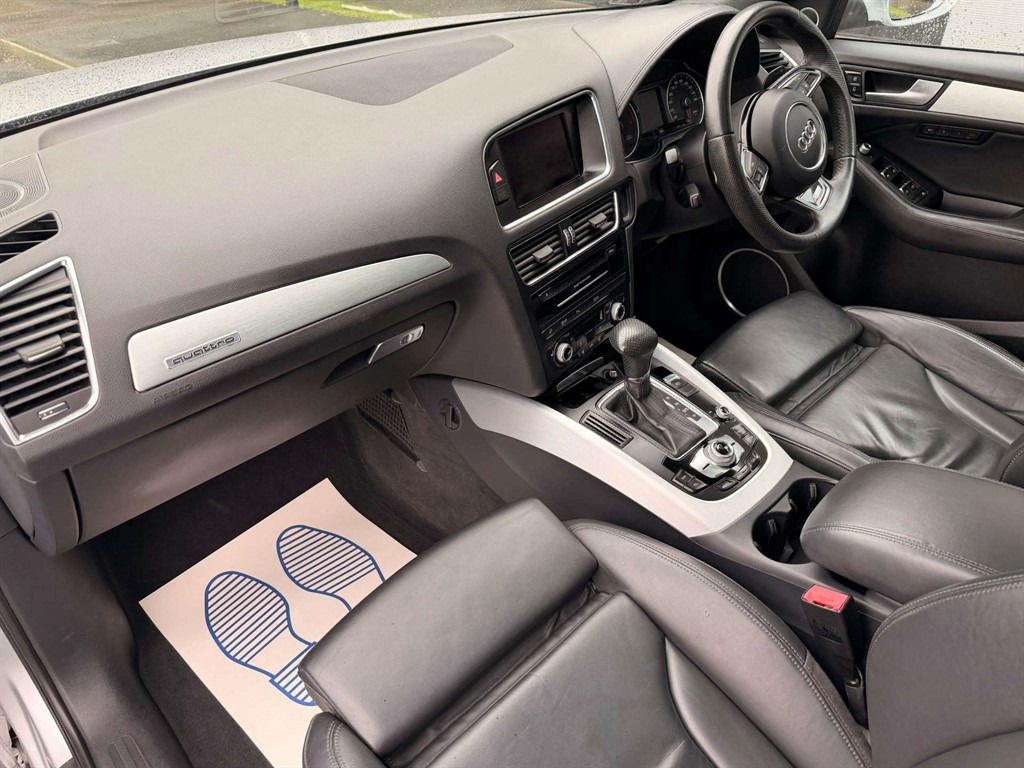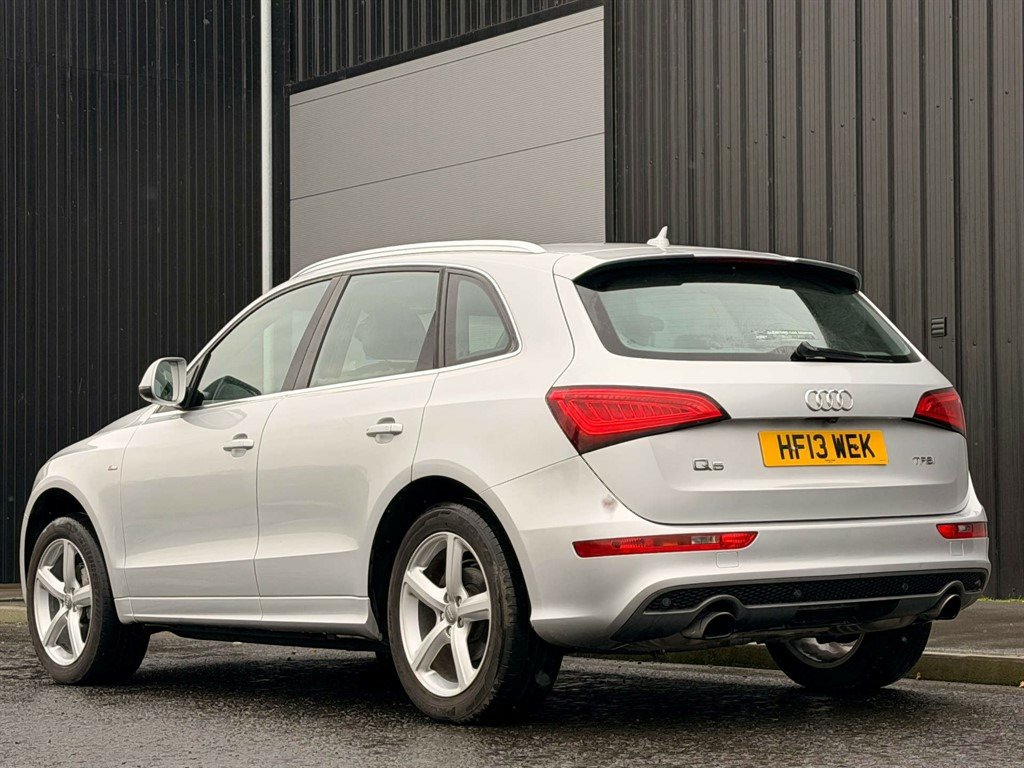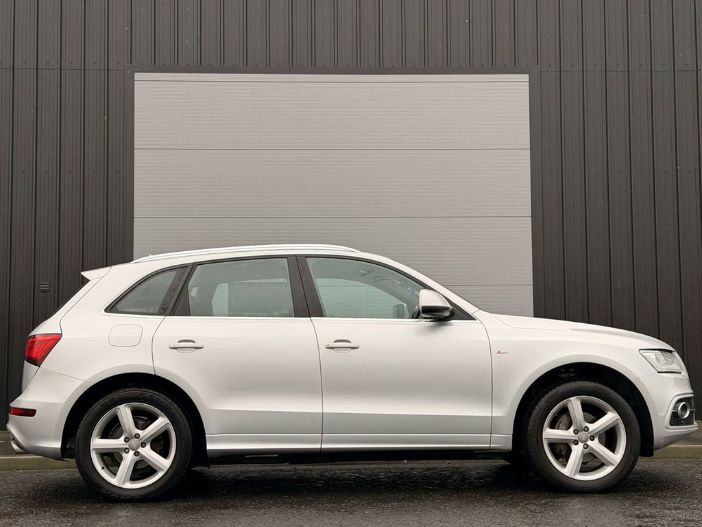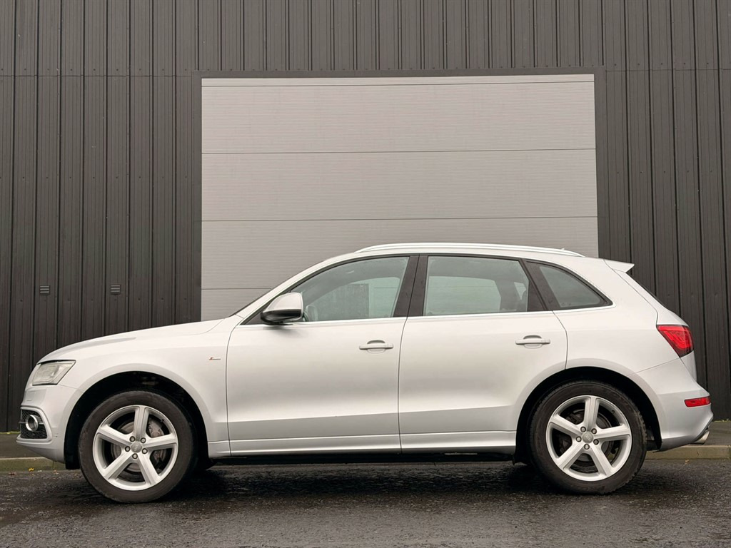 Introducing the Audi Q5 – where luxury meets performance in perfect harmony. Finished in an elegant Silver, this stunning SUV is designed to turn heads and deliver an unparalleled driving experience. Under the bonnet, the Audi Q5 boasts a powerful 2.0 TFSI engine, seamlessly paired with a CVT transmission and Quattro all-wheel drive, ensuring you have the power and control to tackle any road with confidence. Whether you're navigating city streets or exploring the countryside, the Q5 offers a smooth and responsive ride that is second to none. Step inside the meticulously crafted cabin, where the S Line trim elevates your journey with premium materials and cutting-edge technology. From the plush leather seats to the intuitive infotainment system, every detail is designed with your comfort and convenience in mind. Safety is paramount in the Audi Q5, with advanced features that provide peace of mind for you and your passengers. With its robust build and state-of-the-art safety systems, you can enjoy every drive knowing you're protected. Experience the perfect blend of style, performance, and innovation with the Audi Q5. Visit your local Audi dealership today and discover why this exceptional vehicle is the ultimate choice for discerning drivers. Don't just drive – make a statement with the Audi Q5. 12V Power Socket,19in Alloy Wheels - 5-Spoke Design,6.5in Display Screen,ABS - Anti-Lock Braking System,AUX-IN Socket,Acoustic Windscreen,Air Conditioning - Deluxe Automatic at the Rear,Airbags - Driver,Airbags - Front Passenger,Airbags - Front Side,Airbags - Head System,Alarm - Thatcham Category 1,Aluminium Roof Rails,Amplifier - 6 Channel,Anti Theft Locking Wheel Bolts,Audi Sound System,Audio Sound System,Auto-Dimming Rear-View Mirror,Automatic Headlight Range Adjustment,Automatic Wipers with Rain Sensor,Body Coloured Bumpers,Bumpers - S line Front,Car Jack,Cloth Headlining in Black,Collapsible Spare Wheel,Colour Drivers Information System - DIS,Concert Radio,Cruise Control,Cup Holders - Centre Console,Deluxe 3-Zone Climate Control,Diffuser - Platinum Grey,Door Mirrors - Electrically Adjustable and Heated,EBD - Electronic Brakeforce Distribution,ESP - Electronic Stability Programme,Electric Windows - Front and Rear,Electrically Adjustable 4-Way Lumbar Support,Electromechanical Parking Brake,Electromechanical Power Steering,Exhaust Tailpipe - Chrome Trimmed - Flat-Bottom Design on Both Sides,Exhaust Tailpipe - Chrome Trimmed Loaf Shape - Twin,First Aid Kit,Front Centre Armrest,Front Fog Lights,Front Passenger Airbag Deactivation Switch,Front and Rear Floor Mats,Headlight Washers,Headlights - Bi-Xenon Plus,Headlights - Coming-Leaving Home Function,Headlights - Light Sensor,Headlining - Black,Hill Descent Control,ISOFIX Child Seat Preparation Front and Rear,Inlays - Matt Brushed Aluminium,LED Daytime Running Lights,LED Rear Lights,Leather Package - Door Armrests,Mobile Telephone Preparation - Bluetooth Interface,Pollen Filter,Radiator Grille - S Line with Chrome Vertical Bars,Rear Diffuser - S Line Design,Rear Parking Sensors,Remote Boot Release,Remote Central Locking,Rest Recommendation System,Roof Bars and Storage Bag,Roof bar detection,S Line Badges on Wings,S Line Side Skirts,S line Sill Plates and Aluminium Loading Strip for the Boot,SDHC Card Reader,Seats - Front Height Adjustment,Split-Folding Rear Seats,Spoiler,Steering Column - Rake and Reach Adjustment,Steering Wheel - 3-spoke S line Multi-function Leather,Steering Wheel - Gear Shift Paddles,Steering Wheel - Multi-function,Styling Package - S line Exterior,TP Memo - Automatically Saves Traffic News,Tool Kit,Traction Control,Warning Triangle,Window Surrounds - Aluminium