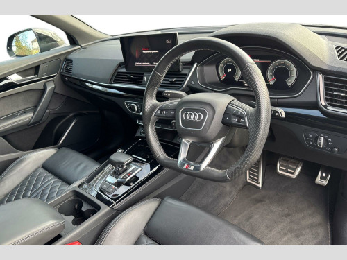 The generous boot space of this Audi Q5 makes it a practical choice for families and adventurers alike, easily accommodating luggage or shopping. Its four wheel drive system provides confident handling in various conditions, while the 2400 kg towing weight capability adds to its versatility. The combination of its low mileage, comprehensive service record, and advanced features like the Matrix LED headlights and climate control clearly sets this Q5 apart from other vehicles in its class, offering a superior driving experience. 2 USB Charging Ports -1 x USB-A and 1 x USB-C Port, 20in Alloy Wheels - 8J 5-V Spoke Design Audi Sport in Gloss Anthracite Black - Diamond Cut, 4-Way Electric Lumbar Support, 6-Airbag System, Anti Theft Locking Wheel Bolts, Anti-Theft Alarm, Artificial Leather Pack, Audi Beam with Audi Rings Logo, Audi Connect Navigation and Infotainment Services Plus - 3 Year Trial, Audi Connect with Amazon Alexa Integration, Audi Drive Select, Audi Pre-Sense City, Audi Rings Decal on Rear Doors, Audi Rings at Front and Rear in Black, Audi Virtual Cockpit Plus - 12.3in Screen and Three Different Layout Designs, Audi Wireless Smartphone Interface, Auto-Dimming Rear-View Mirror, Automatic Headlight Adjustment, Automatic Headlight and Windscreen Wiper Activation, Automatic Start-Stop with Coasting Functionality and Efficiency Programme, Black Door Mirrors, Black Roof Rails, Black Styling Package, Bluetooth Interface, Chrome-Plated Exhaust Trim, Cloth Headlining in Black, Comfort Front Centre Armrest - Height Adjustability and Slide Function, Contrast Stitching on Seats - Steering Wheel and Gear Lever Gaiter, Cruise Control System with Speed Limiter, DAB Digital Radio, Deluxe 3-Zone Electronic Climate Control, Door Mirrors - Electrically Folding and Heated and Auto Dimming, Door Side Sills in Carbon, ESC - Electronic Stabilisation Control inc ABS - ASR and EDL, Electric Child Locks for Rear Doors, Electric Windows - Front, Electrically Adjustable Front Seats, Electromechanical Parking Brake, Electromechanical Power Steering, Extended LED Interior Lighting Package - Multi-Coloured, First Aid Kit and Warning Triangle, Flat-Bottomed 3-Spoke Leather High Multi-Function Steering Wheel, Front Air Inlet Surrounds in Aluminium, Front and Rear Brake Calipers - Painted Red, Front and Rear Floor Mats, Front and Rear Parking Sensor with Acoustic Warning, Gear Lever in Black Leather, Headlight Washers, Heated Front Seats, High Gloss Package, Hill Descent Control, Hill Hold Assist, ISOFIX Child Seat Mounting and Top Tether, Illuminated Door Sill Trims with S Logo, Inlays - Piano Finish - Black, Keyless Go, LED Interior Lighting Pack, Lower Bumper Painted in Contrast Manhattan Grey, MMI Navigation Plus with 10.1in Touchscreen, Matrix LED Headlights with Dynamic Front and Rear Indicators, Multi Collision Brake Assist, Pedals in Stainless Steel, Pop-Up Bonnet for Pedestrian Protection, Power Operated Tailgate, Privacy Glass - Rear and Rear-Side Windows, Rear Bench Seat Plus, Rear Chrome Trim Strips Below Lights, Removable Luggage Compartment Floor, Reversing Camera, Roof Bars, S Line Front and Rear Bumpers, S Line Side Skirts, S Line Sports Suspension, S line Rear Spoiler, Seat Belt Monitoring, Split Folding 3 Seater - Rear Seat Bench in 3 Parts - 40-20-40 with Rear Centre Armrest, Steering Wheel - Gear Shift Paddles, Sun Visors - with Vanity Mirror, Tool Kit, Trunk Roller Cover, Tyre Pressure Warning Light, Tyre Repair Kit, Underbody Protection in Body Colour, Voice Control System with Audi Hotword Activation - Hey Audi, Windscreen with Acoustic Glass, Without Model and Engine Badge at Rear, quattro On Demand
