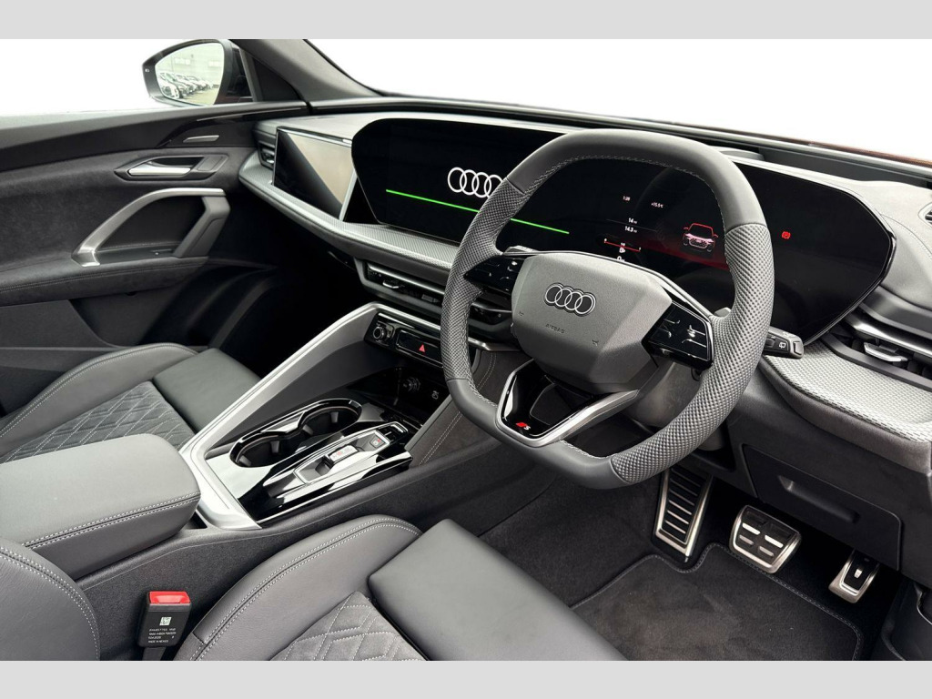 Price shown includes a deposit contribution of £1000 when purchased on finance by 31/12/25. Solutions Personal Contract Plan. 8.9% APR Representative. Audi Financial Services. Terms and Conditions apply. Sound and Vision Pack, 2 USB-C Ports in both the Front and the Rear, 21in Alloy Wheels - Audi Sport - 5-Twin Spoke Y - Silk Matt Grey - Gloss Turned Finish, Accent Surfaces and Control Buttons in Gloss Black, Acoustic Vehicle Alerting System - AVAS, Active Digital Light Signatures - Six Additional Combinations of Active Daytime Running Light Signatures Available - Selectable in the MMI or in the myAudi App, Adaptive Cruise Control, Advanced Driver Attention and Drowsiness Monitor, Ambient Lighting Package Plus, Anti Theft Wheel Bolts, Anti-Theft Alarm, Audi Application Store and Smartphone Interface, Audi Connect Emergency Call and Service with Audi Connect Remote and Control, Audi Connect Navigation and Infotainment - 3 Year Subscription, Audi Drive Select, Audi Sound System - 8 Loudspeakers inc. Centre Loudspeaker and Subwoofer - 6-Channel Amplifier Output 180 watts, Auto-Dimming Rear-View Mirror, Black Dashboard with Contrast Stitching, Black Door Mirror with Memory Function, Black Door Mirrors with Memory Function, Black Styling Pack Plus - with Audi Rings - Front and Rear in Anthracite Grey, Brake Calipers - Red, Camera Based Traffic Sign Recognition, Cloth Headlining in Black, Comfort Centre Armrest - Front, Convenience Key with Safelock, DAB Digital Radio, Deluxe 3-Zone Electronic Climate Control, Electric Child Safety Lock, Electrically Adjustable Front Seats with Memory Function for Drivers Side, Exhaust Tailpipe - Dark Chrome, Exterior Mirrors - Electrically Adjustable - Heated and Folding - Automatically Dimming on Both Sides, First Aid Kit and Warning Triangle and Safety Vests, Front Airbags with Front Passenger Deactivation, Front Cross-Traffic Intersection Assist, Front Door Sill Trims with Aluminium Inlays - Illuminated with S Logo, Front Emergency Brake Assist, Front and Rear Floor Mats, Full Body Paint Finish, Headlight Cleaning System, Heated Front Seats, High Beam Assist, High Gloss Window Surrounds, Hill Hold Assist, I-Size Child Seat Mounting on the Front Passenger Side and I-Size and Top Tether on the Outer Rear Seat, Inlays - Anthracite Matt Brushed Aluminium with Linear Embossing, Interior Trim in Aluminium Look, LED Rear Lights Pro - Including Dynamic Rear Indicators and Illuminated Light Strip with Animated Coming and Leaving Home Function, Lane Change Assistant with Exit Warning System - Rear Cross Traffic Alert and Rear Turn Assist, Lane Departure Warning with Emergency Assist, Logo Projection Light in Exterior Mirrors, Luggage Compartment Lid - Electrically Opening and Closing, MMI 10.9in Front Passenger Touch Display, MMI Navigation Plus with High Resolution 14.5in OLED Touchscreen Colour Display and Audi Virtual Cockpit Plus with 11.9in OLED Colour Display, Manual Steering Column Adjustment, Matrix LED Headlights, Occupant Detection in Rear Seat Area, Park Assist Plus, Parking System Plus with 360 Degree Display, Phone Compartment with Wireless Charging, Privacy Glass, Proactive Passenger Protection System for Front - Sides and Rear, Projection Light for Rear Window, Rear Seat Occupant Reminder, S Line Bumpers in Contrasting Volcano Grey - Metallic Paint Finish, S Line Exterior Styling with Radiator Grille in Body Colour and Accents in Dark Selenite Silver Front and Rear, S Sport Suspension, Side Airbags in Front and Rear with Head Airbag System and Front Interaction Airbag, Side and Rear Windows in Heat-Insulating Glass, Softwrap in Dinamica, Stainless Steel Pedals and Footrest, Steering Wheel - 3-Spoke Leather - Multi-Function Buttons with Touch Control - Flattened on Top and Bottom - S Badging - Contrast Stitching - Steering Wheel Grips in Perforated Leather - Shift Paddles, Storage and Luggage Compartment Package, Swerve Assist and Front Turn Assist, Top View Camera, Towbar Preparation, Traffic-Sign-Based Speed Limiter, Tyre Pressure Loss Indicator, Tyre Repair Kit, Upper and Lower Interior Elements in Dinamica Microfibre, Windscreen with Acoustic Glass