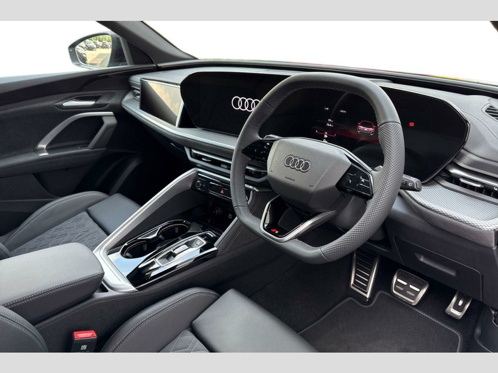 Price shown includes a deposit contribution of £1000 when purchased on finance by 31/12/25. Solutions Personal Contract Plan. 8.9% APR Representative. Audi Financial Services. Terms and Conditions apply. 21" Alloy 5-Arm Split Metallic Black Audi Sport, 2 USB-C Ports in both the Front and the Rear, 21in Alloy Wheels - Audi Sport - 5-Twin Spoke Y - Silk Matt Grey - Gloss Turned Finish, Accent Surfaces and Control Buttons in Gloss Black, Acoustic Vehicle Alerting System - AVAS, Active Digital Light Signatures - Six Additional Combinations of Active Daytime Running Light Signatures Available - Selectable in the MMI or in the myAudi App, Adaptive Cruise Control, Advanced Driver Attention and Drowsiness Monitor, Ambient Lighting Package Plus, Anti Theft Wheel Bolts, Anti-Theft Alarm, Audi Application Store and Smartphone Interface, Audi Connect Emergency Call and Service with Audi Connect Remote and Control, Audi Connect Navigation and Infotainment - 3 Year Subscription, Audi Drive Select, Audi Sound System - 8 Loudspeakers inc. Centre Loudspeaker and Subwoofer - 6-Channel Amplifier Output 180 watts, Auto-Dimming Rear-View Mirror, Black Dashboard with Contrast Stitching, Black Door Mirror with Memory Function, Black Door Mirrors with Memory Function, Black Roof Rails, Black Styling Pack Plus - with Audi Rings - Front and Rear in Anthracite Grey, Brake Calipers - Red, Camera Based Traffic Sign Recognition, Cloth Headlining in Black, Comfort Centre Armrest - Front, Convenience Key with Safelock, DAB Digital Radio, Deluxe 3-Zone Electronic Climate Control, Electric Child Safety Lock, Electrically Adjustable Front Seats with Memory Function for Drivers Side, Exhaust Tailpipe - Dark Chrome, Exterior Mirrors - Electrically Adjustable - Heated and Folding - Automatically Dimming on Both Sides, First Aid Kit and Warning Triangle and Safety Vests, Front Airbags with Front Passenger Deactivation, Front Cross-Traffic Intersection Assist, Front Door Sill Trims with Aluminium Inlays - Illuminated with S Logo, Front Emergency Brake Assist, Front and Rear Floor Mats, Full Body Paint Finish, Headlight Cleaning System, Heated Front Seats, High Beam Assist, High Gloss Window Surrounds, Hill Hold Assist, I-Size Child Seat Mounting on the Front Passenger Side and I-Size and Top Tether on the Outer Rear Seat, Inlays - Anthracite Matt Brushed Aluminium with Linear Embossing, Interior Trim in Aluminium Look, LED Rear Lights Pro - Including Dynamic Rear Indicators and Illuminated Light Strip with Animated Coming and Leaving Home Function, Lane Change Assistant with Exit Warning System - Rear Cross Traffic Alert and Rear Turn Assist, Lane Departure Warning with Emergency Assist, Logo Projection Light in Exterior Mirrors, Luggage Compartment Lid - Electrically Opening and Closing, MMI 10.9in Front Passenger Touch Display, MMI Navigation Plus with High Resolution 14.5in OLED Touchscreen Colour Display and Audi Virtual Cockpit Plus with 11.9in OLED Colour Display, Manual Steering Column Adjustment, Matrix LED Headlights, Occupant Detection in Rear Seat Area, Park Assist Plus, Parking System Plus with 360 Degree Display, Phone Compartment with Wireless Charging, Privacy Glass, Proactive Passenger Protection System for Front - Sides and Rear, Projection Light for Rear Window, Rear Seat Occupant Reminder, S Line Bumpers in Contrasting Volcano Grey - Metallic Paint Finish, S Line Exterior Styling with Radiator Grille in Body Colour and Accents in Dark Selenite Silver Front and Rear, S Sport Suspension, Side Airbags in Front and Rear with Head Airbag System and Front Interaction Airbag, Side and Rear Windows in Heat-Insulating Glass, Softwrap in Dinamica, Stainless Steel Pedals and Footrest, Steering Wheel - 3-Spoke Leather - Multi-Function Buttons with Touch Control - Flattened on Top and Bottom - S Badging - Contrast Stitching - Steering Wheel Grips in Perforated Leather - Shift Paddles, Storage and Luggage Compartment Package, Swerve Assist and Front Turn Assist, Top View Camera, Towbar Preparation, Traffic-Sign-Based Speed Limiter, Tyre Pressure Loss Indicator, Tyre Repair Kit, Upper and Lower Interior Elements in Dinamica Microfibre, Windscreen with Acoustic Glass