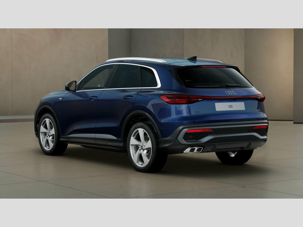 Discover the perfect balance of style and efficiency with this brand new Audi Q5 S line. Finished in the sophisticated Navarra Blue metallic paint, this SUV looks sharp from every angle. Under the hood is a refined 2.0 TDI diesel engine, paired with a smooth S Tronic automatic gearbox and Audi’s famous quattro all-wheel-drive system for a confident drive in any weather. The exterior is enhanced by striking 20-inch 5-Arm Design alloy wheels that give the car a bold and modern look. Maneuvering this SUV is a breeze thanks to the integrated parking camera and front and rear parking sensors, which help you navigate tight spots with total ease.