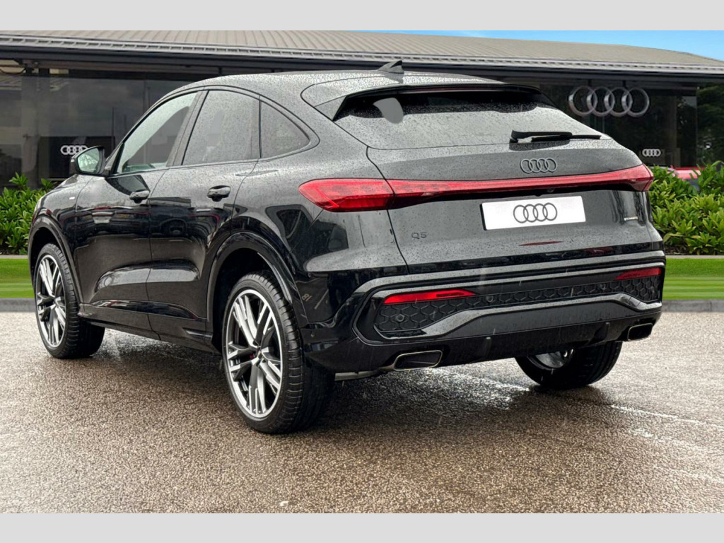 Take a look at this Brand-New Audi Q5 Sportback Edition 1 TFSI Quattro in Mythos Black with its 21" 5-twin spoke Audi sport alloy wheels which look superb out on the roads. The Matrix LED headlights with LED rear lights pro, create that strong visibility in all weather conditions. The deluxe 3-zone climate control can be adjusted to your prefered climate on all journeys.