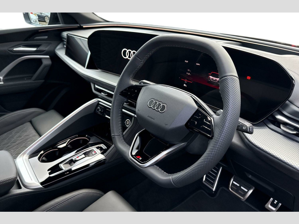 Sound and Vision Pack, Black Roof Rails, Microfibre Dinamica - Leather - Sports Seats with S Embossed Logo - Black, 2 USB-C Ports in both the Front and the Rear, 21in Alloy Wheels - Audi Sport - 5-Twin Spoke Y - Silk Matt Grey - Gloss Turned Finish, Accent Surfaces and Control Buttons in Gloss Black, Acoustic Vehicle Alerting System - AVAS, Active Digital Light Signatures - Six Additional Combinations of Active Daytime Running Light Signatures Available - Selectable in the MMI or in the myAudi App, Adaptive Cruise Control, Advanced Driver Attention and Drowsiness Monitor, Ambient Lighting Package Plus, Anti Theft Wheel Bolts, Anti-Theft Alarm, Audi Application Store and Smartphone Interface, Audi Connect Emergency Call and Service with Audi Connect Remote and Control, Audi Connect Navigation and Infotainment (3 Year Subscription From New), Audi Drive Select, Audi Sound System - 8 Loudspeakers inc. Centre Loudspeaker and Subwoofer - 6-Channel Amplifier Output 180 watts, Auto-Dimming Rear-View Mirror, Black Dashboard with Contrast Stitching, Black Door Mirror with Memory Function, Black Door Mirrors with Memory Function, Black Styling Pack Plus - with Audi Rings - Front and Rear in Anthracite Grey, Brake Calipers - Red, Camera Based Traffic Sign Recognition, Cloth Headlining in Black, Comfort Centre Armrest - Front, Convenience Key with Safelock, DAB Digital Radio, Deluxe 3-Zone Electronic Climate Control, Electric Child Safety Lock, Electrically Adjustable Front Seats with Memory Function for Drivers Side, Exhaust Tailpipe - Dark Chrome, Exterior Mirrors - Electrically Adjustable - Heated and Folding - Automatically Dimming on Both Sides, First Aid Kit and Warning Triangle and Safety Vests, Front Airbags with Front Passenger Deactivation, Front Cross-Traffic Intersection Assist, Front Door Sill Trims with Aluminium Inlays - Illuminated with S Logo, Front Emergency Brake Assist, Front and Rear Floor Mats, Full Body Paint Finish, Headlight Cleaning System, Heated Front Seats, High Beam Assist, High Gloss Window Surrounds, Hill Hold Assist, I-Size Child Seat Mounting on the Front Passenger Side and I-Size and Top Tether on the Outer Rear Seat, Inlays - Anthracite Matt Brushed Aluminium with Linear Embossing, Interior Trim in Aluminium Look, LED Rear Lights Pro - Including Dynamic Rear Indicators and Illuminated Light Strip with Animated Coming and Leaving Home Function, Lane Change Assistant with Exit Warning System - Rear Cross Traffic Alert and Rear Turn Assist, Lane Departure Warning with Emergency Assist, Logo Projection Light in Exterior Mirrors, Luggage Compartment Lid - Electrically Opening and Closing, MMI 10.9in Front Passenger Touch Display, MMI Navigation Plus with High Resolution 14.5in OLED Touchscreen Colour Display and Audi Virtual Cockpit Plus with 11.9in OLED Colour Display, Manual Steering Column Adjustment, Matrix LED Headlights, Occupant Detection in Rear Seat Area, Park Assist Plus, Parking System Plus with 360 Degree Display, Phone Compartment with Wireless Charging, Privacy Glass, Proactive Passenger Protection System for Front - Sides and Rear, Projection Light for Rear Window, Rear Seat Occupant Reminder, S Line Bumpers in Contrasting Volcano Grey - Metallic Paint Finish, S Line Exterior Styling with Radiator Grille in Body Colour and Accents in Dark Selenite Silver Front and Rear, S Sport Suspension, Side Airbags in Front and Rear with Head Airbag System and Front Interaction Airbag, Side and Rear Windows in Heat-Insulating Glass, Softwrap in Dinamica, Stainless Steel Pedals and Footrest, Steering Wheel - 3-Spoke Leather - Multi-Function Buttons with Touch Control - Flattened on Top and Bottom - S Badging - Contrast Stitching - Steering Wheel Grips in Perforated Leather - Shift Paddles, Storage and Luggage Compartment Package, Swerve Assist and Front Turn Assist, Top View Camera, Towbar Preparation, Traffic-Sign-Based Speed Limiter, Tyre Pressure Loss Indicator, Tyre Repair Kit, Upper and Lower Interior Elements in Dinamica Microfibre, Windscreen with Acoustic Glass