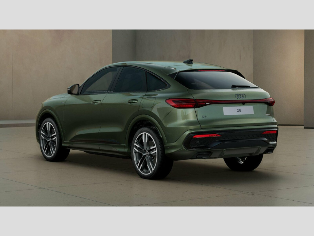 This brand new Audi Q5 Sportback Black Edition brings together modern hybrid efficiency and bold, athletic styling. It is finished in the unique and eye-catching District Green paint, which looks fantastic alongside the darkened accents of the Black Edition trim. As a plug-in e-hybrid with a 25.9kWh battery, this Q5 offers the ability to drive on electric power for daily commutes while providing the security of a petrol engine for longer trips. The car has a powerful presence on the road, sitting on impressive 21-inch 5-twin spoke Y-design alloy wheels that perfectly fill the arches of the sleek Sportback silhouette.