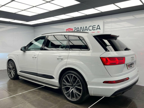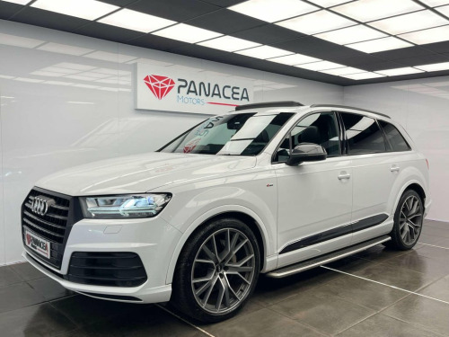 REG : AUDI Q7 3.0 TDI V6 BLACK EDITION SUV 5DR DISESL TIPTRONIC QUATTRO EURO 6 272 BHP FINISHED IN AUDI EXCLUSIVE WHITE WITH FULL BLACK LEATHER INTERIOR. THIS HIGH SPECIFICATION EXAMPLE BOASTS ONLY THE 1 PREVIOUS OWNER FROM NEW EQUIPPED WITH OVER ?15K OF FACTORY EXTRAS WHICH INCLUDE | TILT AND SLIDE PANORAMIC GLASS SUNROOF | TECHNOLOGY PACKAGE | AUDI MATRIX LED HEADLIGHTS | REVERSE CAMERA | FRONT AND REAR PARKING SENSORS | HEATED SEATS | FOUR ZONE CLIMATE CONTROL | ELECTRIC FRONT SEATS | HEATED WINDSCREEN | UPGRADED 22 INCH ALLOY WHEELS | BLACK STYLING PACKAGE | MULTICOLOUR AMBIENT LIGHTING PACKAGE | HEATED AND FOLDING MIRRORS | POWER OPERATED TAIL GATE | VIRTUAL DASH | SUN PROTECTION GLASS | KEYLESS START | PARKING ASSIST | 2 KEYS | BE FAST - A RARE FIND IN THIS SPECIFICATION AND NOT TO BE MISSED.... Further to this all vehicles are provided with a comprehensive AA Dealer Care Extended Guarantee and Full AA Roadside, Recovery and Home Start & Onward travel (where not covered under the manufactures own warranty). HPI checks are carried out making sure all cars are clear from any concern, offering you total piece of mind. Every vehicle's mileage is fully guaranteed as genuine. Included with your purchase you will receive a minimum of 3 months Warranty with the option to extended and tailor your package at the time of purchase. Our vehicles are supplied fully valeted to the highest standards and include up to date servicing with a minimum of 9 months MOT. We are regula 21in Alloy Wheels - 5-Spoke Blade Design, 6-Airbag System, 7 Seats, Adaptive Air Sport Suspension, Anti Theft Locking Wheel Bolts, Anti-Theft Alarm, Audi Connect Infotainment Services - 36 , Audi Connect Safety and Service, Audi Drive Select, Audi Hill Hold Assist, Audi Parking System Plus, Audi Pre-Sense City, Audi Smartphone Interface, Audi Sound System, Audi Virtual Cockpit, Auto-Dimming Rear-View Mirror, Automatic Headlight Adjustment, Bluetooth Interface, Cloth Headlining in Black, Colour Drivers Information System with 7, Cruise Control with Speed Limiter, Deluxe Four-Zone Automatic Climate Contr, Door Mirrors - Heated-Electrically Adjus, Electric Windows - Front and Rear, Electrically