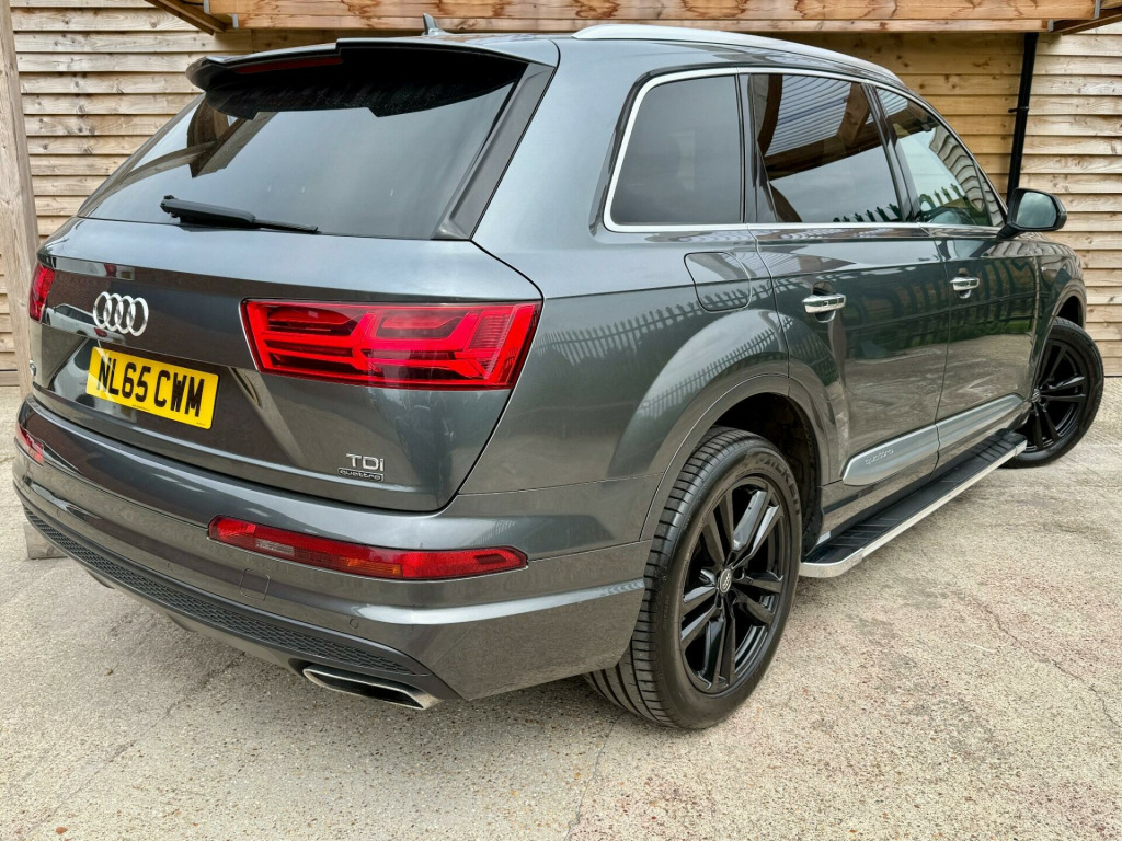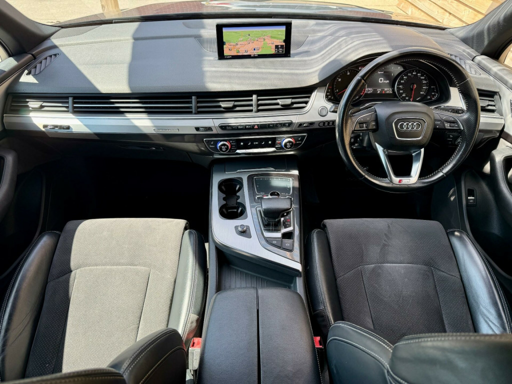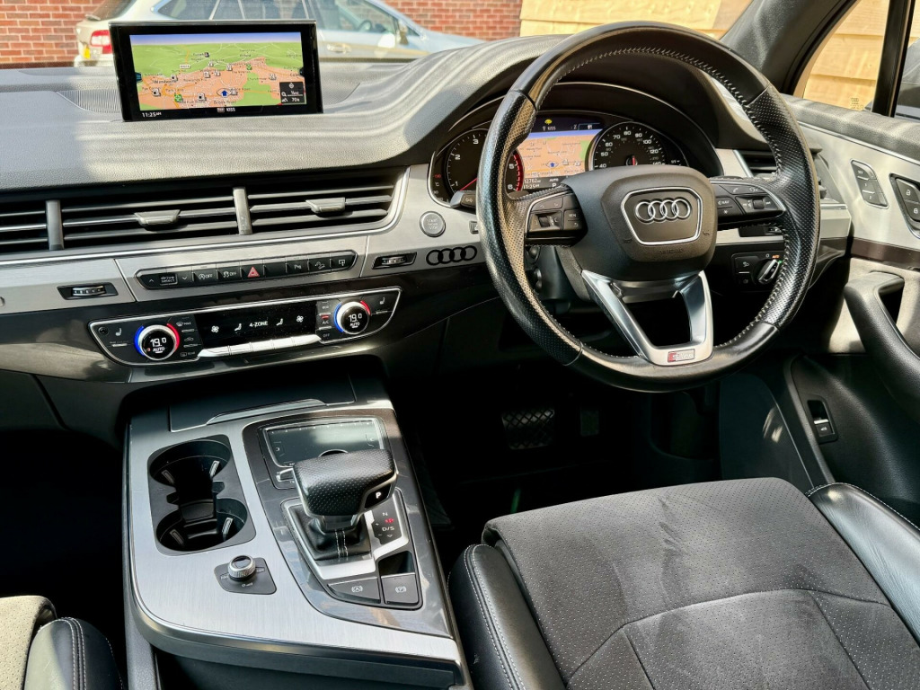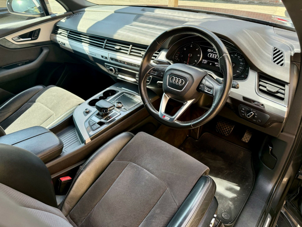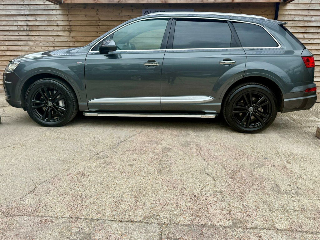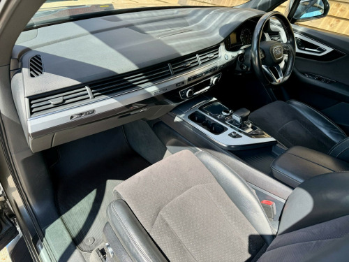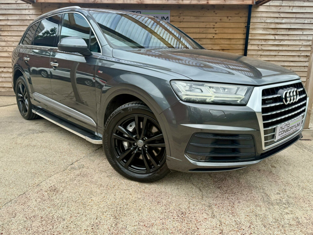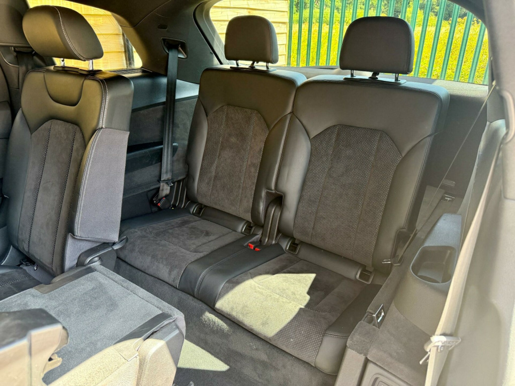 Audi Q7 3.0TDI Quattro Sline Tiptronic 272 BHP. Finished in Daytona Grey metallic with Black 1/2 Leather Alcantara.This incredible condition Audi Q7 has been cared for extremely well throughout its life with It benefiting from a great service history to even include the chains being replaced in 2021. We will however be servicing this super looking Audi 7 seater before the next owner takes delivery. Its MOT isn't due until May 2026. This family 7 seater really is in incredible condition with it showing very little signs of age related marks (It genuinely looks like it's traveled less than half the miles) and all 4 branded tyres having a substantial amount of tread. The specification on this beautiful example Audi Q7 is vast with some highlights being. MMI Navigation Plus including MMI Touch, Audi Parking System Plus, Electric Front Seats With Drivers Memory Function, Folding Door Mirrors, 7seats, Electric Folding 3rd Row Seating, 1/2 Leather Alcantara, Heated Front Seats, 3 Zone Climate Control, 20in Alloy Wheels - 5-Parallel Spoke Design, Audi Drive Select, Power Operated Tailgate, Audi Sound System, DAB Radio, Privacy Glass. To name but a few.We feel if you're looking for a well built/refined family 7 seater then they don't get much better than this one. These Audi Q7's are very fuel efficient and would make the perfect family SUV with a cavernous boot and rear leg room it caters for any large family. So at this price it is fantastic value for money. In addition, it is fully ULEZ compliant. As part of the preparation we have had all the alloy wheels professionally refurbished in Santorini black and are all in immaculate condition.All Auto Consortium cars are handpicked from local main dealers and we NEVER buy from auctions. This way we can be sure we’re selling our customers a good quality used car. This Audi Q7 also comes with three months warranty via Handler Protect. Be sure to ask about our extended warranty options, and feel free to call us with any questions or to arrange a viewing/ test drive. Your part exchange is always welcome.