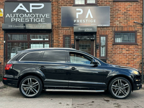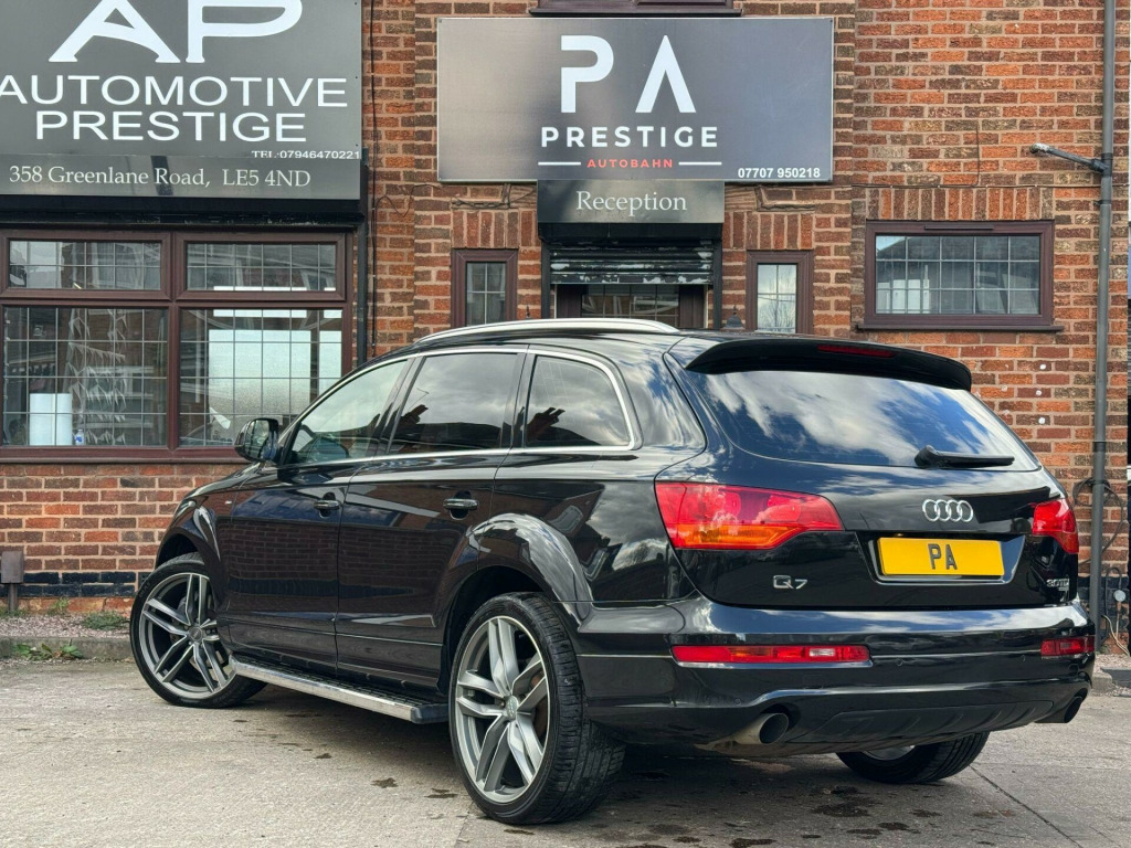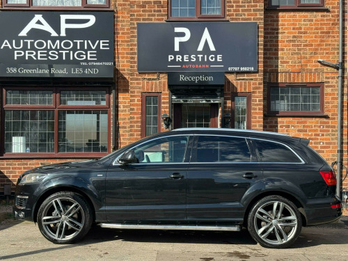 PRESTIGE AUTOBAHN ARE PROUD TO PRESENT A AUDI Q7 3.0 TDI S LINE TRIPTRONIC QUATTRO. A WELL-CARED FOR AND MAINTAINED VEHICLE COVERING JUST OVER 90,000 RELIABLE MILES BACKED BY SERVICE HISTORY FOR YOUR PEACE OF MIND. FACTORY FITTED EXTRAS INCLUDE, CRUISE CONTROL, MULTI FUNCTION STEERING WHEEL, BLUETOOTH TELEPHONE, AUX PORT AND USB PORT. THE CAR DRIVES ABSOLUTELY SUPERB. ANY INSPECTIONS & TEST DRIVES ARE MOST WELCOME. ALL DEALER FACILITIES ARE AVAILABLE. WE CAN ARRANGE FINANCE, LOW COST DELIVERY, EXTENDED WARRANTIES AND ACCEPT ANY CAR AS PART EXCHANGE FOR A HASSLE FREE PURCHASE. AT PRESTIGE AUTOBAHN WE ARE CONFIDENT IN PROVIDING FIRST CLASS CUSTOMER SERVICE. WE PROVIDE YOU WITH AS MUCH INFORMATION ABOUT OUR VEHICLES AS POSSIBLE. PAYMENTS CAN BE MADE VIA CASH, BANK TRANSFER OR DEBIT CARD. PLEASE CALL US ON 07707 950218 OR EMAIL US AT PRESTIGEAUTOBAHNGMAIL.COM FOR ANY QUESTIONS OR ENQUIRIES. THANK YOU. comfort seats in second row, automatic air conditioning at rear, stainless steel running boards, storage trays ilo ashtrays, tyre pressure control