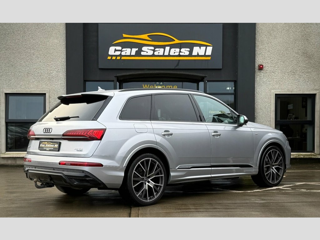 2020 AUDI Q7 S LINE QUATTRO 45 TDI V6 228 BHP 3.0 Diesel Model, Covered 95k miles, Finished in Silver, Key Features include: Adaptive Air Suspension 22'' Alloy wheels Included in price Rear Privacy glass Black Edition Styling Front and Rear Parking sensors Reversing camera Full Leather S Line Interior Leather Multifunctional steering wheel Paddle shift Electrically adjustable front seats Heated front seats Dual Climate control Virtual Cockpit DAB Radio / Bluetooth / Sat Nav Apple / Android Car Play AUDI Drive Mode Select Electrically folding 3rd row seating Electronic Tailgate ISOFIX Child seat Points And so much more... Call today to arrange a test drive Tailored finance packages available to suit your needs Comprehensive warranty on all cars Trade ins welcome Delivery to North and South of Ireland if required 2-Zone Automatic Climate Control, 20in Alloy Wheels - 9J 5-Spoke-Turbine D, 7 Seats, AMI - Audi Music Interface, Adaptive Air Suspension, Airbags - Driver - Front Passenger - Fro, Aluminium Roof Rails, Aluminium Window Trims, Anti-Theft Alarm, Anti-Theft Wheel Bolts and Wheel Looseni, Audi Connect (3 Year Subscription From N, Audi Connect Safety and Service - e-call, Audi Drive Select, Audi Hill Hold Assist, Audi Matrix LED Headlights with Dynamic , Audi Parking System Plus, Audi Phone Box with Wireless Charging, Audi Pre-Sense Front, Audi Smartphone Interface, Audi Sound System, Audi Virtual Cockpit, Auto Dimming and Frameless Rear View Mir, Body Coloured Door Mirrors, Camera-Based Traffic