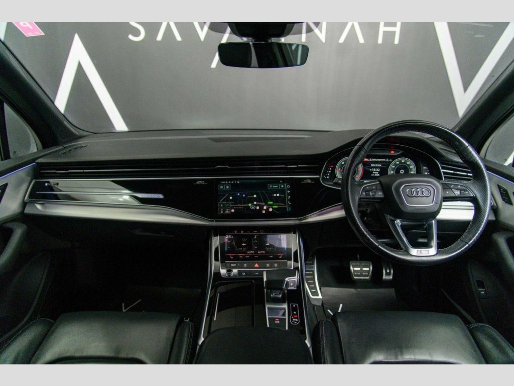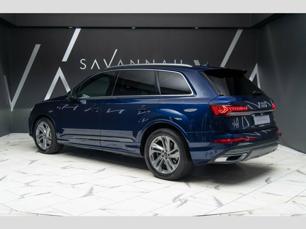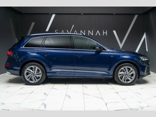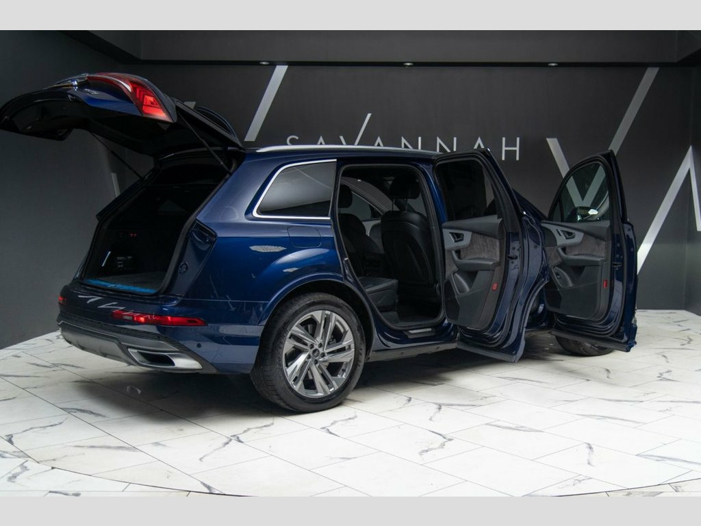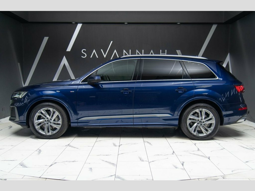 This Audi Q7 3.0 TDI V6 45 S line presents a commanding blend of performance, refinement and everyday versatility, finished in striking Navarra Blue and enhanced by the S line exterior styling with sculpted body-colour bumpers, S line roof spoiler, aluminium roof rails and distinctive 20-inch turbine-style alloy wheels that give the car a confident road presence. Powered by a smooth and responsive V6 diesel engine paired with Tiptronic transmission and quattro all-wheel drive, it delivers effortless pace and assured traction, further supported by adaptive air suspension and Audi Drive Select for a composed yet engaging drive. Inside, the seven-seat cabin is crafted to a premium standard with black headlining, dark brushed aluminium inlays and heated front seats, centred around Audi Virtual Cockpit and MMI Navigation Plus with intuitive touch control and natural voice recognition. This example is further elevated by factory-fitted options including Comfort and Sound Package (£2,295), Navarra Blue paint (£750) and 85-litre fuel tank (£125), bringing the total value of optional extras to £3,170, and making this a superbly specified luxury SUV that reflects the precision engineering and understated performance expected from Audi. Fuel Tank 85L, Navarra Blue, Comfort and Sound Package, 2-Zone Automatic Climate Control, 20in Alloy Wheels - 9J 5-Spoke-Turbine D, 7 Seats, AMI - Audi Music Interface, Adaptive Air Suspension, Airbags - Driver - Front Passenger - Fro, Aluminium Roof Rails, Aluminium Window Trims, Anti-Theft Alarm, Anti-Theft Wheel Bolts and Wheel Looseni, Audi Connect (3 Year Subscription From N, Audi Connect Safety and Service - e-call, Audi Connect with Amazon Alexa Integrati, Audi Drive Select, Audi Hill Hold Assist, Audi Parking System Plus, Audi Pre-Sense Front, Audi Smartphone Interface, Audi Sound System, Audi Virtual Cockpit, Auto Dimming and Frameless Rear View Mir, Bluetooth Interface, Body Colour