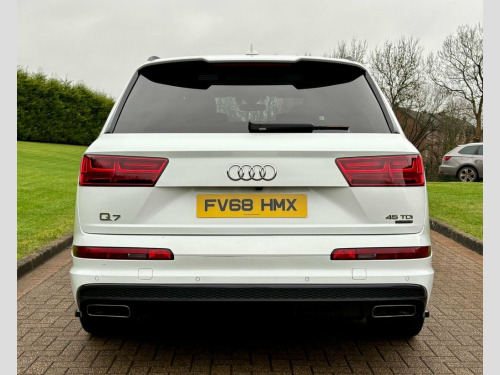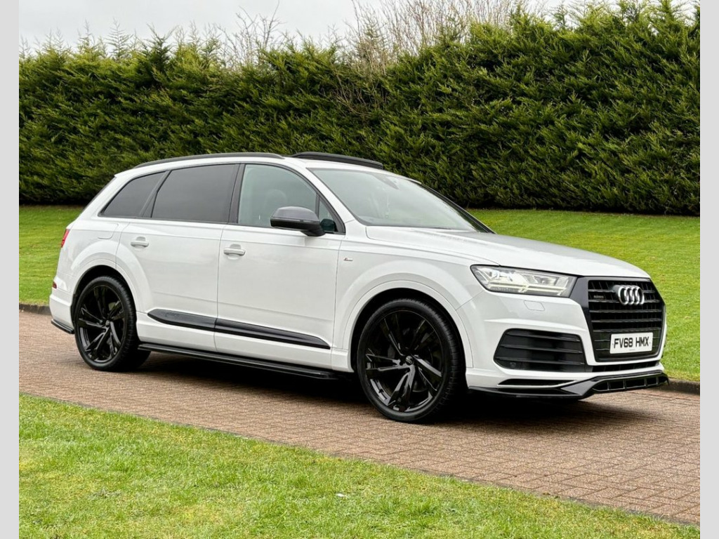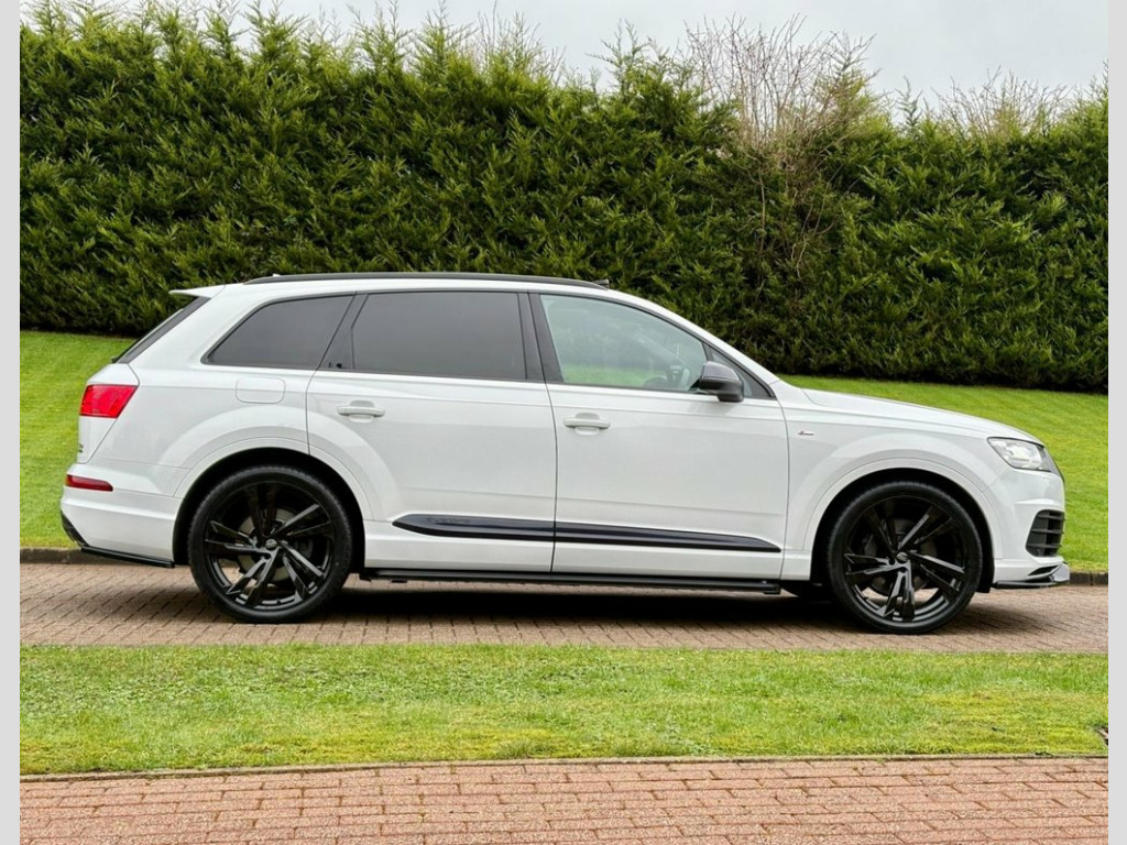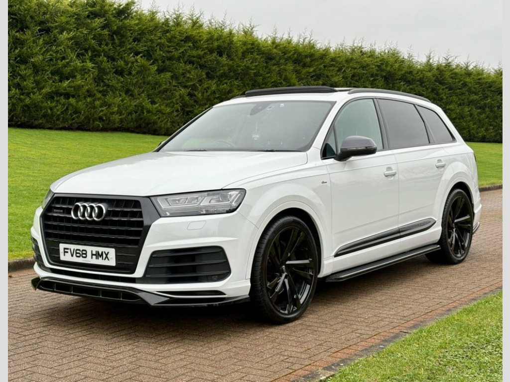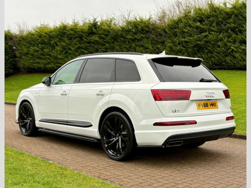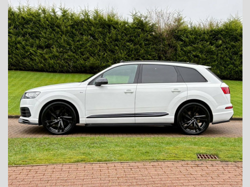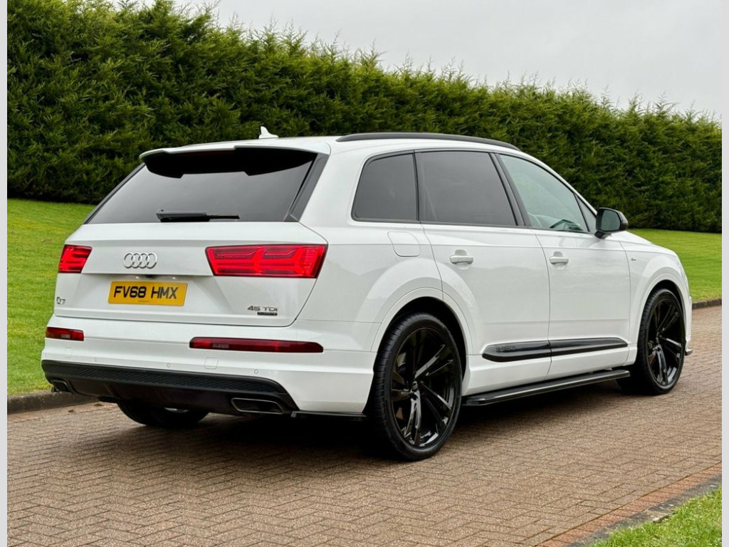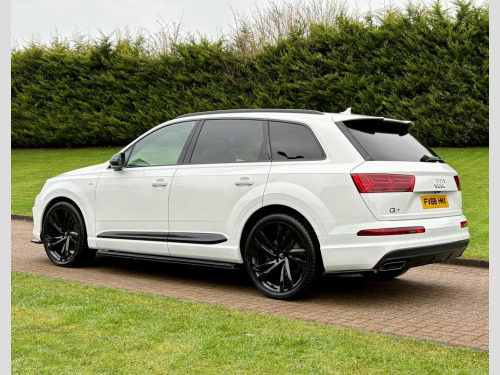 November 2018 Audi Q7 45TDI S-Line Quattro Auto in Ibis White. Full Service History. MOT'd to November 2026. Loaded with spec including Half Leather / Suede Interior, Tilt & Slide Panoramic Glass Roof, Factory Black Pack, Virtual Cockpit, Adaptive Air Suspension, Heated Seats, Electric Seats, Navigation System, Bluetooth, Reverse Parking Camera, DAB Radio, LED Daytime Running Lights, Black Pack, Privacy Glass, Cruise Control, Side Running Boards, Dual Climate Control, Aero Styling Kit etc. Fitted with Brand New 22" Alloys & Tyres (Optional Extra £1495) FINANCE AVAILABLE AT KEEN RATES!! Viewing by Appointment Only! 20in Alloy Wheels - 5-Parallel Spoke Des, 6-Airbag System, 7 Seats, Adaptive Air Suspension, Aluminium Roof Rails, Anti Theft Locking Wheel Bolts, Anti-Theft Alarm, Audi Connect Infotainment Services - 36 , Audi Connect Safety and Service, Audi Drive Select, Audi Hill Hold Assist, Audi Parking System Plus, Audi Phone Box with Wireless Charging, Audi Pre-Sense City, Audi Smartphone Interface, Audi Sound System, Audi Virtual Cockpit, Auto-Dimming Rear-View Mirror, Bluetooth Interface, Body Coloured Door Mirrors, Cloth Headlining in Black, Colour Drivers Information System with 7, Cruise Control with Speed Limiter, Door Mirrors - Heated-Electrically Adjus, Door Sill Trims with S Line Logo, Dual