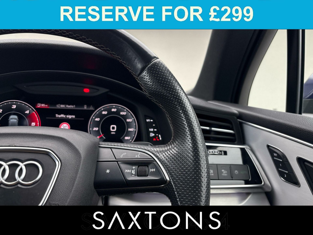 . ISOFIX, Aluminium Roof Rails, Keyless Start, ISOFIX, Front Sports Seat, Audi Connect Package, Matrix LED Headlights with Dynamic Light Sequencing and Dynamic Turn Signals, Digital Audio Broadcasting, Audi Virtual Cockpit (Plus), 4-way Lumbar Support (Front Seats), Leather Trimmed Multi-Function Sports Steering Wheel, Cruise Control With Speed Limiter, Matt Brushed Aluminum Inlays, Rear and Side Windows with Heat-Insulating Glazing, S-Line Bumpers, Cruise Control Including Speed Limiter, Comfort Center Armrest, 3rd Seat Row, Lane Departure Warning, Body Coloured Exterior Mirrors, Audi Music Interface, Ambient Lighting Package, Quattro (With Self-locking Center Differential), Audi Sound System, Audi Pre Sense Front, Automatic Slip-Control Differential, Long Wheelbase, Camera-Based Traffic Sign Recognition, Privacy Glass, Audi Phone Box Light, Matrix LED Headlamps with Dynamic Light Design, Dynamic Turn Signal, Power Adjustable Exterior Mirrors, Heated Exterior Mirrors, Power Folding Exterior Mirrors, Auto Dimming Exterior Mirrors, Memory Exterior Mirrors, Scuff Plates with Aluminium Inserts in Front, Illuminated, with ''S'' Logo, Power Front Seats with Memory Feature for The Driver Seat, Adaptive Air Suspension, MMI Navigation Plus with MMI Touch, Multifunction Camera, Audi Connect Emergency Call & Service with Audi Connect Remote & Control, Audi Connect Navigation & Infotainment, Separate Daytime Running Light, Anti-theft Alarm System, Black Fabric Headliner, Driver and Front Passenger Airbag with Front Passenger Airbag Deactivation, S line Logos Exterior, Increased Volume Fuel Tank, Electric Auxiliary Air Heater, Climatronic with 2-zone Climate Control, Start-Stop System with Generative Braking, Park Distance Control, Electric Open/Close Luggage Compartment, Rear View Camera System, Heat-Insulating Windshield Glass, Electric Parking Brake with Auto Hold Function, Auto-dimming Rear View Mirror, Curtain Airbag System for Front and Rear Passengers Including Side Airbags, Heated Front Seats, Without partition Translation, Extended Pedestrian Protection Measures, 7 Seats, Audi Virtual Cockpit Plus, Privacy Glass, Valcona Leather - Sports Seats with S Embossed Logo - Black with Grey Stitching, Privacy Glass.