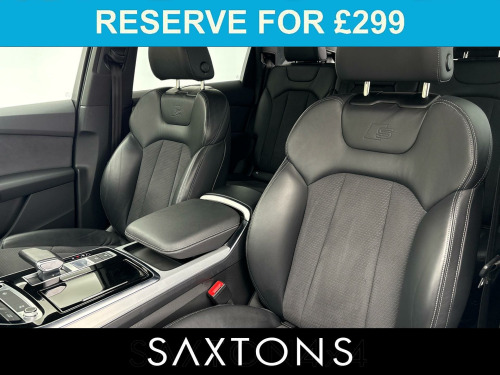. Audi Connect Package, Digital Audio Broadcasting, 4-way Lumbar Support (Front Seats), Leather Trimmed Multi-Function Sports Steering Wheel, Parking System Plus with 360° Display, LED Rear Lights, Cruise Control With Speed Limiter, Matt Brushed Aluminum Inlays, Rear and Side Windows with Heat-Insulating Glazing, S-Line Bumpers, Cruise Control Including Speed Limiter, Comfort Center Armrest, 3rd Seat Row, Lane Departure Warning, Body Coloured Exterior Mirrors, Audi Music Interface, Ambient Lighting Package, Quattro (With Self-locking Center Differential), Bluetooth Interface, Audi Sound System, Audi Pre Sense Front, Automatic Slip-Control Differential, Long Wheelbase, High Beam Assistant, Camera-Based Traffic Sign Recognition, Privacy Glass, Power Adjustable Exterior Mirrors, Heated Exterior Mirrors, Power Folding Exterior Mirrors, Auto Dimming Exterior Mirrors, Memory Exterior Mirrors, Scuff Plates with Aluminium Inserts in Front, Illuminated, with ''S'' Logo, Power Front Seats with Memory Feature for The Driver Seat, Audi Virtual Cockpit, Adaptive Air Suspension, Multifunction Camera, Audi Connect Emergency Call & Service with Audi Connect Remote & Control, Audi Connect Navigation & Infotainment, Separate Daytime Running Light, Anti-theft Alarm System, Black Fabric Headliner, Driver and Front Passenger Airbag with Front Passenger Airbag Deactivation, S line Logos Exterior, Electric Auxiliary Air Heater, Climatronic with 2-zone Climate Control, Start-Stop System with Generative Braking, Electric Open/Close Luggage Compartment, Rear View Camera System, Heat-Insulating Windshield Glass, Electric Parking Brake with Auto Hold Function, Auto-dimming Rear View Mirror, Curtain Airbag System for Front and Rear Passengers Including Side Airbags, Heated Front Seats, Without partition Translation, Extended Pedestrian Protection Measures, LED Headlamps, ISOFIX, Aluminium Roof Rails, Keyless Start, ISOFIX, Front Sports Seat, Privacy Glass, Audi Virtual Cockpit, Leather-Alcantara - Sport Seats with S Embossed Logo - Black with Grey Stitching, Audi Virtual Cockpit, 7 Seats, Privacy Glass.