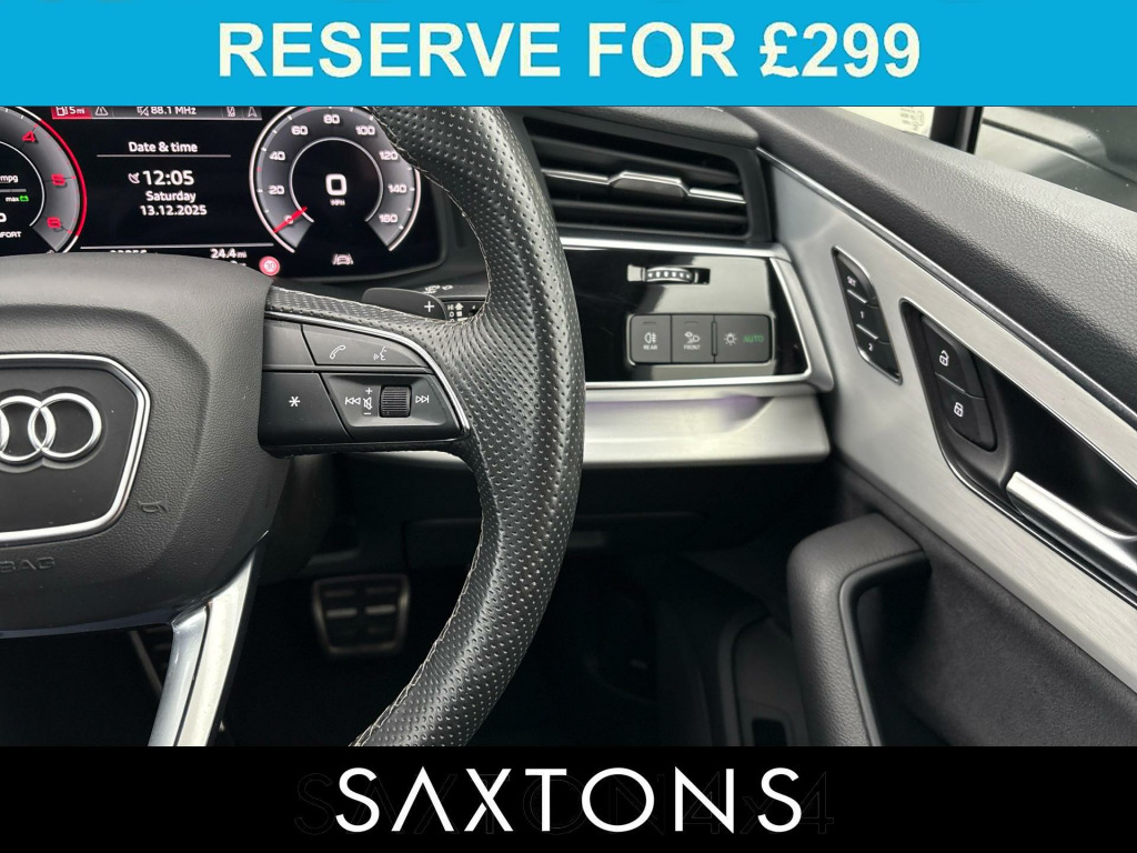 . Audi Connect Package, Digital Audio Broadcasting, 4-way Lumbar Support (Front Seats), Leather Trimmed Multi-Function Sports Steering Wheel, Parking System Plus with 360° Display, LED Rear Lights, Cruise Control With Speed Limiter, Matt Brushed Aluminum Inlays, Rear and Side Windows with Heat-Insulating Glazing, S-Line Bumpers, Cruise Control Including Speed Limiter, Comfort Center Armrest, 3rd Seat Row, Lane Departure Warning, Body Coloured Exterior Mirrors, Audi Music Interface, Ambient Lighting Package, Quattro (With Self-locking Center Differential), Bluetooth Interface, Audi Sound System, LED Headlamps, ISOFIX, Aluminium Roof Rails, Keyless Start, ISOFIX, Front Sports Seat, Audi Pre Sense Front, Automatic Slip-Control Differential, Long Wheelbase, High Beam Assistant, Camera-Based Traffic Sign Recognition, Privacy Glass, Power Adjustable Exterior Mirrors, Heated Exterior Mirrors, Power Folding Exterior Mirrors, Auto Dimming Exterior Mirrors, Memory Exterior Mirrors, Scuff Plates with Aluminium Inserts in Front, Illuminated, with ''S'' Logo, Power Front Seats with Memory Feature for The Driver Seat, Audi Virtual Cockpit, Adaptive Air Suspension, Multifunction Camera, Audi Connect Emergency Call & Service with Audi Connect Remote & Control, Audi Connect Navigation & Infotainment, Separate Daytime Running Light, Anti-theft Alarm System, Black Fabric Headliner, Driver and Front Passenger Airbag with Front Passenger Airbag Deactivation, S line Logos Exterior, Electric Auxiliary Air Heater, Climatronic with 2-zone Climate Control, Start-Stop System with Generative Braking, Electric Open/Close Luggage Compartment, Rear View Camera System, Heat-Insulating Windshield Glass, Electric Parking Brake with Auto Hold Function, Auto-dimming Rear View Mirror, Curtain Airbag System for Front and Rear Passengers Including Side Airbags, Heated Front Seats, Without partition Translation, Extended Pedestrian Protection Measures.