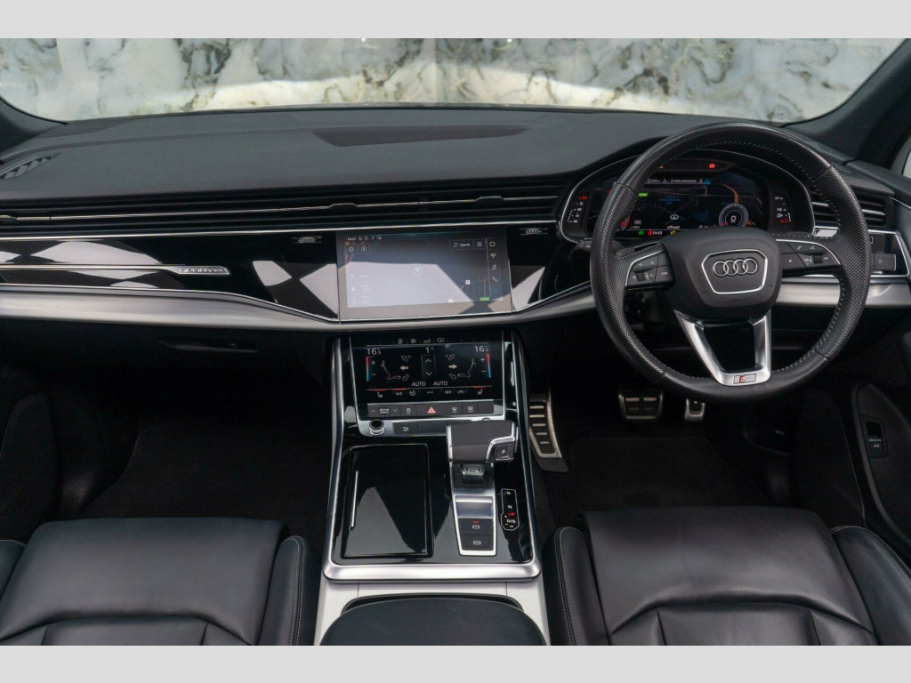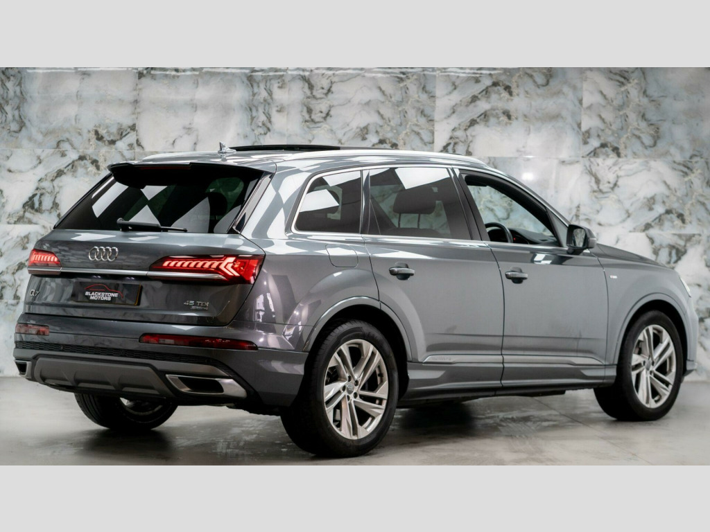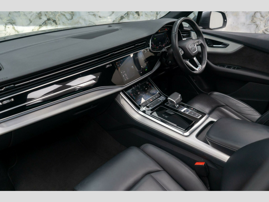 This Audi Q7 is finished in Daytona Grey metallic paintwork with Black leather interior. It benefits from a FULL Audi/specialist service history and it will also be accompanied with a 6 month warranty.The high specification of this Audi includes:- Panoramic/Sliding Sunroof- Electric Memory Seats- Audi Virtual Cockpit- Electric Folding/Heated Mirrors- Reversing Camera- Lane Hold Assist- Leather Heated Seats8.9% Low rate finance packages available, HP available, LP available, ****Apply for finance on our website for an instant decision****, 5 days driveway insurance available.Take advantage of our full bespoke in house detailing package to suit your needs, inclusive of Paint Protection Film (XPEL), Paint Correction, Nano Ceramic Coating, Trackers, Immobilisers and Bodykits. All of our work can be found on our social media Instagram blackstonemotorsuk & limitlessdetailinguk noramic glass sunroof, 20in alloy wheels - 5-spoke turbine design aluminium, 7 seats, ami - audi music interface, adaptive air suspension, airbags - driver - front passenger - front side - curtain, aluminium roof rails, aluminium window trims, anti theft locking wheel bolts, anti-theft alarm, audi connect (3 year subscription from new), audi connect safety and service, audi drive select, audi hill hold assist, audi matrix led headlights with dynamic front and rear indicators, audi parking system plus, audi phone box with wireless charging, audi pre-sense front, audi smartphone interface, audi sound system, audi virtual cockpit, auto dimming and frameless rear view mirror, body coloured door mirrors, camera-based traffic sign recognition, cloth headlining in black, comfort front centre armrest, cruise control with speed limiter, dab digital radio, door mirrors - heated - electrically adjustable - folding and auto dimming with memory function, dual-zone electronic climate control, esc - electronic stabilisation control inc abs - asr and edl, electric windows - front and rear, electromechanical parking brake, electromechanical power steering - speed-sensitive provides a precise steering feel at high speeds and excellent assistance when parking., extended pedestrian protection measures, first aid kit and warning triangle, front sun visors with illuminated vanity mirrors, front and rear floor mats, heated front seats, illuminated door sill trims with s logo, inlays - darkened matt brushed aluminium, keyless go with remote central locking, led daytime running lights, led interior ambient lighting pack, led rear lights, lane departure warning, luggage compartment cover, luggage compartment sill protection in stainless steel, mmi navigation plus including mmi touch, natural voice recognition, pedals in stainless steel, power operated tailgate, privacy glass, rear view camera, s line badges on the front wings, s line bumpers in full body-colour paint finish, s line roof spoiler, s line styling side ventilation grille and side skirts, seat belt monitoring, steering wheel - 3-spoke s line multi-function leather with paddle-shift, tool kit, tyre pressure loss indicator, tyre repair kit, windshield with heat insulated glass