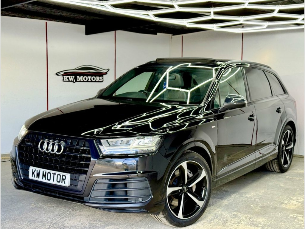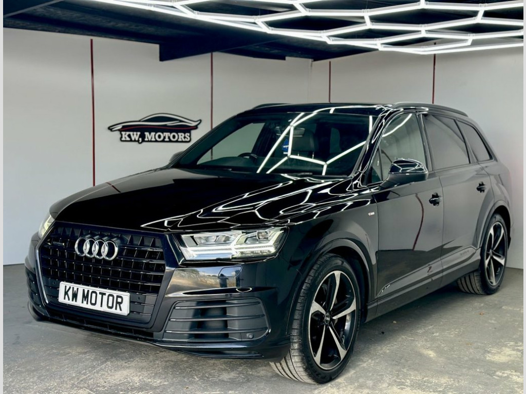 JUST ARRIVED AUDI Q7 3.0 TDI V6 50 BLACK EDITION SUV QUATTRO EURO 6, HIGHLY POPULAR&ATTRACTIVE NEW SHAPE FACELIFT MODEL AUDI Q7 3.0 50 TDI QUATTRO BLACK EDITION IN THE MOST DESIRABLE COLOUR BLACK, TOP SPEC HUGE EXTRAS INCLUDE PANORAMIC ROOF WITH BLACK EDITION EXTERIOR STYLING PLUS 21 INCH UNMARKED ALLOYS, 1 FORMER KEEPER, LAST OWNER HAD THE VEHICLE SINCE 2020, 2 KEYS, FULL AUDI MAIN DEALER SERVICE HISTORY 5 SERVICES IN TOTAL LAST SERVICE AT 78K, NEXT MOT DUE 06/26, PRE DELIVERY INSPECTION PRIOR TO SALE FOR TOTAL PEACE OF MIND, EXCEPTIONAL VALUE FOR MONEY FOR A NEW SHAPE DRIVES AND SOUNDS LIKE NEW UPGRADES INCLUDE LATEST VIRTUAL COCKPIT DASH, APPLE CARPLAY, DYNAMIC REAR LIGHTS, FULL LEATHER S-LINE SPORT SEATS HEATED FRONT, DAB RADIO, BT AUDIO, ELECTRIC BOOT CLOSE, ELECTRIC FOLDING MIRRORS, SAT NAV, REV CAM AND MUCH MORE, HIGHLY POPULAR AND DESIRABLE WELL KNOWN FOR THERE SAFTY AND RELIABILITY STUNNING LOOKS SUPERB PERFORMANCE, VERY PRACTICAL AND ECONOMICAL IDEAL FAMILY 7 SEATER DRIVE AROUND IN PURE COMFORT AND STYLE, Rear Side Airbags, Deluxe Four-Zone Automatic Climate Contr, Comfort and Sound Package, Driver and Front Passenger Memory Functi, Trailer Pack, Extended LED Interior Lighting Package -, Full Leather Package, Power Door Closure, Steering Wheel - 3-Spoke Leather-Multi-F, Upper Inlays in High-gloss Black with Lo, Removable Net Partition, Valcona Leather - S Sport Seats Plus - R, Orca Black, Matrix LED Headlights with LED Rear Ligh, Audi Exclusive Leather Trim Package 2 in, Running Boards, 22in Alloy Wheels - 5-Arm-trapezoid Desi, 21in Alloy Wheels - 5-Spoke Blade Design, 6-Airbag System, 7 Seats, Adaptive Air Sport Suspension, Anti Theft Locking Wheel Bolts, Anti-Theft Alarm, Audi Connect Infot