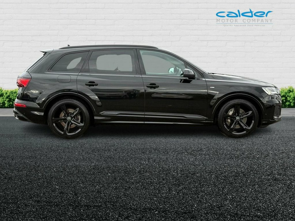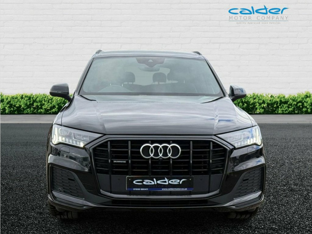 Amazing value for Q7 Black Edition Finished in Mythos Black Metallic with the Full Black Styling pack and Gloss Black 21" 5 Spoke Alloy Wheels and Finished with Black Valcona Upholstery and Piano Black Finishers. Lovely spec Q7 with the all the right extras including the Comfort and Sound Pack which includes 360 Degree Cameras, Parking Assistant, Bang and Oulfsen Sound System, Wireless Charging Dock, Keyless Entry and much more, Heated Seats, Satellite Navigation, DAB Radio, Bluetooth with Audio Streaming and Apple and Android Car Play and so much more. This car has Two Keys and Service History. 21in Alloy Wheels - 9.5J 5-Spoke-Blade D, 7 Seats, Adaptive Air Sport Suspension, Airbags - Driver - Front Passenger - Fro, AMI - Audi Music Interface, Anti-Theft Alarm, Audi Connect (3 Year Subscription From N, Audi Connect Safety and Service - e-call, Audi Connect with Amazon Alexa Integrati, Audi Drive Select, Audi Hill Hold Assist, Audi Parking System Plus, Audi Pre-Sense Front, Audi Smartphone Interface, Audi Sound System, Audi Virtual Cockpit, Auto Dimming and Frameless Rear View Mir, Black Roof Rails, Bluetooth Interface, Camera-Based Traffic Sign Recognition, Cloth Headlining in Black, Comfort and Sound Package, Comfort Front Centre Armrest, Cruise Control with Speed Limiter, DAB Dig