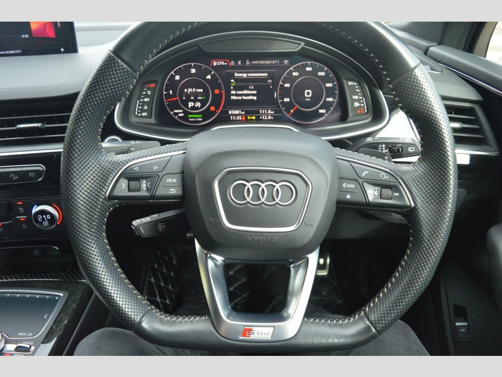 At MOD Autos we have 2 former keeper seven seater Audi Q7 with a mileage of 66,000! The Audi boasts a 3.0 litre engine with a four-wheel drive system. The vehicle is Euro 6 compliant making it ULEZ friendly. The vehicle comes with Audi parking plus with front and rear sensors with electronic adjustable seats and has LED headlights. The Q7 TDI V6 Black Edition excels with its impressive acceleration, reaching 0-62mph in just 6.3 seconds! The vehicle has been serviced 4 times from main dealer with the last service from main dealer at 64,962 miles! The vehicle also has Audi Smartphone feature which has Android Auto play and Apple Car Play. The vehicle comes with one year national warranty with the motoring organisation. 21in Alloy Wheels - 5-Spoke Blade Design, 6-Airbag System, 7 Seats, Adaptive Air Sport Suspension, Anti Theft Locking Wheel Bolts, Anti-Theft Alarm, Audi Connect Infotainment Services - 36 , Audi Connect Safety and Service, Audi Drive Select, Audi Hill Hold Assist, Audi Parking System Plus, Audi Phone Box with Wireless Charging, Audi Pre-Sense City, Audi Smartphone Interface, Audi Sound System, Audi Virtual Cockpit, Auto-Dimming Rear-View Mirror, Bluetooth Interface, Cloth Headlining in Black, Colour Drivers Information System with 7, Cruise Control with Speed Limiter, Door Mirrors - Heated-Electrically Adjus, Dual-Zone Electronic Climate Control, ESC - Electronic Stabilisation Control i, El