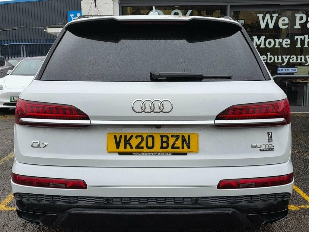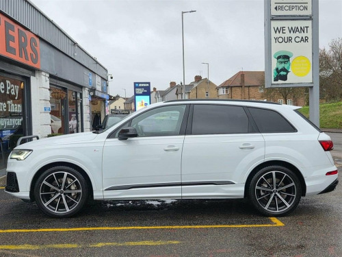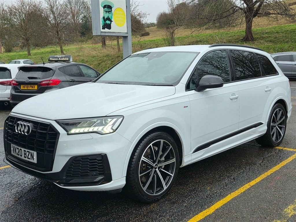 Audi Q7 TDI V6 Black Edition with full service history (Audi Service in March 2022 on 16,640, independent services carried out in July 23 on 28,030, June 24 at 35,396, May 25 at 43,811 and Oct 25 at 46,465) Currently the car stands at just 46,563 miles on it's clock. Four wheel drive system, DAB, Bluetooth, Seven seats, Black Edition heated with front seats for comfort, advanced Audi Matrix LED headlights with dynamic indicators, Audi Smartphone Interface with Android Auto and Apple CarPlay, rear view camera and Audi Parking System Plus, with both front and rear sensors. This model also benefits from a low insurance group. Extended Warranty Available for as little as £699 for 12 Months* Finance Offered - any credit history considered** Part Exchange Welcome Available for Nationwide Delivery (charged 1.70p per mile) *Warranty prices based on car make, model, CC, age **subject to acceptance 21in Alloy Wheels - 9.5J 10-Spoke-Star S, 7 Seats, AMI - Audi Music Interface, Adaptive Air Sport Suspension, Airbags - Driver - Front Passenger - Fro, Anti-Theft Alarm, Anti-Theft Wheel Bolts and Wheel Looseni, Audi Connect (3 Year Subscription From N, Audi Connect Safety and Service - e-call, Audi Drive Select, Audi Hill Hold Assist, Audi Matrix LED Headlights with Dynamic , Audi Parking System Plus, Audi Phone Box with Wireless Charging, Audi Pre-Sense Front, Audi Smartphone Interface, Audi Sound System, Audi Virtual Cockpit, Auto Dimming and Frameless Rear View Mir, Black Roof Rails, Camera-Based Traffic Sign Recognition, Cloth Headlining in Black, Comfort Front Centre Armrest, Cruise Co