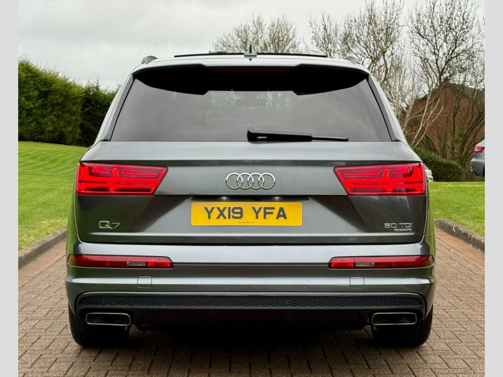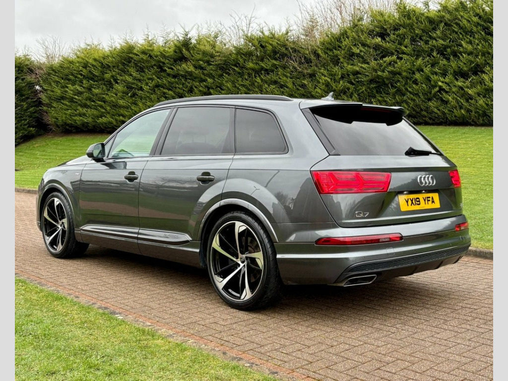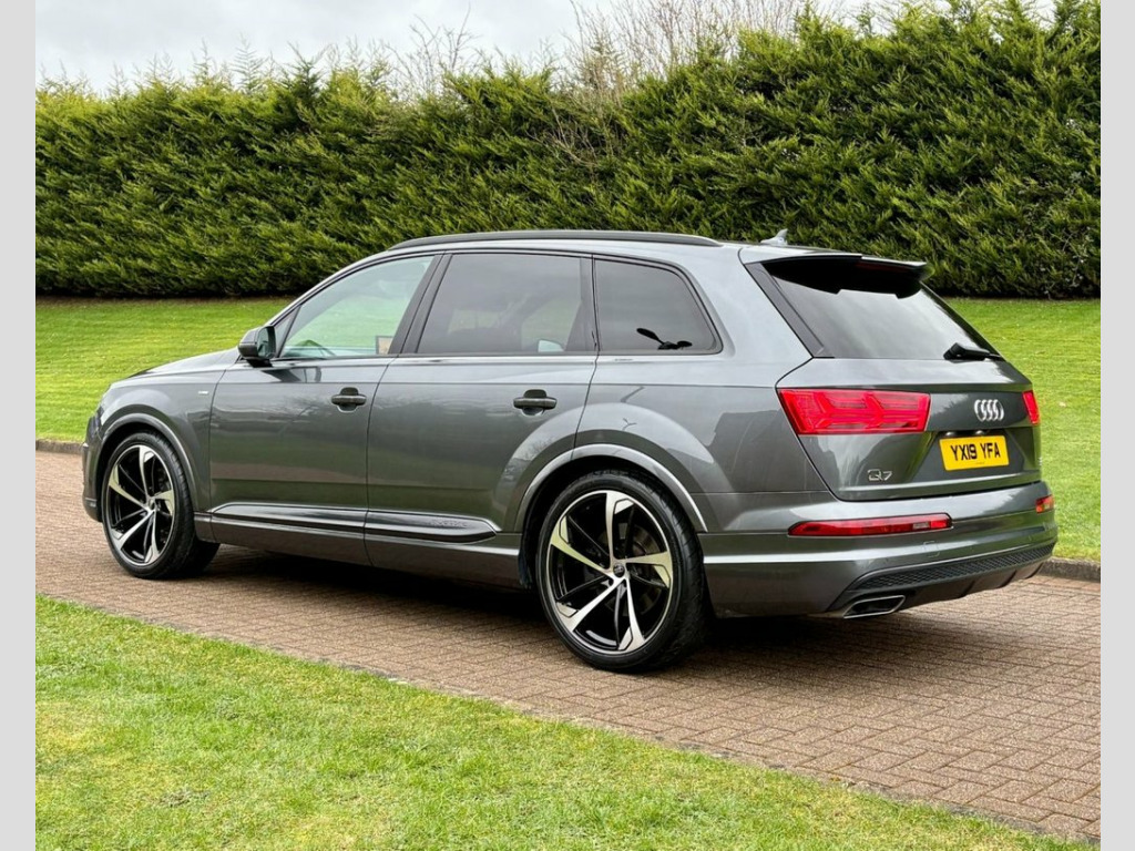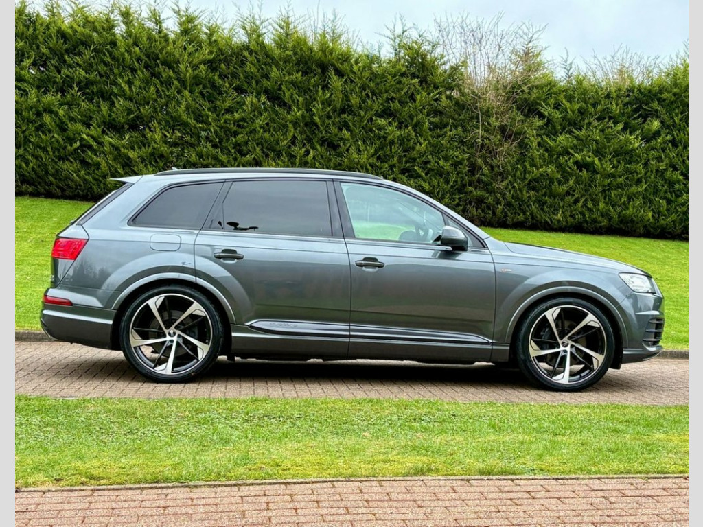 May 2019 Audi Q7 50TDI S-Line Black Edition Quattro Auto in Daytona Grey. Full Service History. MOT'd to May 2026. Loaded with spec including Full Leather Interior, Tilt & Slide Panoramic Glass Roof, Factory Black Pack, Virtual Cockpit, Adaptive Air Suspension, Heated Seats, Electric Seats, Navigation System, Bluetooth, Reverse Parking Camera, DAB Radio, LED Daytime Running Lights, Black Pack, Privacy Glass, Cruise Control, Dual Climate Control etc. Fitted with Brand New 22" Alloys & Tyres (Optional Extra £1395) FINANCE AVAILABLE AT KEEN RATES!! Viewing by Appointment Only! 21in Alloy Wheels - 5-Spoke Blade Design, 6-Airbag System, 7 Seats, Adaptive Air Sport Suspension, Anti Theft Locking Wheel Bolts, Anti-Theft Alarm, Audi Connect Infotainment Services - 36 , Audi Connect Safety and Service, Audi Drive Select, Audi Hill Hold Assist, Audi Parking System Plus, Audi Phone Box with Wireless Charging, Audi Pre-Sense City, Audi Smartphone Interface, Audi Sound System, Audi Virtual Cockpit, Auto-Dimming Rear-View Mirror, Bluetooth Interface, Cloth Headlining in Black, Colour Drivers Information System with 7, Cruise Control with Speed Limiter, Door Mirrors - Heated-Electrically Adjus, Dual-Zone Electronic Climate Control, Electric Windows - Front and Rear, Electrica