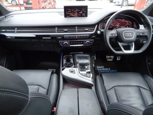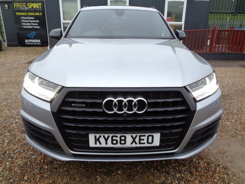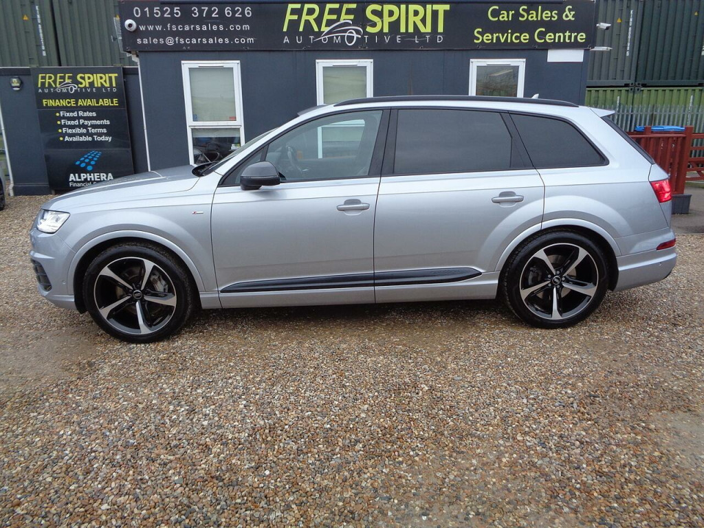 A Stunning Q7 S-Line Black Edition with Full Audi History (See Pictures) & Superb Specification, Upgrades include 3-Spoke Flat Bottomed Multifunction Sports Steering Wheel with Paddles, Deluxe 4-Zone Auto Climate Control, Digital TV Reception, Heated Outer Rear Second Row Seats, Rear Manual Sunblinds, LED Interior Ambient Lighting, Apple/Android Car Play, Park Assistance pack - Park Assist/ Audi Pre-Sense Rear/ 360 Degree Rear Cam/ Audi Side Assist, Soft Close Automatic Doors, S-Line Pack, Further Specification includes Satellite Navigation, Panoramic Sunroof, Front & Rear Parking Sensors, Bluetooth Phone, Bluetooth Audio, DAB Radio, Electric Power Fold Heated Mirrors, Electric Windows, Electric Tailgate, Electric Memory Front Seats, Heated Seats, 21'' 5-Spoke Blade Alloys in Anthracite Black, Keyless Start, Front & Rear Armrest…………………. See Below For Further Specification................. The additional specification details below are provided by Autotrader not by Free Spirit. They are a general guide for the most recent model of this vehicle but may not be precisely correct for this actual vehicle so please don’t rely on them. We will happily assist you in carefully checking that this vehicle’s specification is in line with your requirements.Free Spirit Automotive have been trading since 2004. We fund cars with BMW Alphera Finance & have access to multiple lenders offering different lending criteria to accommodate all customer credit scores. All vehicles are fully Health Checked in our purpose-built workshop prior to delivery & are Serviced & MOT’d as required. Every vehicle comes with a Warranty as standard. We stock between 70-100 cars and have more vehicles stocked than advertised. Part Exchange welcome. We have sold & delivered over 10,000 cars since we opened in 2004.. Audi Connect Infotainment Services - 36 Month Trial, Audi Connect Safety and Service, Audi Phone Box with Wireless Charging, Audi Smartphone Interface, Audi Sound System, Bluetooth Interface, MMI Navigation Plus including MMI Touch, MMI Radio Plus and DAB, Audi Drive Select, Audi Parking System Plus, Colour Drivers Information System with 7in High-Resolution TFT Screen, Cruise Control with Speed Limiter, Rear View Camera, Tyre Pressure Loss Indicator, Voice Control System, 21in Alloy Wheels - 5-Spoke Blade Design Anthracite Black-Polished-Gloss Turned Finish, Anti Theft Locking Wheel Bolts, Door Mirrors - Heated-Electrically Adjustable-Folding with Memory Function, Electric Windows - Front and Rear, Panoramic Glass Sunroof, Privacy Glass, Titanium Black Door Mirrors, Titanium Black Styling Pack with Black Roof Rails, Tyre Repair Kit, High-Beam Assist, LED Headlights with LED Rear Lights and Dynamic Rear Indicators and High-Beam Assist, Light and Rain Sensor, 7 Seats, Audi Virtual Cockpit, Auto-Dimming Rear-View Mirror, Cloth Headlining in Black, Dual-Zone Electronic Climate Control, Electrically Adjustable Front Seats with 4-Way Lumbar Support and Driver Memory Function, Front and Rear Floor Mats, Front Centre Armrest - Adjustable, Heated Front Seats, Interior Light Package, Luggage Compartment Sill Protection in Stainless Steel, Pedals in Stainless Steel, Power Operated Tailgate, Steering Wheel - 3-Spoke Leather-Multi-function-Flat Bottomed-Sports-Shift Paddles, Tool Kit, Upper Inlays in High-gloss Black with Lower Inlays in Oak Grey, Adaptive Air Sport Suspension, Power Steering - Servotronic, 6-Airbag System, Anti-Theft Alarm, Audi Hill Hold Assist, Audi Pre-Sense City, Electromechanical Parking Brake, ESC - Electronic Stabilisation Control inc ABS - EBD - ASR - EDL, First Aid Kit and Warning Triangle, Hill Descent Control, ISOFIX Child Seat Mounting, Keyless Go with Remote Central Locking, Seat Belt Monitoring, 21in Alloy Wheels - 5-Twin-Spoke Design Audi Sport - Titanium Look with Gloss Turned Finish, Audi Exclusive Leather Trim Package 1 in Valcona Leather, Deluxe Four-Zone Automatic Climate Control, Driver and Front Passenger Memory Function for the Electrically Adjustable Front Seats, Extended LED Interior Lighting Package - Multi-Coloured, Floret Silver, Heated Outer Rear Seats for the Second Row, Inlays - Audi Exclusive - Piano Finish Black, Matrix LED Headlights with LED Rear Lights and Dynamic Rear Indicators, Parking Assistance Pack, Steering Wheel - 3-Spoke Leather-Multi-Function-Heated-Sports-Shift Paddles, Sun Blinds - Manual for Rear and Rear Door Windows, TV Reception - Digital, Valcona Leather - S Sport Seats Plus - Rotor Grey with Silver Stitching.