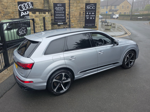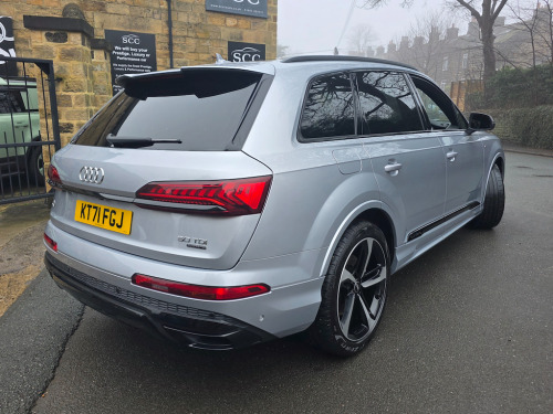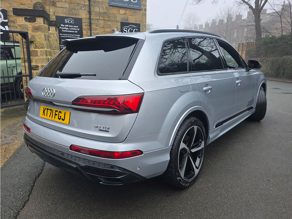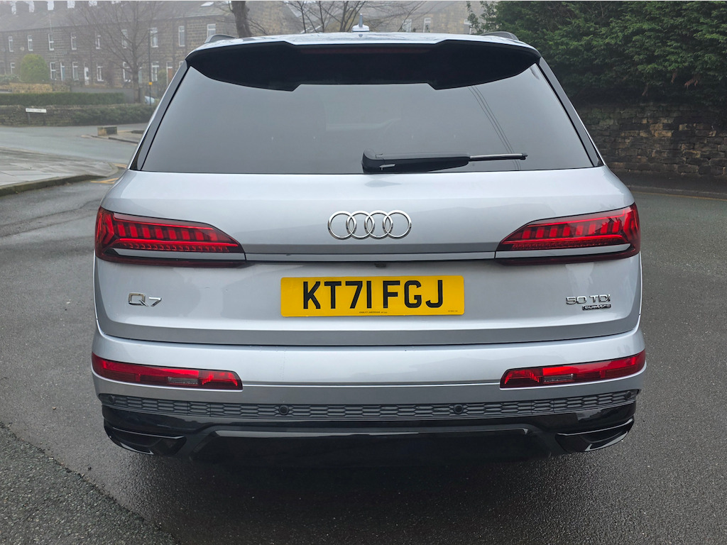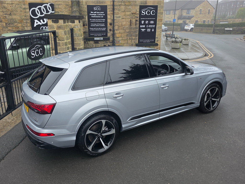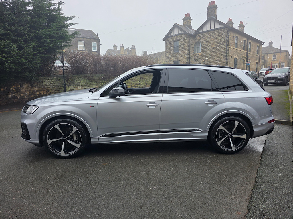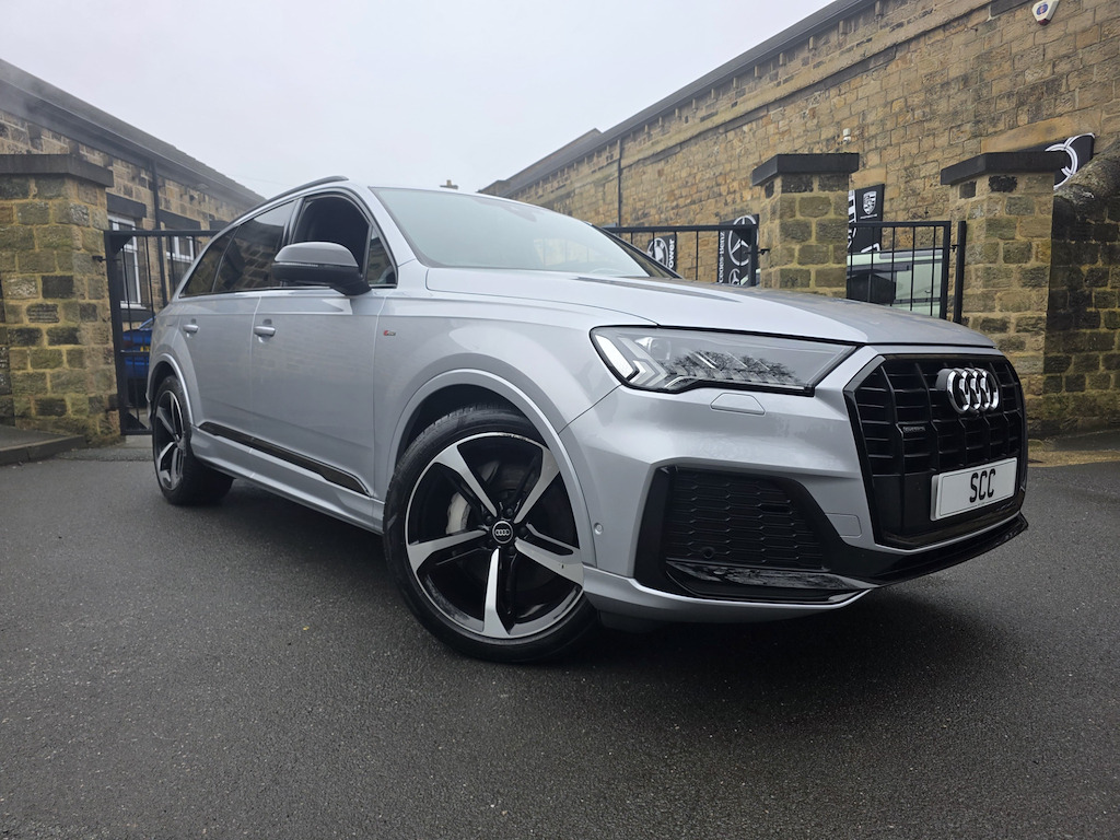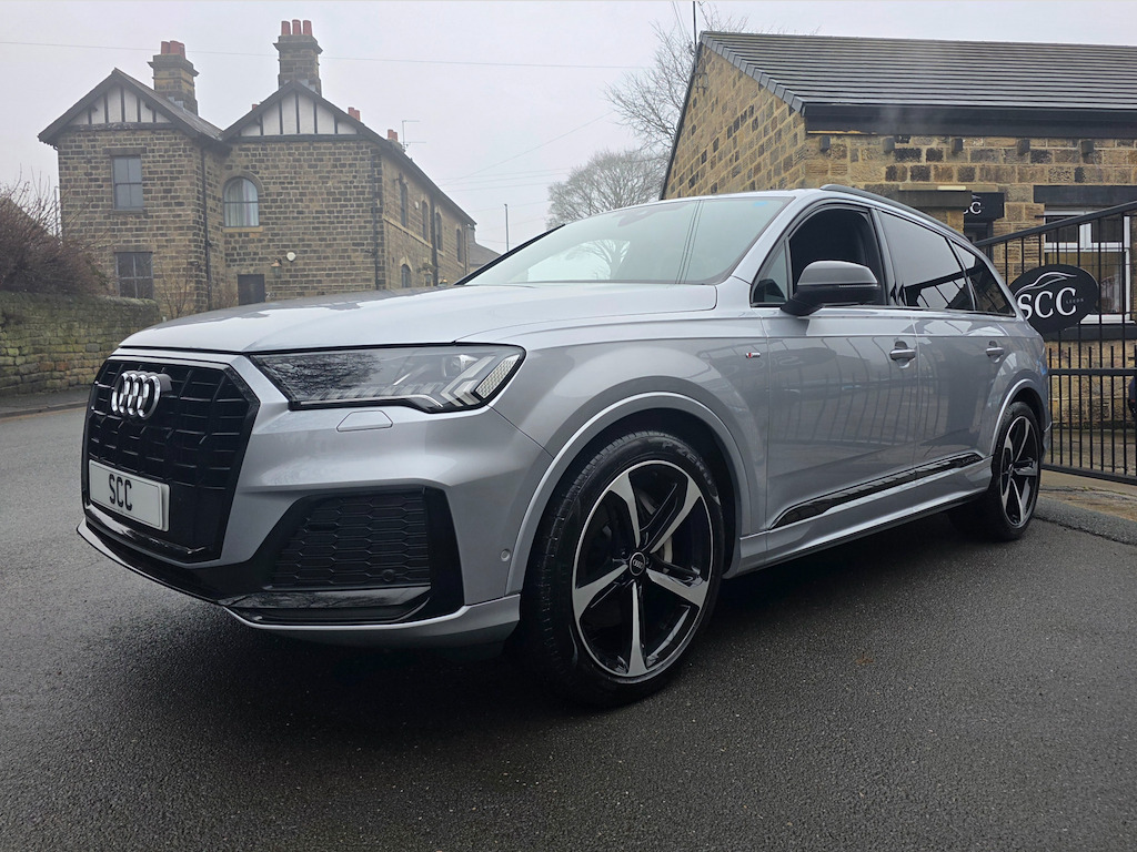 2021 (71) Audi Q7 3.0 TDI Quattro! Comfort & Sound Package Technology Package Black Styling Package £42,995 | 1 Owner | Full Service History Last serviced 08/01/2026 - Oil & Pollen filters, Oil change and MOT Next due in 9k miles or 01.2027 Mot due 22.01.2027 Rare Floret Silver metallic colour, Black Edition styling package, 21-inch Audi Sport alloys, Adaptive Air Sport Suspension, Tech Pack, B&O 19-speaker sound system, 4-zone climate control, 7 seats, Ambient Lighting, 360° camera. Freshly serviced January 2026 with a fresh MOT. Facelifted 2021 (71-reg) Audi Q7, equipped with the Comfort and Sound Package to elevate every journey. With just one owner from new and a full service history, this SUV has been meticulously maintained and presents in outstanding pristine condition. Interior & Comfort Valcona Leather sports seats in black, combining supreme comfort with refined elegance. The Comfort & Sound Package delivers an immersive audio experience, making every drive a pleasure. Exterior & Performance Command attention with 21-inch alloy wheels in 10-Spoke-Star design, finished in black with a gloss-turned effect, perfectly complementing the SUV’s sleek and sporty silhouette. The Adaptive Air Sport Suspension ensures a smooth, controlled ride, adapting seamlessly to varying road conditions. Technology & Safety Audi Drive Select – customise your driving style from comfort to dynamic Multiple airbags, including front, side, and curtain for complete peace of mind This Audi Q7 combines sporty presence, refined luxury, and advanced technology, making it the perfect choice for those who demand style, comfort, and performance in a practical SUV. Finance & Purchase Options We can provide tailor-made finance packages to suit all budgets, with part-exchanges welcomed and nationwide delivery available. Contact us today to arrange a test drive or discussion – 01943 884551 21in Alloy Wheels - 9.5J 10-Spoke-Star Style Design in Black with Gloss turned Finish - Audi Sport,7 Seats,AMI - Audi Music Interface,Adaptive Air Sport Suspension,Airbags - Driver - Front Passenger - Front Side - Curtain,Anti-Theft Alarm,Anti-Theft Wheel Bolts and Wheel Loosening Warning,Audi Connect (3 Year Subscription From New),Audi Connect Safety and Service - e-call,Audi Connect with Amazon Alexa Integration,Audi Drive Select,Audi Hill Hold Assist,Audi Parking System Plus,Audi Pre-Sense Front,Audi Smartphone Interface,Audi Sound System,Audi Virtual Cockpit,Auto Dimming and Frameless Rear View Mirror,Black Roof Rails,Bluetooth Interface,Camera-Based Traffic Sign Recognition,Cloth Headlining in Black,Comfort Front Centre Armrest,Cruise Control with Speed Limiter,DAB Digital Radio,Deluxe Four-Zone Automatic Climate Control,Door Mirrors - Heated - Electrically Adjustable - Folding and Auto Dimming with Memory Function,ESC - Electronic Stabilisation Control inc ABS - ASR and EDL,Electric Windows - Front and Rear,Electromechanical Parking Brake,Electromechanical Power Steering,Extended Pedestrian Protection Measures,First Aid Kit and Warning Triangle,Flat-Bottomed 3-Spoke Leather Multi-Function Sports Steering Wheel with Shift Paddles,Front Sun Visors with Illuminated Vanity Mirrors,Front and Rear Floor Mats,Heated Front Seats,High Beam Assist,Illuminated Door Sill Trims with S Logo,Inlays - Polished Oak with Grey Finish,Keyless Go with Remote Central Locking,LED Daytime Running Lights,LED Headlights,LED Interior Ambient Lighting Pack,LED Rear Lights,Lane Departure Warning,Luggage Compartment Cover,Luggage Compartment Sill Protection in Stainless Steel,MMI Navigation Plus with MMI Touch,Natural Voice Recognition,Pedals in Stainless Steel,Power Operated Tailgate,Privacy Glass,Rear View Camera,S Line Roof Spoiler,Seat Belt Monitoring,Titanium Black Door Mirrors,Titanium Black Styling Pack,Tool Kit,Tyre Pressure Loss Indicator,Tyre Repair Kit,Windshield with Heat Insulated Glass,Floret Silver,Valcona Leather - Sports Seats with S Embossed Logo - Black with Grey Stitching,Comfort and Sound Package