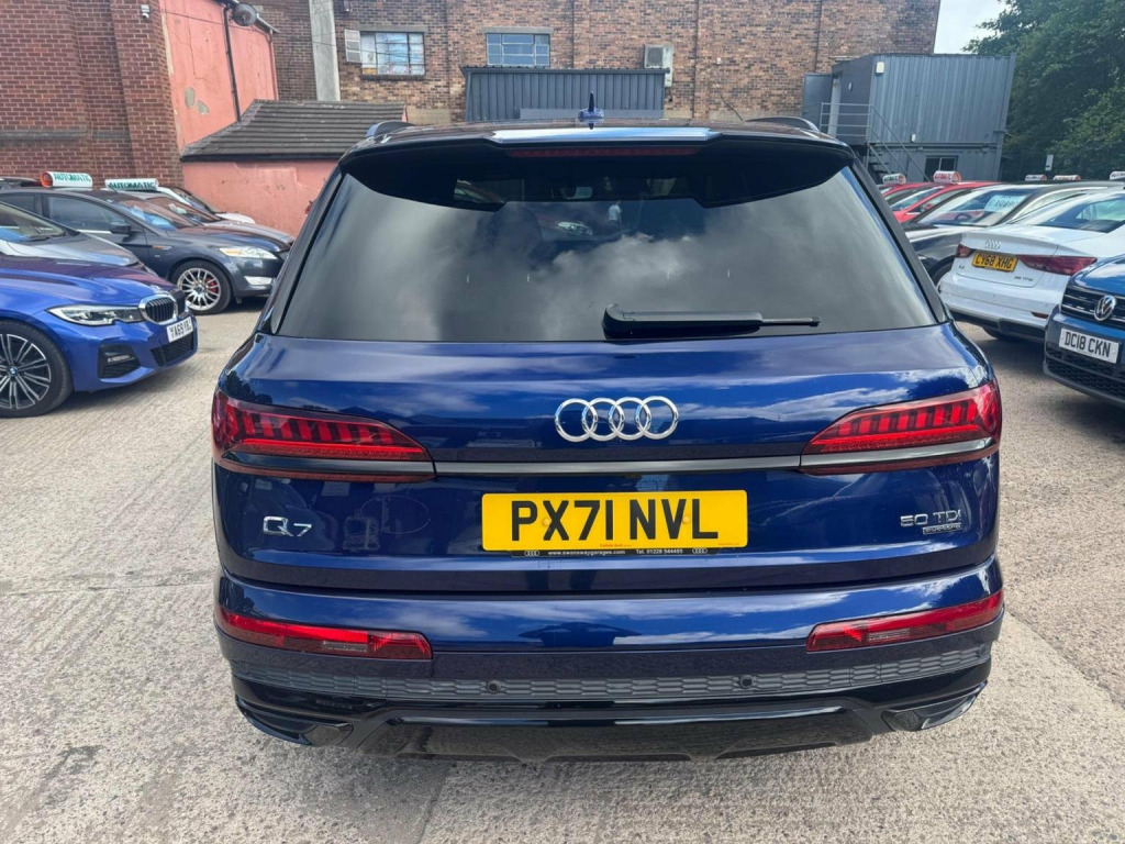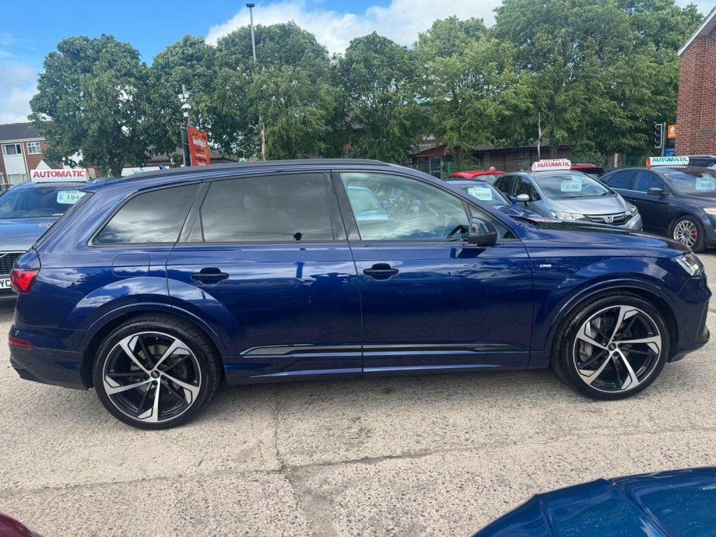We are pleased to present a remarkable Audi Q7 3.0 TDI V6 50 Black Edition Tiptronic quattro Euro 6 (s/s) 5dr. 1 FORMER KEEPER FROM NEW, This vehicle comes with a comprehensive FULL AUDI DEALERSHIP-SERVICE HISTORY, 5 service stamps, It also offers a 6 months nationwide warranty and BREAK DOWN COVER. MOT valid until, 28 May 2026, with no advisories. The car is equipped with 4 GOOD TYRES and boasts top-of-the-line features, such as FULL LEATHER MEMORY HEATED SEATS AND big screen SAT NAV, 360 camera crush sensors media Bluetooth, USB audio, cruise control, and much more. It runs and drives like new and is in good condition both inside and out, The car is a beautiful BLUE colour and comes with a clear HPI report and warranted mileage. The full VOSA history, service records, and are all included. Rest assured, all our cars are thoroughly inspected and fully valeted. We welcome inspections, test drives, and part exchanges. We accept all major credit, debit, and online payments, and we offer good rate FINANCE options. Nationwide delivery is available. For more information, please visit our website at www.motorvillageltd.co.uk