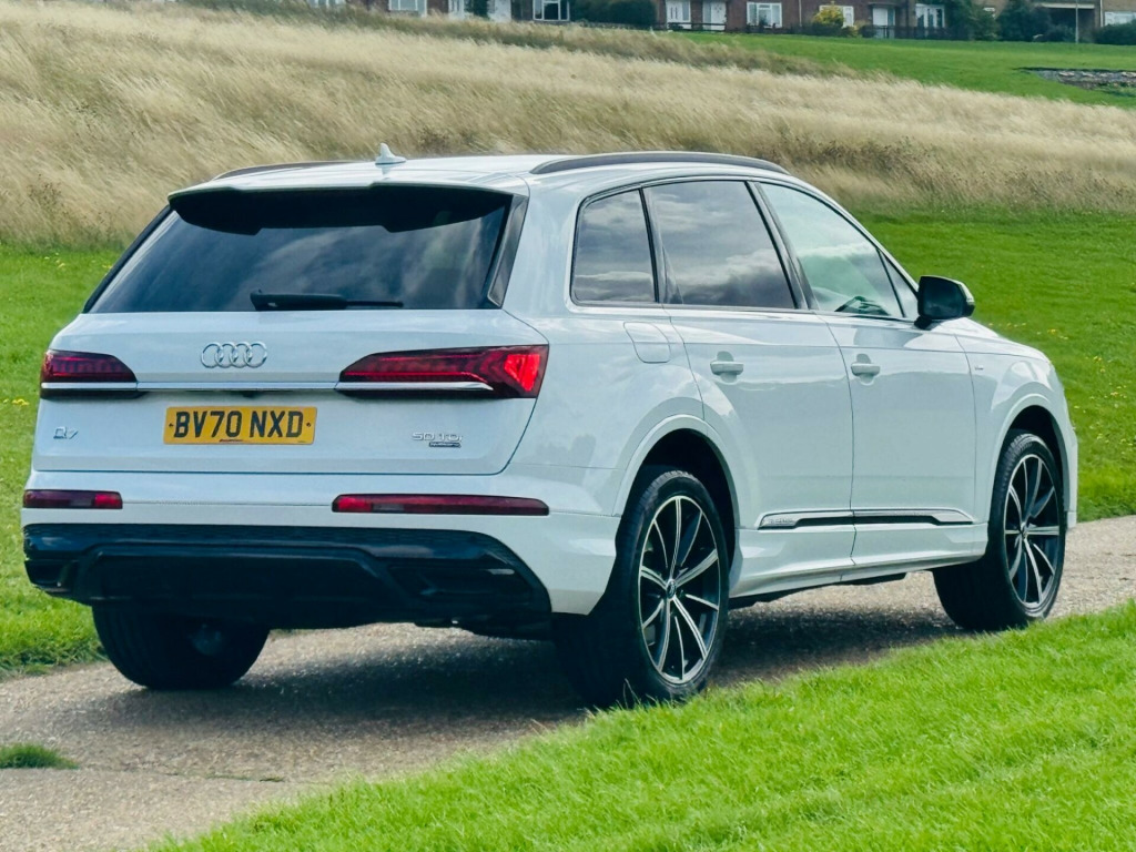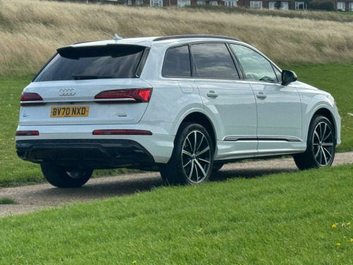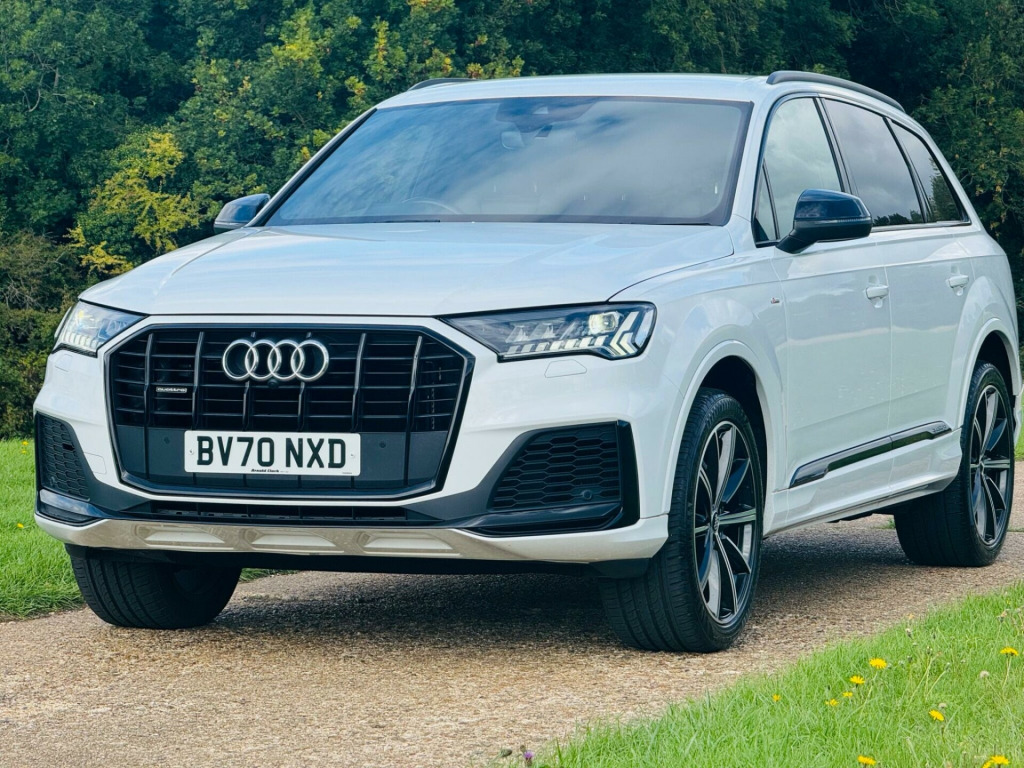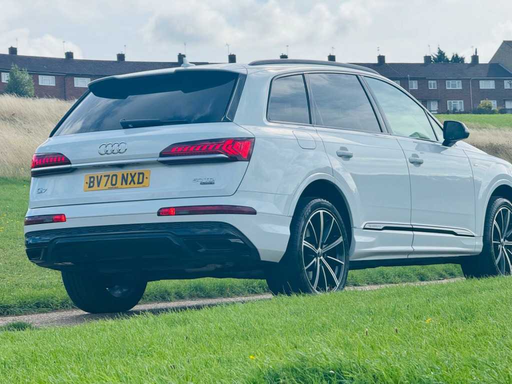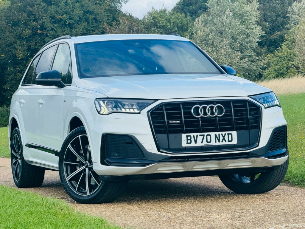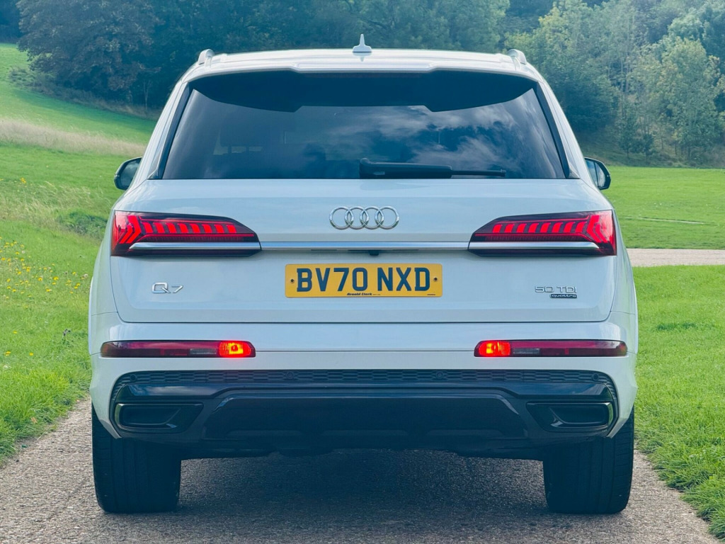 Simply a amazing Q7 beautiful spec amazing condition Part ex welcome This 2020 Audi Q7 TDI V6 Black Edition offers exceptional value with its very low mileage of just 35,000 miles. As a Euro 6 compliant vehicle, it features a powerful 3.0L Diesel engine paired with Audi's renowned Four Wheel Drive system, ensuring confident performance in all conditions. This seven seater Black Edition boasts a range of premium features, including striking Audi Matrix LED Headlights with dynamic front and rear indicators, and the convenience of the Audi Phone Box with wireless charging. Comfort is enhanced by heated front seats and a deluxe four zone automatic climate control system, while the Audi Parking System Plus with front and rear sensors makes manoeuvring effortless.The Q7 TDI V6 Black Edition is designed for practicality and performance, offering a substantial 3500 kg towing weight and impressive acceleration from 0 to 62mph in just 6.5 seconds. Its large boot space provides ample room for luggage or shopping, making it an ideal choice for families or those needing versatile cargo capacity. Furthermore, its placement in a low insurance group indicates that running costs are kept manageable, a significant advantage over many comparable vehicles. in alloy wheels - 10-spoke star style design audi sport in black with gloss-turned finish, 7 seats, ami - audi music interface, adaptive air sport suspension, airbags - driver - front passenger - front side - curtain, anti theft locking wheel bolts, anti-theft alarm, audi connect (3 year subscription from new), audi connect safety and service, audi drive select, audi hill hold assist, audi matrix led headlights with dynamic front and rear indicators, audi parking system plus, audi phone box with wireless charging, audi pre-sense front, audi smartphone interface, audi sound system, audi virtual cockpit, auto dimming and frameless rear view mirror, black roof rails, camera-based traffic sign recognition, cloth headlining in black, comfort front centre armrest, cruise control with speed limiter, dab digital radio, deluxe four-zone automatic climate control, door mirrors - heated - electrically adjustable - folding and auto dimming with memory function, esc - electronic stabilisation control inc abs - asr and edl, electric windows - front and rear, electromechanical parking brake, electromechanical power steering - speed-sensitive provides a precise steering feel at high speeds and excellent assistance when parking., extended pedestrian protection measures, first aid kit and warning triangle, front sun visors with illuminated vanity mirrors, front and rear floor mats, heated front seats, illuminated door sill trims with s logo, inlays - polished oak with grey finish, keyless go with remote central locking, led daytime running lights, led interior ambient lighting pack, led rear lights, lane departure warning, luggage compartment cover, luggage compartment sill protection in stainless steel, mmi navigation plus including mmi touch, natural voice recognition, pedals in stainless steel, power operated tailgate, privacy glass, rear view camera, s line badges on the front wings, s line roof spoiler, seat belt monitoring, steering wheel - 3-spoke leather-multi-function-flat bottomed-sports-shift paddles, titanium black door mirrors, titanium black styling pack, tool kit, tyre pressure loss indicator, tyre repair kit, windshield with heat insulated glass, audi virtual cockpit plus, leather-alcantara - sport seats with s embossed logo - black with grey stitching