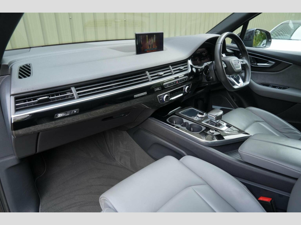 MATRIX LED LIGHTS - PARK ASSIST - GREY HIDE -Introducing the 2018 (68) Audi Q7 3.0 TDI V6 50 Black Edition, finished in Mythos Black Metallic with Black Valcona leather interior. Having covered just 40,000 miles and owned by a single previous keeper, this exceptional example is presented in immaculate condition throughout and embodies the perfect balance of power, elegance and technology. This vehicle benefits from a host of factory upgrades totalling £8,000 including the Parking Assistance Pack with blind spot monitoring, Comfort and Sound Pack and Front Sports Seats in Grey Valcona leather, ensuring luxury and convenience in equal measure. Audi Matrix LED headlights, Running Boards and Deluxe Four-Zone Climate Control elevate comfort and usability, while Driver and Passenger Memory Function and Heated, Electrically Adjustable, Folding and Auto-Dimming Mirrors further enhance everyday refinement. Inside, the cabin showcases Audis signature craftsmanship, featuring piano black gloss inlays, panoramic glass sunroof, heat and sound-insulating glass, and the Titanium Black styling package. The Audi Virtual Cockpit, MMI Navigation Plus with Touch and DVD, heated front sport seats, and power operated tailgate make every journey effortless. Safety is assured through Audi pre-sense city, while Servotronic steering and voice control provide convenience and control. Completing its confident stance are 21 5 arm turbine design alloy wheels, giving the Q7 a distinctive and athletic character. Combining exceptional comfort, refined dynamics and cutting-edge innovation, this Q7 Black Edition represents the pinnacle of Audis design and engineering. A truly outstanding example, presented in one of Audis most desirable colour combinations and maintained to the highest standard, this Q7 offers an unrivalled blend of sophistication, performance and practicality. ****VIEWING STRICTLY BY APPOINTMENT ONLY - FOR FURTHER INFORMATION REGARDING THIS VEHICLE AND ANY OTHER PREMIUM MARQUE IN STOCK, PLEASE CALL SALES DIRECT. VEHICLE FINANCE SPECIALISTS OFFERING COMPETITIVE PACKAGES****