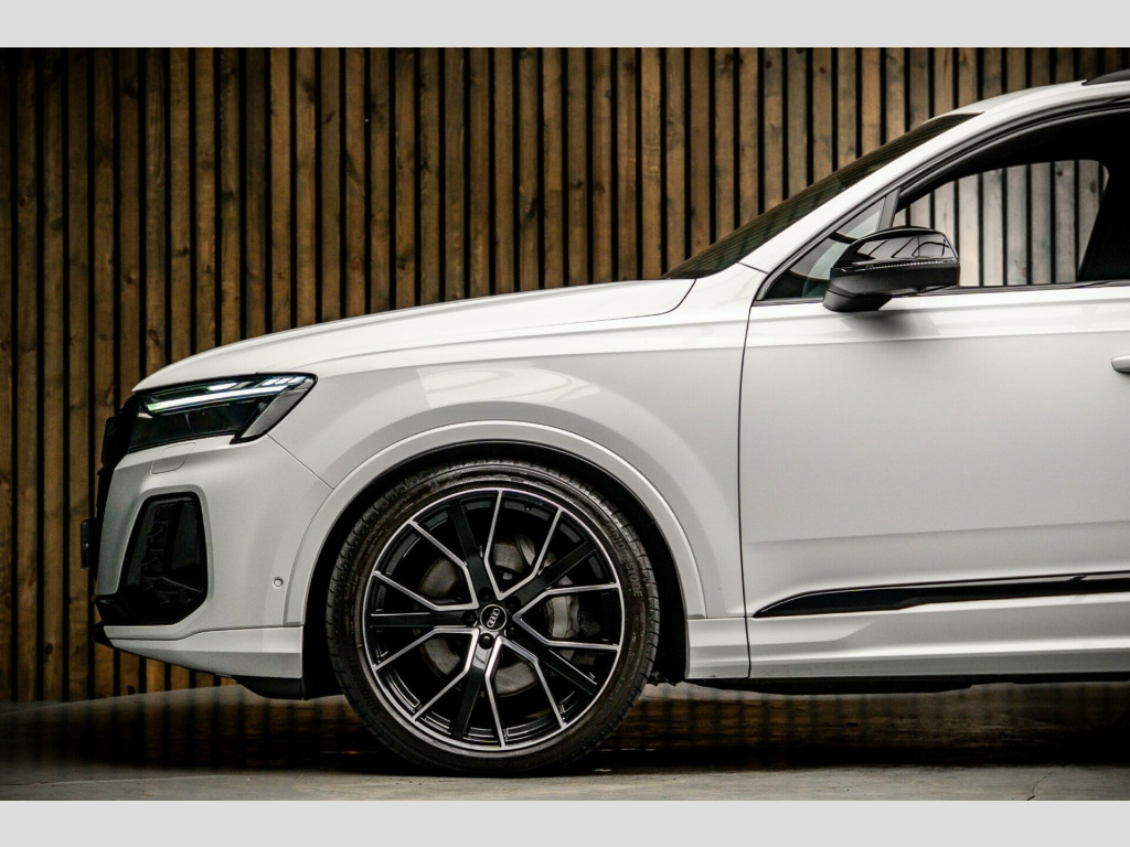 Boasting exceptionally low mileage for its age, this 2024 Audi Q7 TDI V6 Black Edition presents a remarkable opportunity. This four wheel drive, seven seater SUV is powered by a potent 3.0 litre diesel engine, meeting Euro 6 emission standards. With only one owner from new and a mere 8763 miles on the clock, it comes equipped with sophisticated Matrix LED headlights featuring dynamic indicators, a helpful rear view camera for effortless parking, and the convenience of Audi's Phone Box Light with wireless charging.Experience the impressive performance of this Q7, capable of accelerating from 0 to 62 miles per hour in just 6.1 seconds, a testament to its powerful engine and drivetrain. The Audi Smartphone Interface, compatible with both Android Auto and Apple CarPlay, keeps you connected on the go, while the electrically adjustable front seats, including a memory function for the driver's seat, ensure personalised comfort. Furthermore, the generous boot space offers ample room for all your luggage, and with a substantial towing weight of 3500 kg, this Q7 is as practical as it is refined, offering a superior driving experience compared to many similar vehicles.. 2 USB-C Ports with Charging Functionality in the Rear, 2-Zone Automatic Climate Control, 21in Alloy Wheels - 9.5J 5-Twin-Spoke Design in Silk Matt Grey Finish - Black Inserts, 3-Spoke Flat Bottomed Leather - Multifunction Sport Steering Wheel, 4-Way Lumbar Support for Front Seats, 7 Seats, Adaptive Air Sport Suspension, Airbags - Driver - Front Passenger - Front Side - Curtain, Anti-Theft Alarm with Tow-Away Protection, Anti-Theft Wheel Bolts and Wheel Loosening Warning, Audi Beam, Audi Connect (3 Year Subscription From New), Audi Connect Safety and Service - e-call, Audi Connect with Amazon Alexa Integration, Audi Drive Select, Audi Music Interface in the Rear, Audi Parking System Plus, Audi Phone Box Light with Wireless Charging, Audi Pre-Sense Front, Audi Smartphone Interface, Audi Sound System, Audi Virtual Cockpit, Auto Dimming and Frameless Rear View Mirror, Black Exhausts, Black Roof Rails, Black Styling Package Plus, Camera-Based Traffic Sign Recognition, Cloth Headlining in Black, Comfort Front Centre Armrest, Cruise Control with Speed Limiter, DAB Digital Radio, Door Mirrors - Anthracite Black, Door Mirrors - Heated - Electrically Adjustable - Folding and Auto Dimming with Memory Function, ESC - Electronic Stabilisation Control inc ABS - ASR and EDL, Electric Windows - Front and Rear, Electrically Adjustable Front Seats including Memory Function for Drivers Seat, Electromechanical Parking Brake, Electromechanical Power Steering, Extended Pedestrian Protection Measures, First Aid Kit and Warning Triangle, Front Sport Seats with S Embossed Logo, Front Sun Visors with Illuminated Vanity Mirrors, Front and Rear Floor Mats, Heated Front Seats, Hold Assist, ISOFIX Child Seat Mounting for Front Passenger, Illuminated Door Sill Trims with S Logo, Inlays - Polished Oak with Grey Finish, Keyless Go with Remote Central Locking, LED Daytime Running Lights, LED Interior Ambient Lighting Pack, LED Rear Lights Plus, Lane Departure Warning, Loading Edge Protection in Stainless Steel, Luggage Compartment Cover, Luggage Compartment Sill Protection in Stainless Steel, MMI Navigation Plus with MMI Touch, Matrix LED Headlights with Dynamic Front and Rear Indicators, Natural Voice Recognition, Operating Buttons in Matte Black, Pedals in Stainless Steel, Power Operated Tailgate, Privacy Glass, Quattro with Self-Locking Centre Differential, Rear View Camera, S Line Badges on the Front Wings, S Line Bumpers in Full Body-Colour Paint Finish, S Line Roof Spoiler, S Line Styling Side Ventilation Grille and Side Skirts, Seat Belt Monitoring, Tool Kit, Tyre Pressure Loss Indicator, Tyre Repair Kit, Windshield with Heat Insulated Glass, Technology Pack Pro, Panoramic Glass Sunroof, Park Assist package with remote park assist plus, Fuel Tank 85L, Pure White.