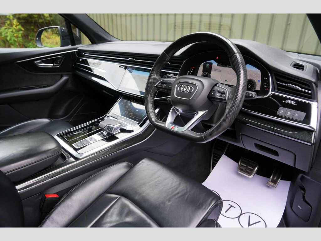 22 ALLOYS - COMFRT AND SOUND PACKAGE - Introducing a 2020 20 registered Audi Q7 3.0 TDi 50 Black Edition, boasting the distinguished Orca Black metallic exterior elegantly complemented by the opulent Black Valcona hide interior. With a mere 47,000 miles and having been cherished by one previous discerning owner since its inception, this remarkable vehicle stands as a testament to uncompromising excellence. Prepare to be enchanted by an array of meticulously selected options, each elevating the driving experience to unprecedented heights. Behold the expansive full glass panoramic sunroof while the commanding presence of the 22 Trapezoid Design Audi Sport alloy wheels captivates onlookers with its timeless elegance. Immerse yourself in an auditory symphony with the Sound and Comfort Pack, featuring the revered BOSE surround sound system, and navigate with confidence using the 360 degree surround view camera system with 3D overhead view and Park Assist Package Plus. The Tour Package ensures supreme long distance comfort and control, offering a suite of advanced driver assistance technologies including adaptive cruise control. Privacy and ambiance are assured with privacy glass and the LED interior lighting package, setting the stage for a journey of refined luxury. Indulge in technological prowess with features such as the Audi Virtual Cockpit display, Audi Phone Box with wireless charging facility, and Audi Smartphone Interface seamlessly integrated into the Audi Connect Navigation & Infotainment System with MMI Plus & Touch Response. Safety and convenience converge with features including the Audi Pre Sense Front, Lane Departure Warning System and Power Tailgate, ensuring peace of mind and effortless functionality at every turn. With virtually every option available, this Q7 is a remarkable example in a pristine condition. ****VIEWING STRICTLY BY APPOINTMENT ONLY - FOR FURTHER INFORMATION REGARDING THIS VEHICLE AND ANY OTHER PREMIUM MARQUE IN STOCK, PLEASE CALL SALES DIRECT ON 0161 223 4977. VEHICLE FINANCE SPECIALISTS OFFERING COMPETITIVE PACKAGES****
