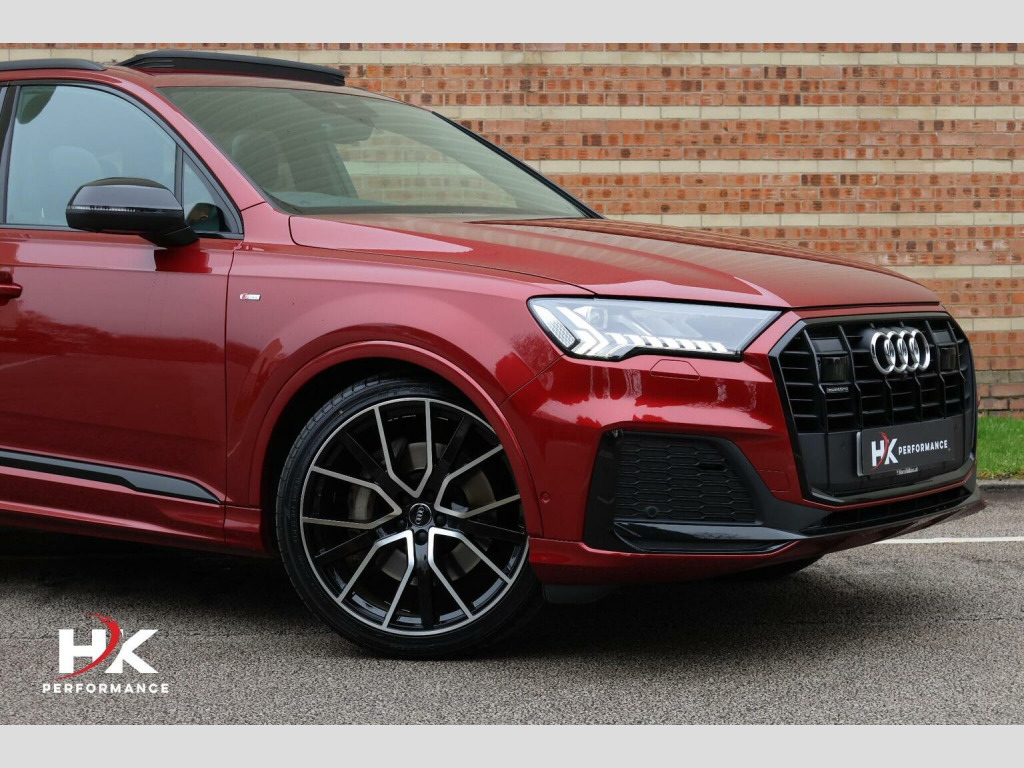 2020 (70) FACELIFT AUDI Q7 50 TDI BLACK EDITION FINISHED OFF IN MATADOR RED METALLIC, ONLY 1 PREVIOUS OWNER, FULL AUDI SERVICE HISTORY, OPTIONAL EXTRAS INCLUDE; ELECTRIC SLIDING PANORAMIC SUNROOF, COMFORT & SOUND PACKAGE, BOSE SOUND SYSTEM, KEYLESS ENTRY, HOLD ASSIST, TOUR ASSISTANCE PACKAGE CONSISTING OF ADAPTIVE CRUISE CONTROL, ACTIVE LANE KEEP ASSIST, AUDI PRE SENSE, 360 SURROUND VIEW CAMERA, ADAPTIVE AIR SPORT SUSPENSION, FULL BLACK LEATHER INTERIOR, ELECTRIC SEATS WITH MEMORY FUNCTION, HEATED FRONT SEATS, VIRTUAL COCKPIT, REVERSE CAMERA, FLAT BOTTOM STEERING WHEEL, GLOSS BLACK PIANO INLAYS, PRIVACY GLASS, BLACK ROOF RAILS, 22 ALLOYS, 4 ZONE DELUXE AUTOMATIC CLIMATE CONTROL, MATRIX LED HEADLIGHTS WITH HIGH BEAM ASSIST, ELECTRIC FOLDING WING MIRRORS, FACTORY BLACK STYLING PACK, 7 SEATS, APPLE CAR PLAY, WIRELESS CHARGING, Anti-Theft Alarm, Audi Matrix LED Headlights with Dynamic Front and Rear Indicators, Audi Parking System Plus, Audi Phone Box with, Wireless Charging, Audi Smartphone Interface, Audi Sound System, Audi Virtual Cockpit, Auto Dimming and Frameless Rear View Mirror, Black Roof Rails, Camera-Based Traffic Sign Recognition, Cruise Control with Speed Limiter, ESC - Electronic Stabilisation Control inc ABS - ASR and EDL, Electromechanical Parking Brake, Electromechanical Power Steering - Speed-Sensitive Provides a Precise Steering Feel at High Speeds and Excellent Assistance when Parking, LED Rear Lights, Lane Departure Warning, MMI Navigation Plus including MMI Touch, Natural Voice Recognition, Power Operated Tailgate, Privacy Glass, Rear View Camera, Steering Wheel - 3-Spoke Leather-Multi-function-Flat Bottomed-Sports-Shift Paddles, Tyre Pressure Loss Indicator, £199 ADMIN FEE APPLIES.