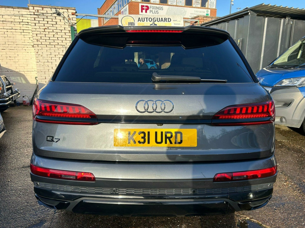 This 2020 Audi Q7 TDI V6 Black Edition boasts exceptionally low mileage for its age, having covered just 34,000 miles. This impressive Euro 6 compliant seven seater features a powerful 3.0 litre diesel engine paired with Audi's renowned four wheel drive system, ensuring confident performance in all conditions. The Black Edition trim adds a distinctive styling package, while the spacious interior offers comfort for all passengers. Notable features include the Audi Smartphone Interface, bringing Android Auto and Apple CarPlay seamlessly into the cabin, and advanced Audi Matrix LED headlights with dynamic indicators for enhanced visibility and a striking presence.Experience the convenience of Deluxe Four Zone Automatic Climate Control and the comfort of Heated Front Seats, perfect for any journey. The Rear View Camera aids in effortless parking, making manoeuvring simple. This Q7 also offers a substantial towing weight of 3500 kg and generous boot space, making it incredibly practical for families and adventurers alike. Its impressive acceleration, reaching 0-62mph in just 6.5 seconds, demonstrates its dynamic capability. Furthermore, its placement in a low insurance group highlights its cost effectiveness, making this Q7 a compelling choice that stands out from other vehicles in its class. On v car cat s. in alloy wheels - 10-spoke star style design audi sport in black with gloss-turned finish, 7 seats, ami - audi music interface, adaptive air sport suspension, airbags - driver - front passenger - front side - curtain, anti theft locking wheel bolts, anti-theft alarm, audi connect (3 year subscription from new), audi connect safety and service, audi drive select, audi hill hold assist, audi matrix led headlights with dynamic front and rear indicators, audi parking system plus, audi phone box with wireless charging, audi pre-sense front, audi smartphone interface, audi sound system, audi virtual cockpit, auto dimming and frameless rear view mirror, black roof rails, camera-based traffic sign recognition, cloth headlining in black, comfort front centre armrest, cruise control with speed limiter, dab digital radio, deluxe four-zone automatic climate control, door mirrors - heated - electrically adjustable - folding and auto dimming with memory function, esc - electronic stabilisation control inc abs - asr and edl, electric windows - front and rear, electromechanical parking brake, electromechanical power steering - speed-sensitive provides a precise steering feel at high speeds and excellent assistance when parking., extended pedestrian protection measures, first aid kit and warning triangle, front sun visors with illuminated vanity mirrors, front and rear floor mats, heated front seats, illuminated door sill trims with s logo, inlays - polished oak with grey finish, keyless go with remote central locking, led daytime running lights, led interior ambient lighting pack, led rear lights, lane departure warning, luggage compartment cover, luggage compartment sill protection in stainless steel, mmi navigation plus including mmi touch, natural voice recognition, pedals in stainless steel, power operated tailgate, privacy glass, rear view camera, s line badges on the front wings, s line roof spoiler, seat belt monitoring, steering wheel - 3-spoke leather-multi-function-flat bottomed-sports-shift paddles, titanium black door mirrors, titanium black styling pack, tool kit, tyre pressure loss indicator, tyre repair kit, windshield with heat insulated glass