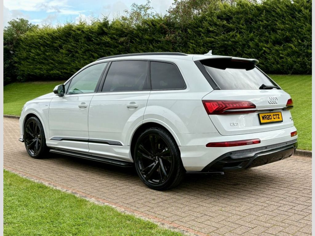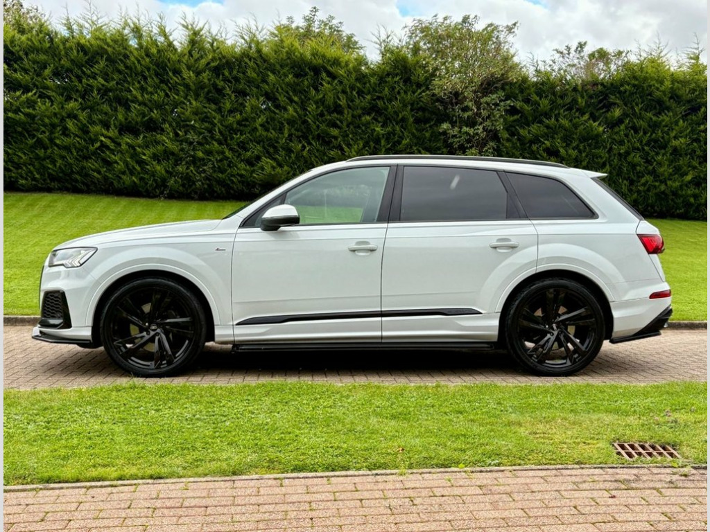 July 2020 Audi Q7 50TDI S-Line Quattro Auto in Ibis White. Full Service History. MOT'd to November 2025. Loaded with spec including Full Leather Interior, Virtual Cockpit, Adaptive Air Suspension, Heated Seats, Electric Seats, Navigation System, Bluetooth, Reverse Parking Camera, DAB Radio, LED Daytime Running Lights, Black Pack, Privacy Glass, Cruise Control, Side Running Boards, Dual Climate Control, Aero Styling Kit etc. Fitted with Brand New 22" Alloys & Tyres (Optional Extra £1495) FINANCE AVAILABLE AT KEEN RATES!! Viewing by Appointment Only! 2-Zone Automatic Climate Control, 20in Alloy Wheels - 9J 5-Spoke-Turbine D, 7 Seats, Adaptive Air Suspension, Airbags - Driver - Front Passenger - Fro, Aluminium Roof Rails, Aluminium Window Trims, AMI - Audi Music Interface, Anti-Theft Alarm, Anti-Theft Wheel Bolts and Wheel Looseni, Audi Connect (3 Year Subscription From N, Audi Connect Safety and Service - e-call, Audi Drive Select, Audi Hill Hold Assist, Audi Matrix LED Headlights with Dynamic , Audi Parking System Plus, Audi Phone Box with Wireless Charging, Audi Pre-Sense Front, Audi Smartphone Interface, Audi Sound System, Audi Virtual Cockpit, Auto Dimming and Frameless Rear View Mir, Body Coloured Door Mirrors, Camera-Based Traffic
