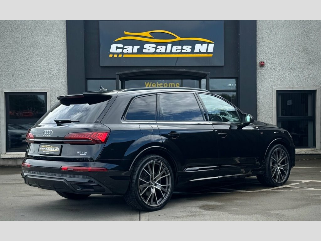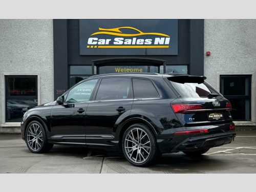 2023 AUDI Q7 S LINE QUATTRO 50 TDI 282 BHP 1 Owner from new, 3.0 Diesel Model, Covered 51k miles, Finished in Black, Key Features include: Adaptive Air Suspension 22'' Upgraded alloy wheels with premium Hankook tyres (£2,200 Optional extra) Rear Privacy glass Black Edition styling Front and Rear Parking sensors Reversing camera Full Leather S Line interior Leather Multifunctional steering wheel Paddle shift Heated front seats Electrically adjustable front seats Dual Climate control Virtual cockpit DAB Radio / Bluetooth / Sat Nav Apple / Android Car Play AUDI Drive mode select Electronic Folding 3rd Seats Electronic Tailgate ISOFIX Child seat Points And so much more... Call today to arrange a test drive Tailored finance packages available to suit your needs (Excludes ROI) Comprehensive warranty on all cars Trade ins welcome Delivery to North and South of Ireland if required 2-Zone Automatic Climate Control, 20in Alloy Wheels - 9J 5-Spoke-Turbine D, 4-Way Lumbar Support for Front Seats, 7 Seats, AMI - Audi Music Interface, Adaptive Air Suspension, Airbags - Driver - Front Passenger - Fro, Aluminium Roof Rails, Aluminium Window Trims, Anti-Theft Alarm, Anti-Theft Wheel Bolts and Wheel Looseni, Audi Connect (3 Year Subscription From N, Audi Connect Safety and Service - e-call, Audi Connect with Amazon Alexa Integrati, Audi Drive Select, Audi Hill Hold Assist, Audi Parking System Plus, Audi Phone Box Light with Wireless Charg, Audi Pre-Sense Front, Audi Smartphone Interface, Audi Sound System, Audi Virtual Cockpit, Auto Dimming and Frameless Rear View Mir, Body Col