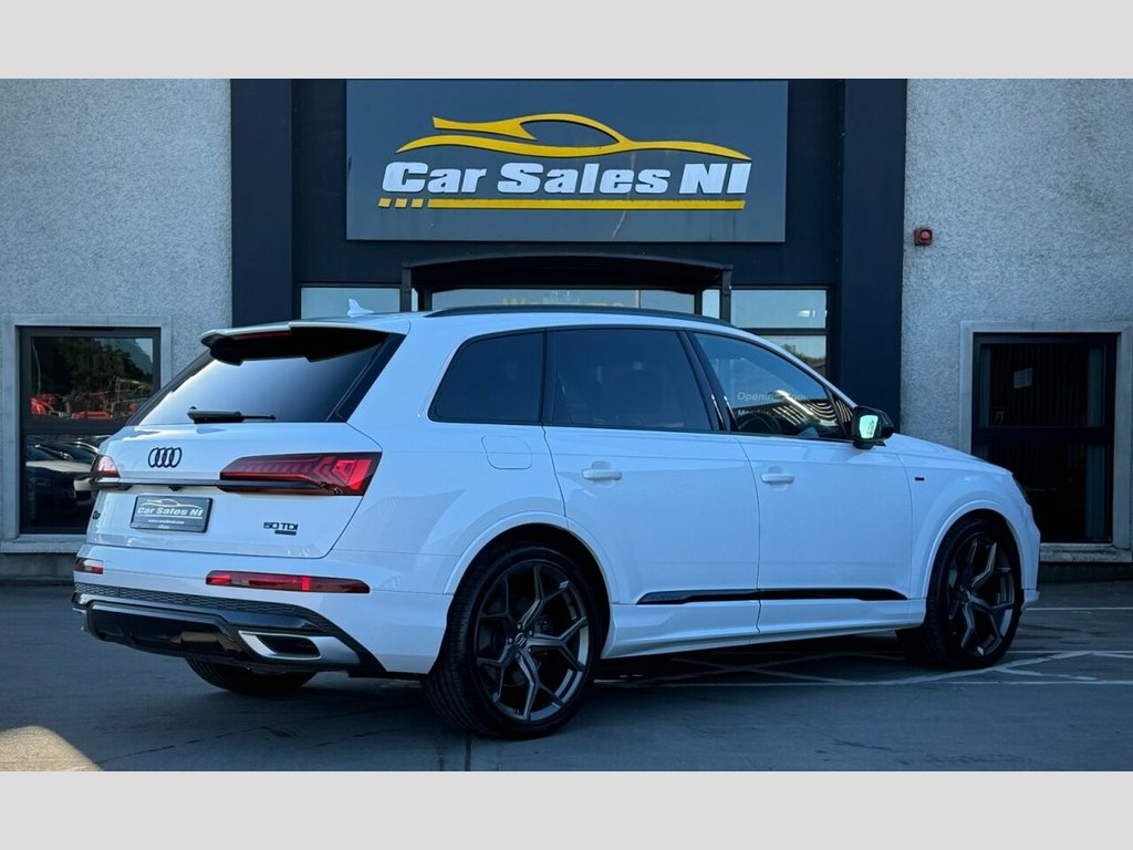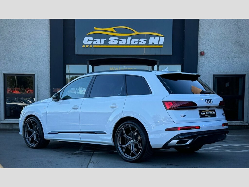 2021 AUDI Q7 S LINE QUATTRO 50 TDI V6 282 BHP 1 Owner from new, 3.0 Diesel Model ,Covered 56k miles, Finished in White, Key Features include: 22'' Upgraded alloy wheels with premium Hankook tyres (£2,200 Optional extra) Adaptive Air Suspension Rear Privacy glass Black Edition Styling Front and Rear Parking sensors Reversing camera Full Leather S Line interior Leather Multifunctional steering wheel Paddle shift Heated front seats Electrically adjustable front seats Dual Climate control Virtual cockpit DAB Radio / Bluetooth / Sat Nav Apple / Android Car Play Electrically folding 3rd row Electronic Tailgate ISOFIX Child seat points And so much more... Call today to arrange a test drive Tailored finance packages available to suit your needs (Excludes ROI) Comprehensive warranty on all cars Trade ins welcome Delivery to North and South of Ireland if required 2-Zone Automatic Climate Control, 20in Alloy Wheels - 9J 5-Spoke-Turbine D, 7 Seats, AMI - Audi Music Interface, Adaptive Air Suspension, Airbags - Driver - Front Passenger - Fro, Aluminium Roof Rails, Aluminium Window Trims, Anti-Theft Alarm, Anti-Theft Wheel Bolts and Wheel Looseni, Audi Connect (3 Year Subscription From N, Audi Connect Safety and Service - e-call, Audi Connect with Amazon Alexa Integrati, Audi Drive Select, Audi Hill Hold Assist, Audi Parking System Plus, Audi Pre-Sense Front, Audi Smartphone Interface, Audi Sound System, Audi Virtual Cockpit, Auto Dimming and Frameless Rear View Mir, Bluetooth Interface, Body Coloured Door Mirrors, Camera-Based Traffic Sign Recognition,