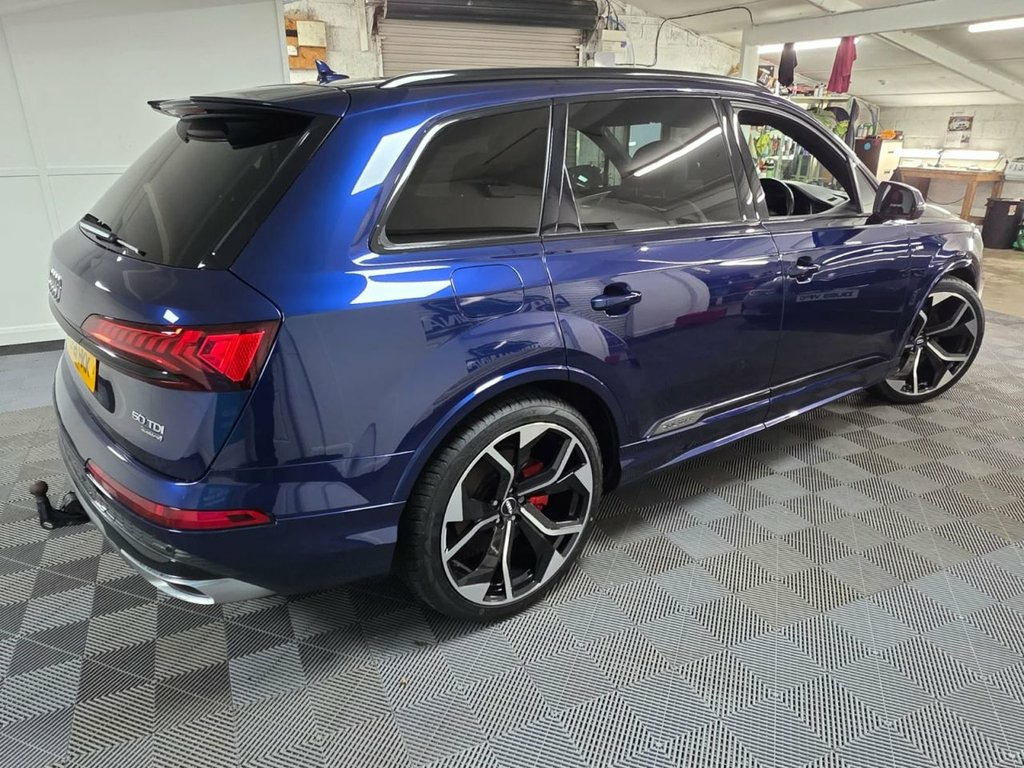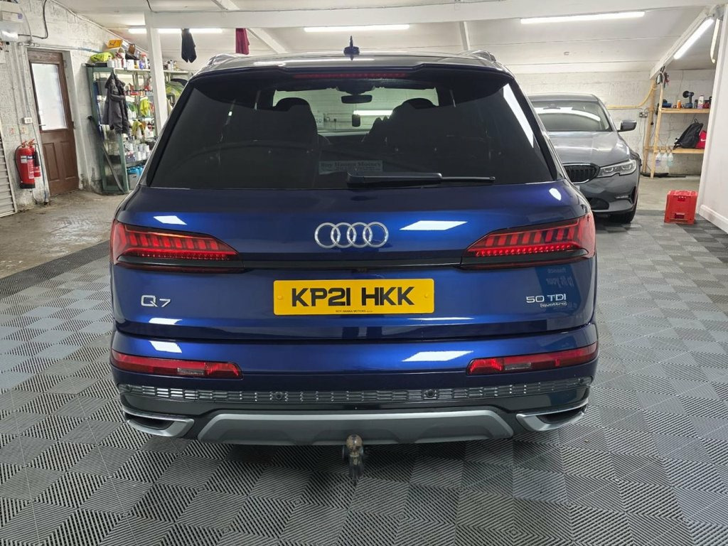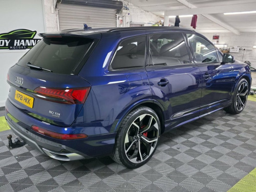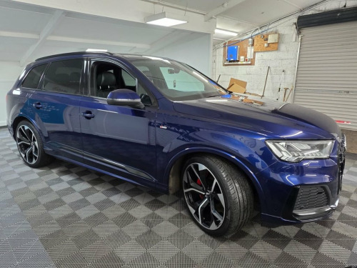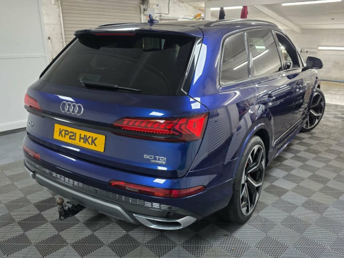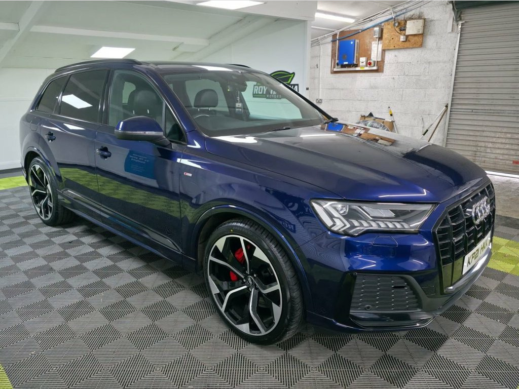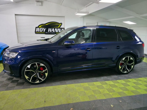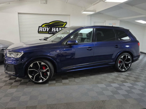 A beautiful 2021 Audi Q7 TDI S Line Quattro ready for viewing at Roy Hanna Motors! 2 Keys. 1 Owner from new. MOT to 26th April 2026. A part service history with records at - ~ 10,000 miles. ~ 31,947 miles. We will fully service this car and it will have a full pre-delivery check for its new owner. **Brand new Alloy Wheels & Tyres shown in pictures are an optional extra ** * We have a variety of wheels to chose from for each vehicle* Packed full of factory extras like - ~ Sat Nav. ~ Black leather interior. ~ Audi smartphone interface. ~ Parking sensors & Camera. ~ Electronic foldable towbar. ~MMI navigation plus with MMI touch screens includes 10.1" and 8.6" screens with haptic feedback. ~ Voice control system. ~ Audi driver select. ~ Driver's information system. ~ Bluetooth hands free telephone connection. ~ Audi music interface. ~ LED Daytime running lights. ~ Front fog lights. ~ Voice control system. ~ Front sports seats. ~ Heated rear windscreen. ~ Remote control central locking. ~ Climate and traction controls. ~ Steering wheel mounted controls. ~ AUX & USB connectivity. ~ CD/Radio Player. ~ Body Coloured Bumpers. ~ Electric windows. *We Have Many Different Finance HP & PCP Deals Available To Suit Your Budget, You Can Drive Away In Your New Car With £0 Deposit & Pay Nothing For 2 Full Months! *For A Personalised Quote Give Us A PM / Text / Call Or Propose Yourself For Finance On Our Website *All Usual Dealer Faciliti 2-Zone Automatic Climate Control, 20in Alloy Wheels - 9J 5-Spoke-Turbine D, 7 Seats, Adaptive Air Suspension, Airbags - Driver - Front Passenger - Fro, Aluminium Roof Rails, Aluminium Window Trims, AMI - Audi Music Interface, Anti-Theft Alarm, Anti-Theft Wheel Bolts and Wheel Looseni, Audi Connect (3 Year Subscription From N, Audi Connect Safety and Service - e-call, Audi Connect with Amazon Alexa Integrati, Audi Drive Select, Audi Hill Hold Assist, Audi Parking System Plus, Audi Pre-Sense Front, Audi Smartphone Interface, Audi Sound System, Audi Virtual Cockpit, Auto Dimming and Frameless Rear View Mir, Bluetooth Interface, Body Coloured Door Mirrors, Camera-Based Traffic Sign Recognition,