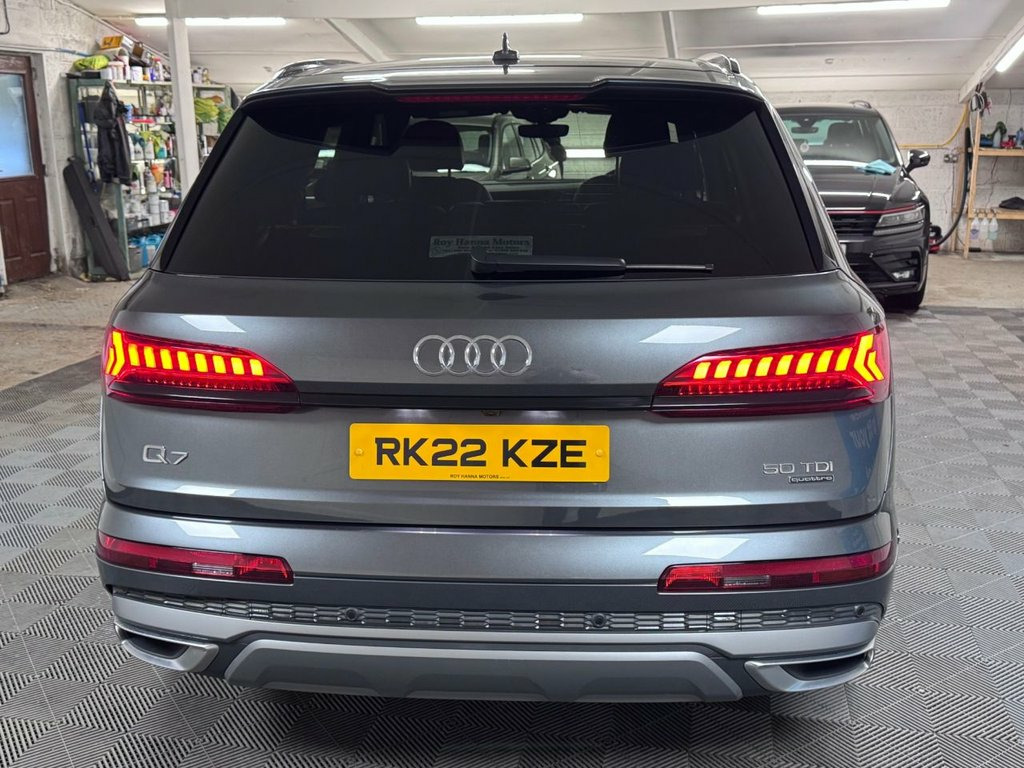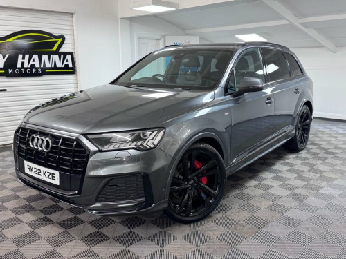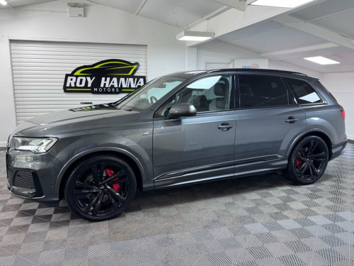 A beautiful 2022 Audi Q7 TDI S Line Quattro ready for viewing at Roy Hanna Motors! 2 Keys. 2 Owners from new. This car will be sold with a full years MOT! A good service history with records at - ~ 8,914 miles. ~ 16,483 miles. ~ 27,002 miles. ~ 35,340 miles. We will fully service this car and it will have a full pre-delivery check for its new owner. **Brand new Alloy Wheels & Tyres shown in pictures are an optional extra ** * We have a variety of wheels to chose from for each vehicle* Packed full of factory extras like - ~ Sat Nav. ~ Black leather interior. ~ Audi smartphone interface. ~ Parking sensors & Camera. ~ Electronic foldable towbar. ~MMI navigation plus with MMI touch screens includes 10.1" and 8.6" screens with haptic feedback. ~ Voice control system. ~ Audi driver select. ~ Driver's information system. ~ Bluetooth hands free telephone connection. ~ Audi music interface. ~ LED Daytime running lights. ~ Front fog lights. ~ Voice control system. ~ Front sports seats. ~ Heated rear windscreen. ~ Remote control central locking. ~ Climate and traction controls. ~ Steering wheel mounted controls. ~ AUX & USB connectivity. ~ CD/Radio Player. ~ Body Coloured Bumpers. ~ Electric windows. *We Have Many Different Finance HP & PCP Deals Available To Suit Your Budget, You Can Drive Away In Your New Car With £0 Deposit & Pay Nothing For 2 Full Months! *For A Personalised Quote Give Us A PM / Text / Call Or Propose Yourself For 2-Zone Automatic Climate Control, 20in Alloy Wheels - 9J 5-Spoke-Turbine D, 7 Seats, Adaptive Air Suspension, Airbags - Driver - Front Passenger - Fro, Aluminium Roof Rails, Aluminium Window Trims, AMI - Audi Music Interface, Anti-Theft Alarm, Anti-Theft Wheel Bolts and Wheel Looseni, Audi Connect (3 Year Subscription From N, Audi Connect Safety and Service - e-call, Audi Connect with Amazon Alexa Integrati, Audi Drive Select, Audi Hill Hold Assist, Audi Parking System Plus, Audi Pre-Sense Front, Audi Smartphone Interface, Audi Sound System, Audi Virtual Cockpit, Auto Dimming and Frameless Rear View Mir, Bluetooth Interface, Body Coloured Door Mirrors, Camera-Based Traffic Sign Recognition,