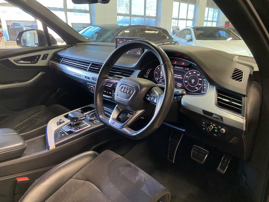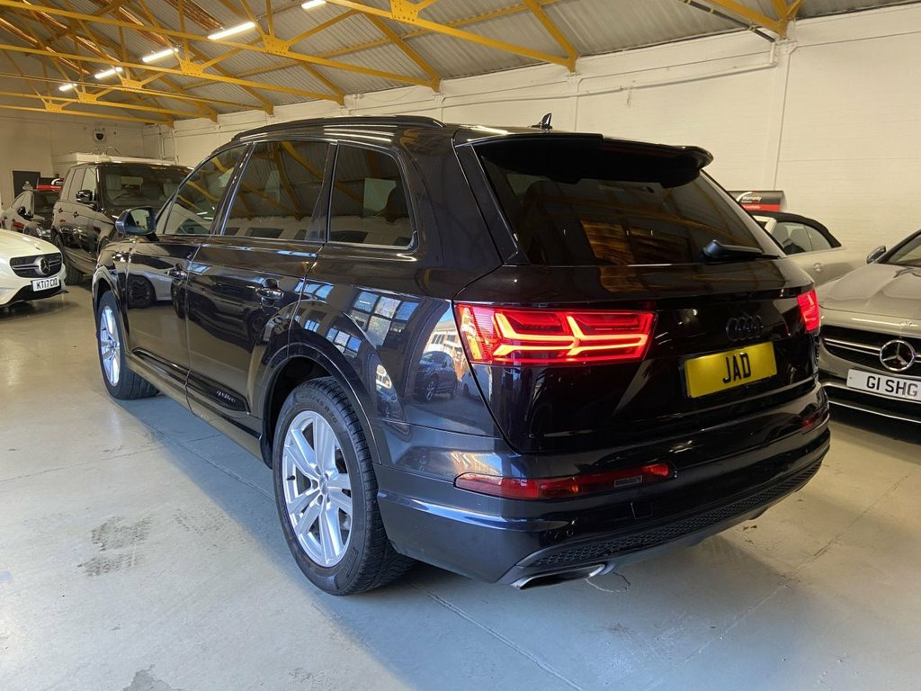 JAD MOTOR would like to proudly present this wonderful 2019 AUDI Q7 50 3.0L V6 S LINE! 2 Keys. 4 Former Owners. SERVICE: FULL SERVICE HISTORY! AT OUR FACILITIES IT HAS UNDERGONE A NEW SERVICE & MOT TILL 11.26 TOO! DERSCRIPTION: Exterior: The bold Singleframe grille defines the front end with chrome accents, flanked by sharp LED headlights that provide crisp visibility and a distinctive light signature. The S Line styling pack elevates its road presence with sportier bumpers, larger lower air intakes, extended side skirts, and subtle S Line badging. Strong shoulder lines flow into a clean, powerful rear design complete with LED tail lights and integrated dynamic indicators. Sitting on 20-inch S Line alloy wheels, the Q7 achieves the ideal balance of elegance and understated performance aesthetics. Interior: The interior continues the premium theme with a beautifully crafted cabin finished in high-quality materials. The heated half leather sport seats provide both comfort and support, offering electric adjustment and a memory function for the driver & passenger. The sweeping dashboard incorporates Audi's layered design, blending brushed aluminium inlays with soft-touch surfaces and ambient LED lighting to create a calm, modern atmosphere. Space is a defining strength of this Q7, offering generous headroom and legroom across all three rows, while the versatile electrically deployable seven-seat configuration folds seamlessly to transform the boot into a vast loading 20in Alloy Wheels - 5-Parallel Spoke Des, 6-Airbag System, 7 Seats, Adaptive Air Suspension, Aluminium Roof Rails, Anti Theft Locking Wheel Bolts, Anti-Theft Alarm, Audi Connect Infotainment Services - 36 , Audi Connect Safety and Service, Audi Drive Select, Audi Hill Hold Assist, Audi Parking System Plus, Audi Phone Box with Wireless Charging, Audi Pre-Sense City, Audi Smartphone Interface, Audi Sound System, Audi Virtual Cockpit, Auto-Dimming Rear-View Mirror, Bluetooth Interface, Body Coloured Door Mirrors, Cloth Headlining in Black, Colour Drivers Information System with 7, Cruise Control with Speed Limiter, Door Mirrors - Heated-Electrically Adjus, Door Sill Trims with S Line Logo, Dual