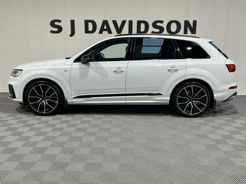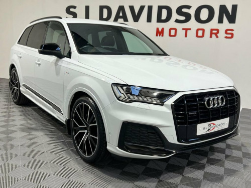 This 2021 Audi Q7 TDI V6 S line boasts a clear vehicle history, offering you peace of mind. This impressive seven seater features a powerful 3.0 litre diesel engine paired with Audi's renowned four wheel drive system, ensuring confident performance in all conditions. As a Euro 6 compliant vehicle, it meets stringent emission standards. The S line trim enhances its already sophisticated appeal, and you'll appreciate the convenience of the Audi Smartphone Interface, which seamlessly integrates Android Auto and Apple CarPlay. Long journeys are made more comfortable with heated front seats, while LED headlights provide excellent visibility. Parking is made easier thanks to the Audi Parking System Plus, offering front and rear sensors, and staying connected on the go is simple with the integrated Bluetooth interface. Experience exceptional practicality with this Q7, highlighted by its large boot space, perfect for family adventures or everyday needs. This vehicle also benefits from a low insurance group, making it an economical choice for many drivers. For those who value performance, the 0-60mph acceleration in just 6.1 seconds demonstrates the potent capabilities of the 3.0L diesel engine. Furthermore, with a substantial towing weight of 3500 kg, this Audi Q7 is more than capable of handling your towing requirements, setting it apart from many other vehicles in its class. 2-Zone Automatic Climate Control, 20in Alloy Wheels - 9J 5-Spoke-Turbine D, 7 Seats, AMI - Audi Music Interface, Adaptive Air Suspension, Airbags - Driver - Front Passenger - Fro, Aluminium Roof Rails, Aluminium Window Trims, Anti-Theft Alarm, Anti-Theft Wheel Bolts and Wheel Looseni, Audi Connect (3 Year Subscription From N, Audi Connect Safety and Service - e-call, Audi Connect with Amazon Alexa Integrati, Audi Drive Select, Audi Hill Hold Assist, Audi Parking System Plus, Audi Pre-Sense Front, Audi Smartphone Interface, Audi Sound System, Audi Virtual Cockpit, Auto Dimming and Frameless Rear View Mir, Bluetooth Interface, Body Coloured Door Mirrors, Camera-Based Traffic Sign Recognition,