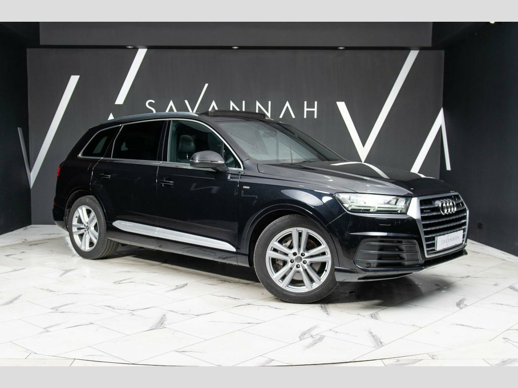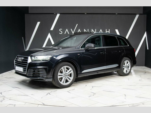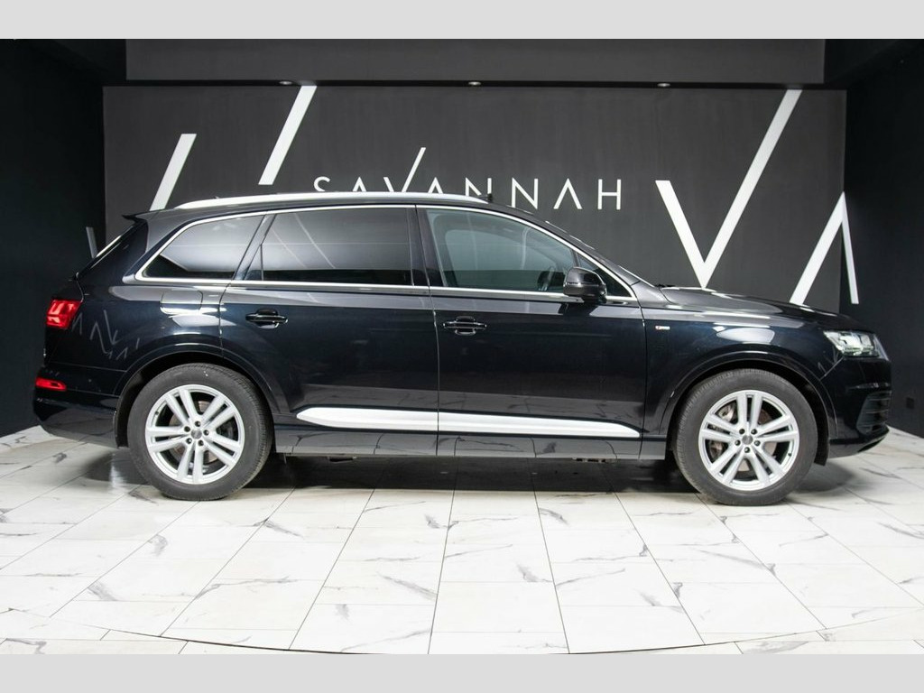 With only one owner and exceptionally low mileage for its age, this 2018 Audi Q7 TDI V6 S line presents a remarkable find. This sophisticated seven seat SUV boasts a powerful 3.0 litre diesel engine paired with Audi's renowned four wheel drive system, ensuring confident performance in all conditions. As a Euro 6 compliant vehicle, it meets stringent emission standards. The S line trim level enhances its already premium appeal, and you'll appreciate the convenience of a panoramic glass sunroof, practical running boards, and an advanced head up display. Inside, the Audi Phone Box with wireless charging and dual zone electronic climate control offer modern comfort and connectivity. This Audi Q7 is designed for those who seek a superior driving experience, indicated by its impressive acceleration of 0 to 60 miles per hour in just 6.3 seconds. Its low insurance group rating further adds to its appeal as a cost effective choice. With a substantial towing weight of 3500 kg, it is well equipped for carrying loads or towing. A clear vehicle history check provides peace of mind, confirming its excellent provenance. This vehicle offers a compelling combination of performance, luxury, and practicality, setting it apart from other similar models on the market. Steering Wheel - 3-Spoke Leather-Multi-f, Orca Black, Deluxe Four-Zone Automatic Climate Contr, Running Boards, Head-Up Display, Panoramic Glass Sunroof, 20in Alloy Wheels - 5-Parallel Spoke Des, 6-Airbag System, 7 Seats, Adaptive Air Suspension, Aluminium Roof Rails, Anti Theft Locking Wheel Bolts, Anti-Theft Alarm, Audi Connect Infotainment Services - 36 , Audi Connect Safety and Service, Audi Drive Select, Audi Hill Hold Assist, Audi Parking System Plus, Audi Phone Box with Wireless Charging, Audi Pre-Sense City, Audi Smartphone Interface, Audi Sound System, Audi Virtual Cockpit, Auto-Dimming Rear-View Mirror, Bluetooth Interface, Body Coloured Door Mirrors, Cloth Headlining in Black, Col
