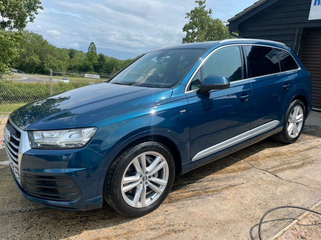 FREE UK DELIVERY - FINANCE AVAILABLE, CONTACT US NOW FOR A NO OBLIGATION QUOTE - CALL NOW TO ARRANGE A TEST DRIVE - PART EXCHANGE WELCOME - ONE YEAR WARRANTY MINIMUM, EXTENDED AVAILABLE, WARRANTY CAN BE REDEEMED AT VAT REGISETERED GARAGE - NO ADMIN FEES - ALL VEHICLES HPI CHECKED - FULL USED CAR INSPECTION MECHANICAL APPRAISAL CARRIED OUT ON ALL VEHICLES BEFORE LEAVING OURSELVES - YOU CAN REST ASSURED YOU'RE MAKING THE RIGHT DECISION WHEN PURCHASING YOUR NEW VEHICLE FROM US - OVER 100 VEHICLES IN STOCK - RIVERSIDE AUTOS LTD FAMILY RUN BUSINESS ESTABLISHED SINCE 2005 -The 2018 Audi Q7 TDI V6 S line is a stylish SUV that combines practicality with performance. As a 7-seater, this four-wheel-drive vehicle is ideal for families or anyone needing extra passenger space. The Q7 boasts a 3.0L diesel engine and comes with the S line trim, offering a blend of comfort and sporty aesthetics.The Q7 includes several features designed to enhance your driving experience. Stay connected with the Audi Phone Box, which includes wireless charging and Bluetooth connectivity. Enjoy optimal comfort with dual-zone electronic climate control and electrically adjustable front seats with 4-way lumbar support and driver memory function. Keyless Go with remote central locking adds convenience, while the light and rain sensor, including automatic headlights, ensures safety in varying conditions. The vehicle is Euro 6 compliant and has a substantial towing capacity of 3500 kg. The low insurance group and acceleration from 0-62mph in 6.3 seconds, demonstrate that this vehicle is more economical and faster than other similar vehicles.. 20in Alloy Wheels - 5-Parallel Spoke Design, 6-Airbag System, 7 Seats, Adaptive Air Suspension, Aluminium Roof Rails, Anti Theft Locking Wheel Bolts, Anti-Theft Alarm, Audi Connect Infotainment Services - 36 Month Trial, Audi Connect Safety and Service, Audi Drive Select, Audi Hill Hold Assist, Audi Parking System Plus, Audi Phone Box with Wireless Charging, Audi Pre-Sense City, Audi Smartphone Interface, Audi Sound System, Audi Virtual Cockpit, Auto-Dimming Rear-View Mirror, Bluetooth Interface, Body Coloured Door Mirrors, Cloth Headlining in Black, Colour Drivers Information System with 7in High-Resolution TFT Screen, Cruise Control with Speed Limiter, Door Mirrors - Heated-Electrically Adjustable-Folding with Memory Function, Door Sill Trims with S Line Logo, Dual-Zone Electronic Climate Control, ESC - Electronic Stabilisation Control inc ABS - EBD - ASR - EDL, Electric Windows - Front and Rear, Electrically Adjustable Front Seats with 4-Way Lumbar Support and Driver Memory Function, Electromechanical Parking Brake, First Aid Kit and Warning Triangle, Front Centre Armrest - Adjustable, Front and Rear Floor Mats, Heated Front Seats, High-Beam Assist, Hill Descent Control, ISOFIX Child Seat Mounting, Interior Light Package, Keyless Go with Remote Central Locking, LED Headlights with LED Rear Lights and Dynamic Rear Indicators and High-Beam Assist, Light and Rain Sensor, Luggage Compartment Sill Protection in Stainless Steel, MMI Navigation Plus including MMI Touch, MMI Radio Plus and DAB, Pedals in Stainless Steel, Power Operated Tailgate, Power Steering - Servotronic, Privacy Glass, Rear View Camera, S Line Body Styling, Seat Belt Monitoring, Steering Wheel - 3-spoke S line Multi-function Leather with Paddle-shift, Tool Kit, Tyre Pressure Loss Indicator, Tyre Repair Kit, Upper Inlays in Brushed Aluminium-Sono and Lower Inlays in Chrome Paint Finish-Slate Grey, Voice Control System.